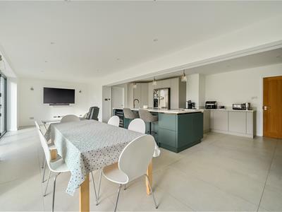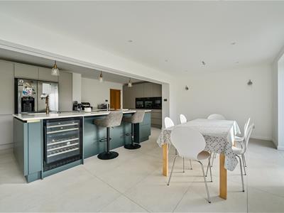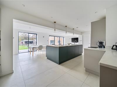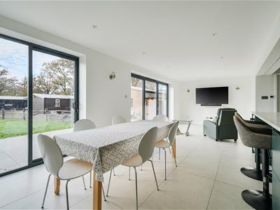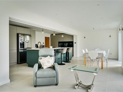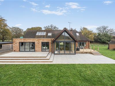 This unique property, of bespoke design, boasts impressive part vaulted accommodation to the ground floor with full height glazing to most rooms flooding natural light into the whole interior. The house has recently been refurbished, modernised and extended to exacting standards by the current owner with the heart of the home undoubtedly being the stunning open plan kitchen/dining/sitting and family room with feature brick fireplace and wood burner offering superb entertaining spaces embracing a modern indoor/outdoor theme.