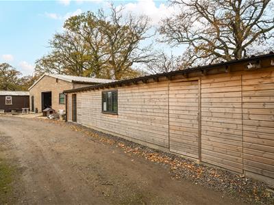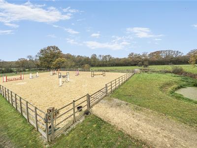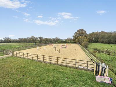No Chain A substantial detached family home with 5/6 double bedrooms 5 luxury en-suite shower/bathrooms) set in 6.5 acres (*TBV) with extensive equestrian facilities including a 50m x 30m outdoor Riding Arena, 9 box stable yard, large detached barn (scope further stables/other uses like SuperCar Storage).