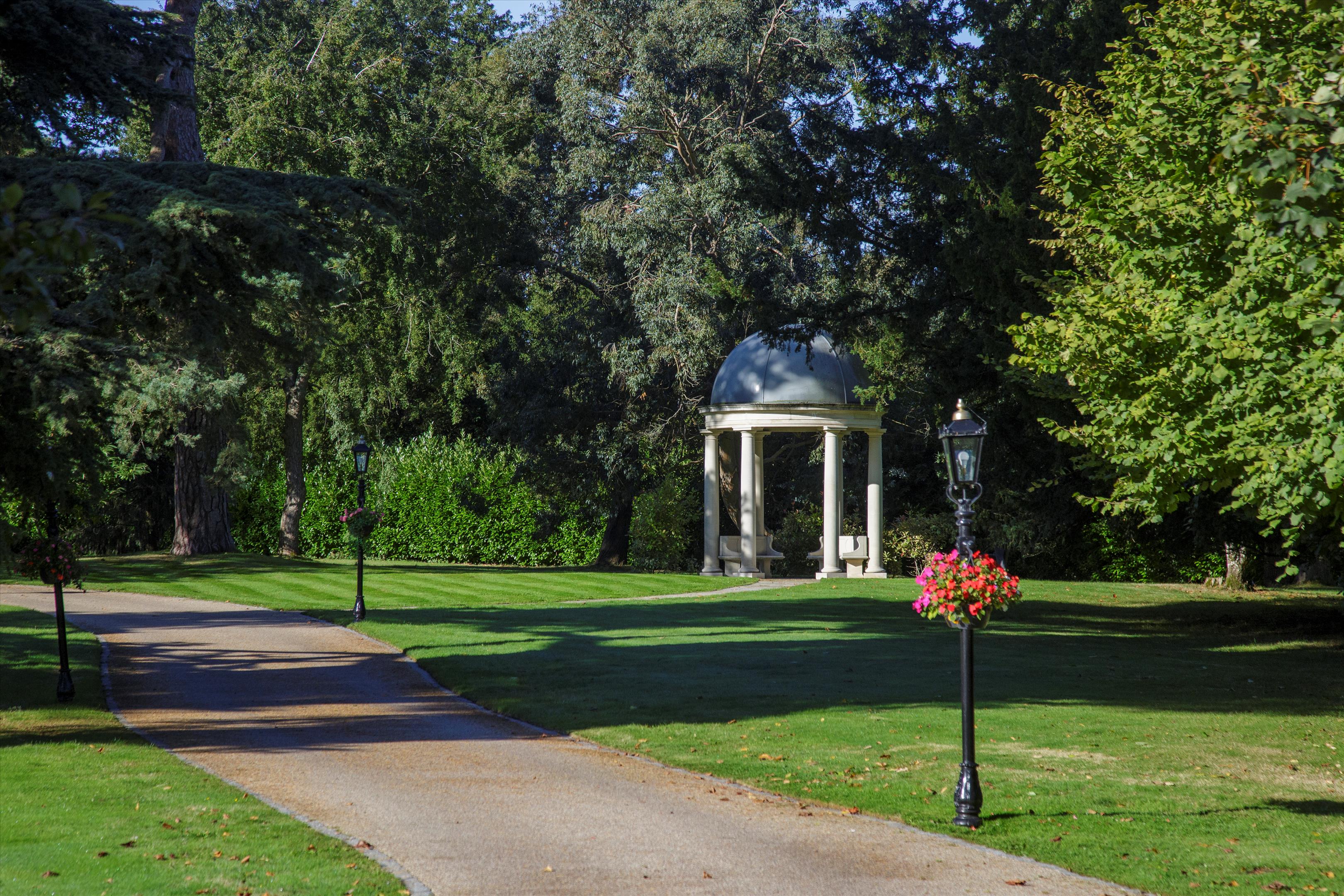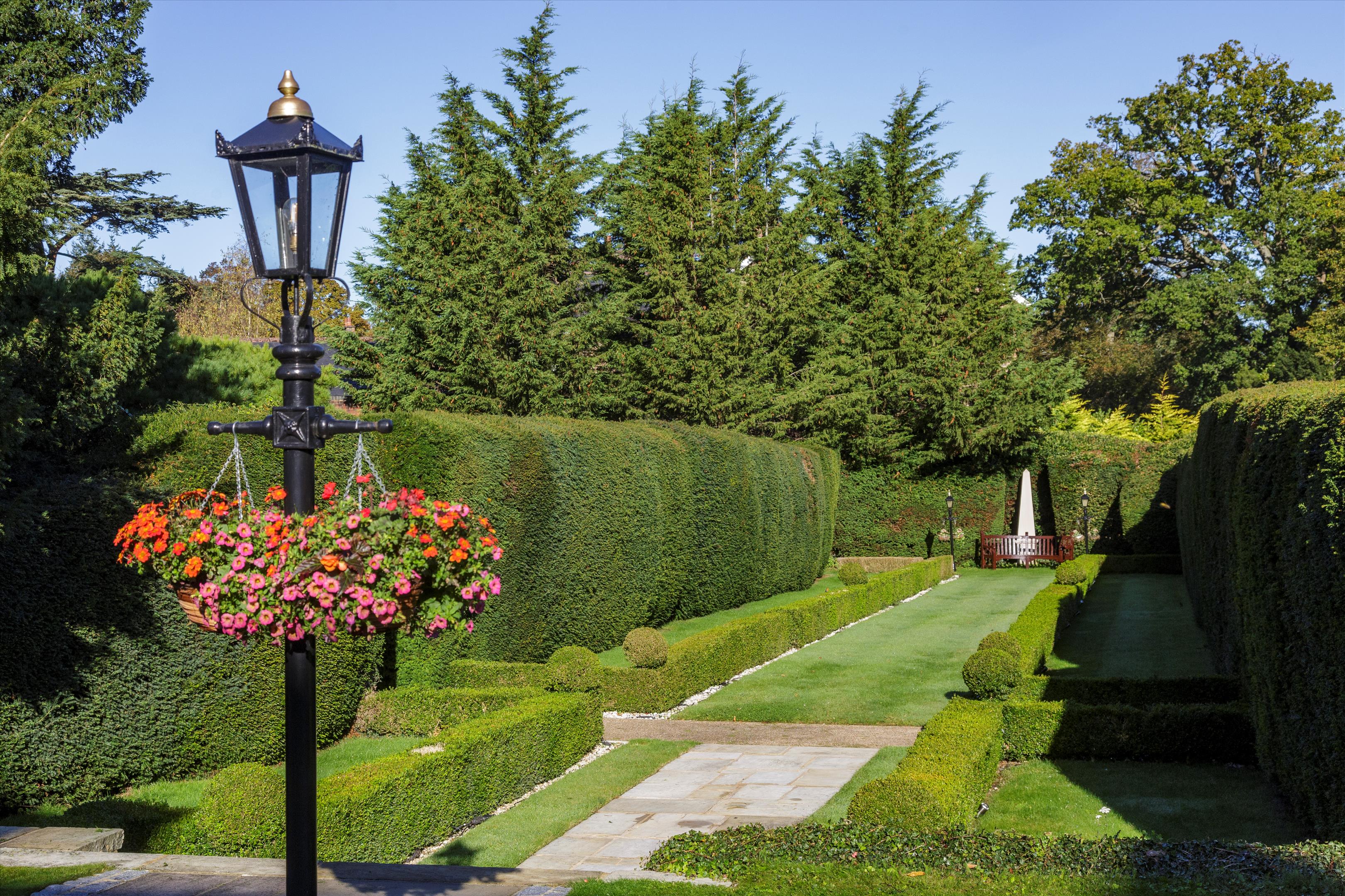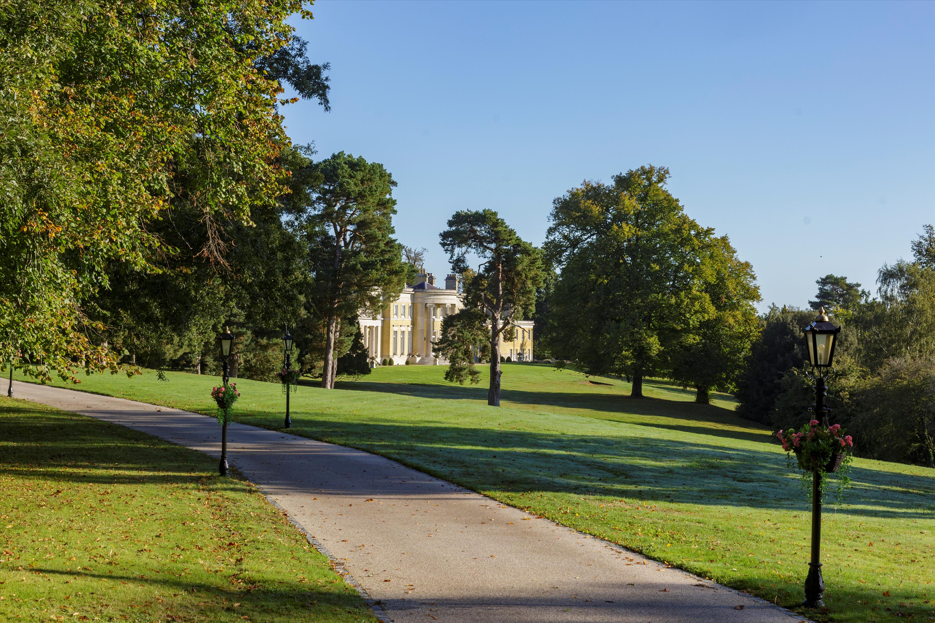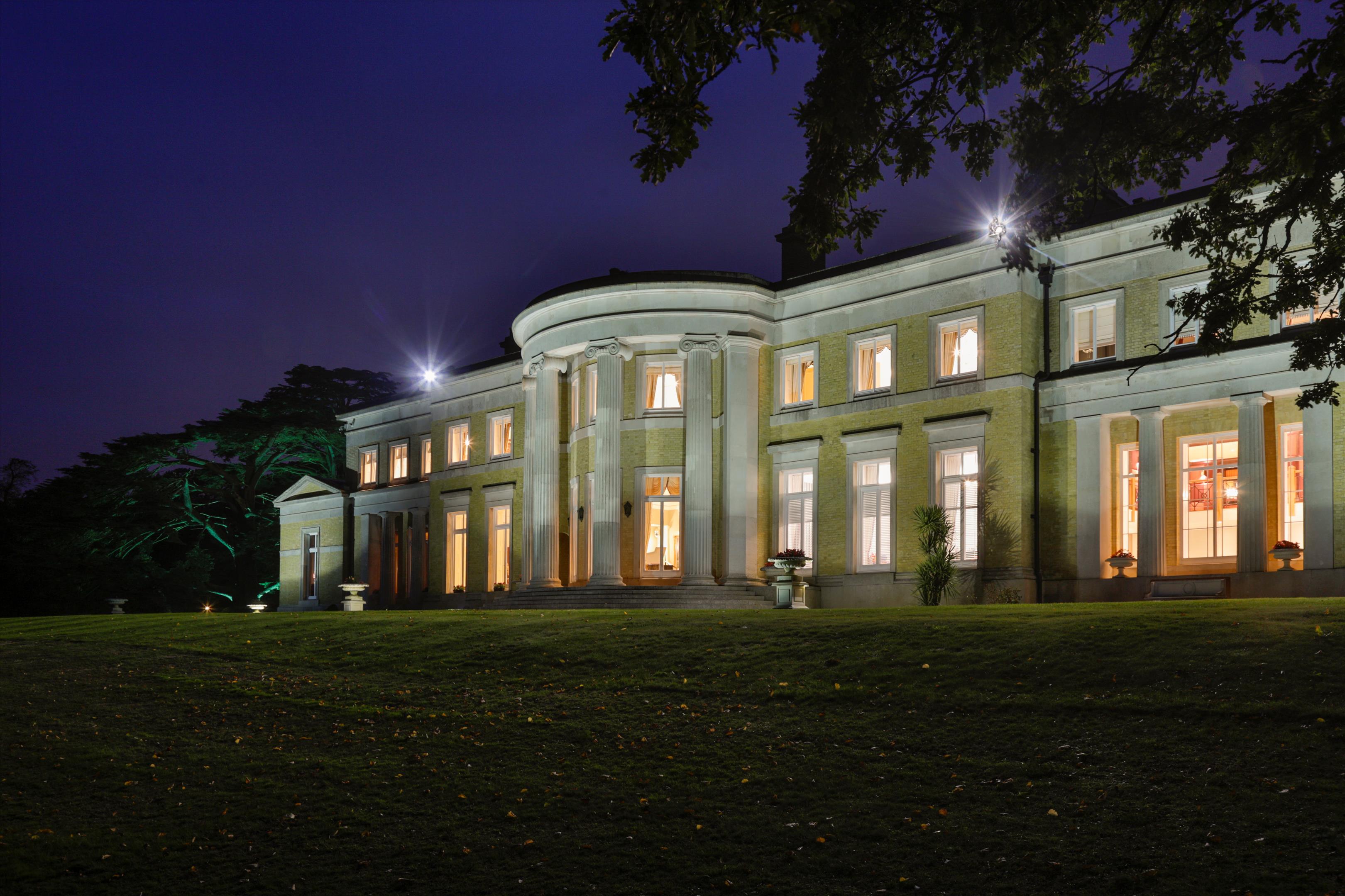 The house is approached by a long drive meandering through parkland, a particularly special feature of the property. Sculpted and laid out by Decimus Burton, Holwood's elevated position ensures fabulous views to the south. Two areas of woodland cradle the property to the left and right forming an avenue and delightful vista, down which the eye is drawn from the principal reception rooms and bedrooms. To the rear there is the secondary drive, tennis court and walled garden with the garden pavilion set to the west. A new machinery store/helicopter hangar has recently been built to the east of the house.