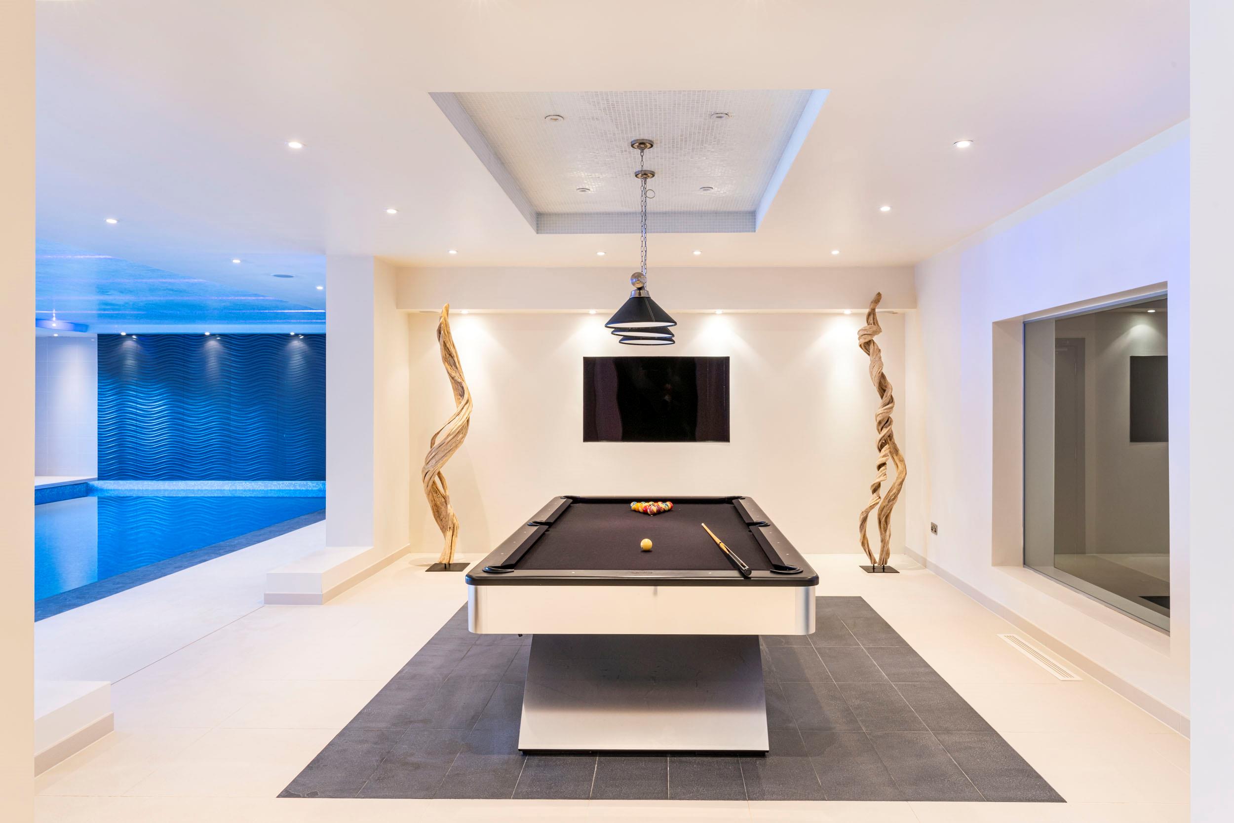 Recently refurbished to the highest specification, the swimming pool complex with steam room, sauna, two 'rain forest' showers and wet lounge opens through French windows onto wood deck terracing, ideal for summer parties and barbecues. A glass staircase leads to the first floor guest accommodation comprising a spacious games room, which could be utilised as a gym, 2 further guest bedrooms and a shower room.