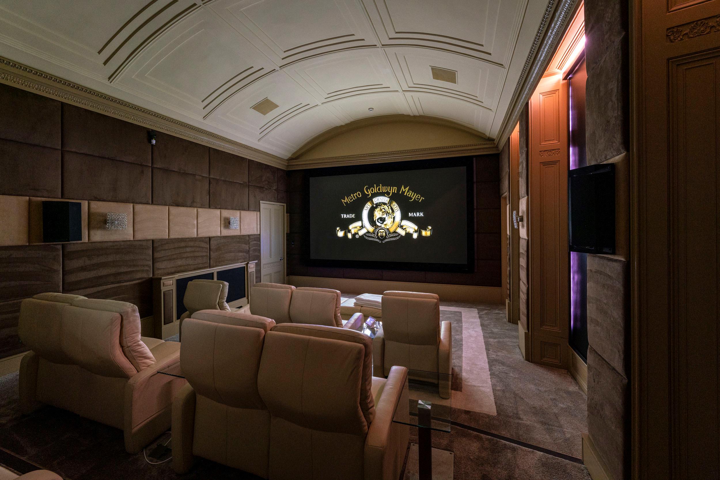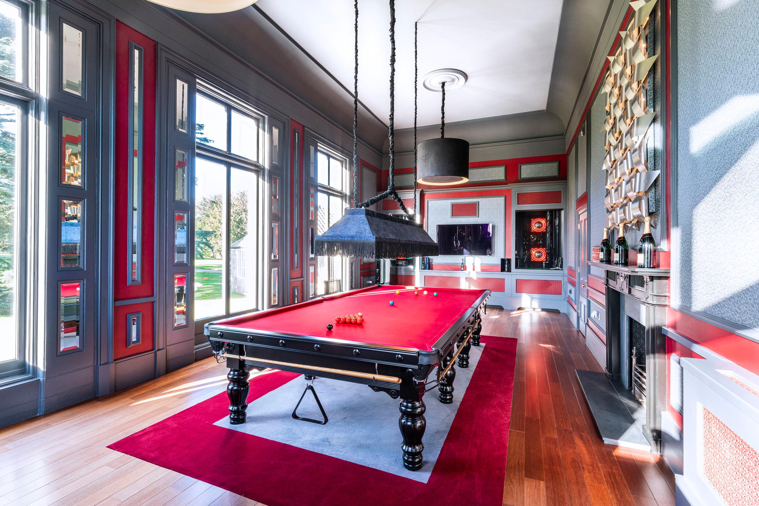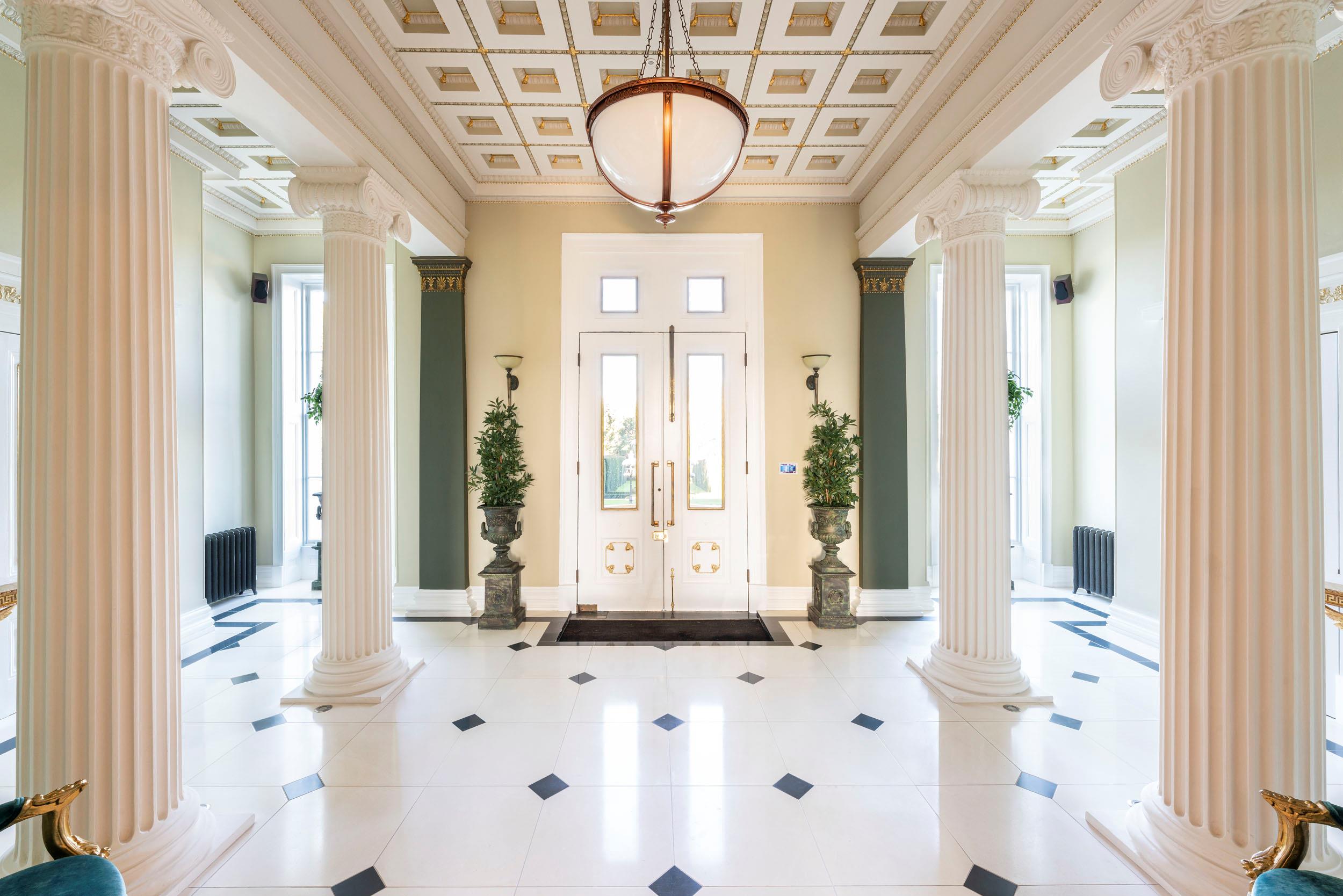 A stately entrance hall and inner hall occupy the heart of the property, from which all primary reception rooms flow. These two rooms are spectacular, with double height ceilings to the first floor gallery, intricate cornicing and fine limestone floors. They lead to the music hall with its parquet flooring and a breathtaking panoramic southerly view over the parkland. Sharing in these views are the games room, drawing room, dining room and kitchen/breakfast room, all with large sash windows, French doors and an abundance of natural light. The Clive Christian kitchen has a double height ceiling with two large window lights. The first floor library mezzanine sits over half of the adjacent breakfast area. From the kitchen, the large family room leads both outside and into the newly refurbished swimming pool complex and annexe. In addition on the ground floor there is a study, cloakroom, powder room and insulated cinema room with full surround sound.