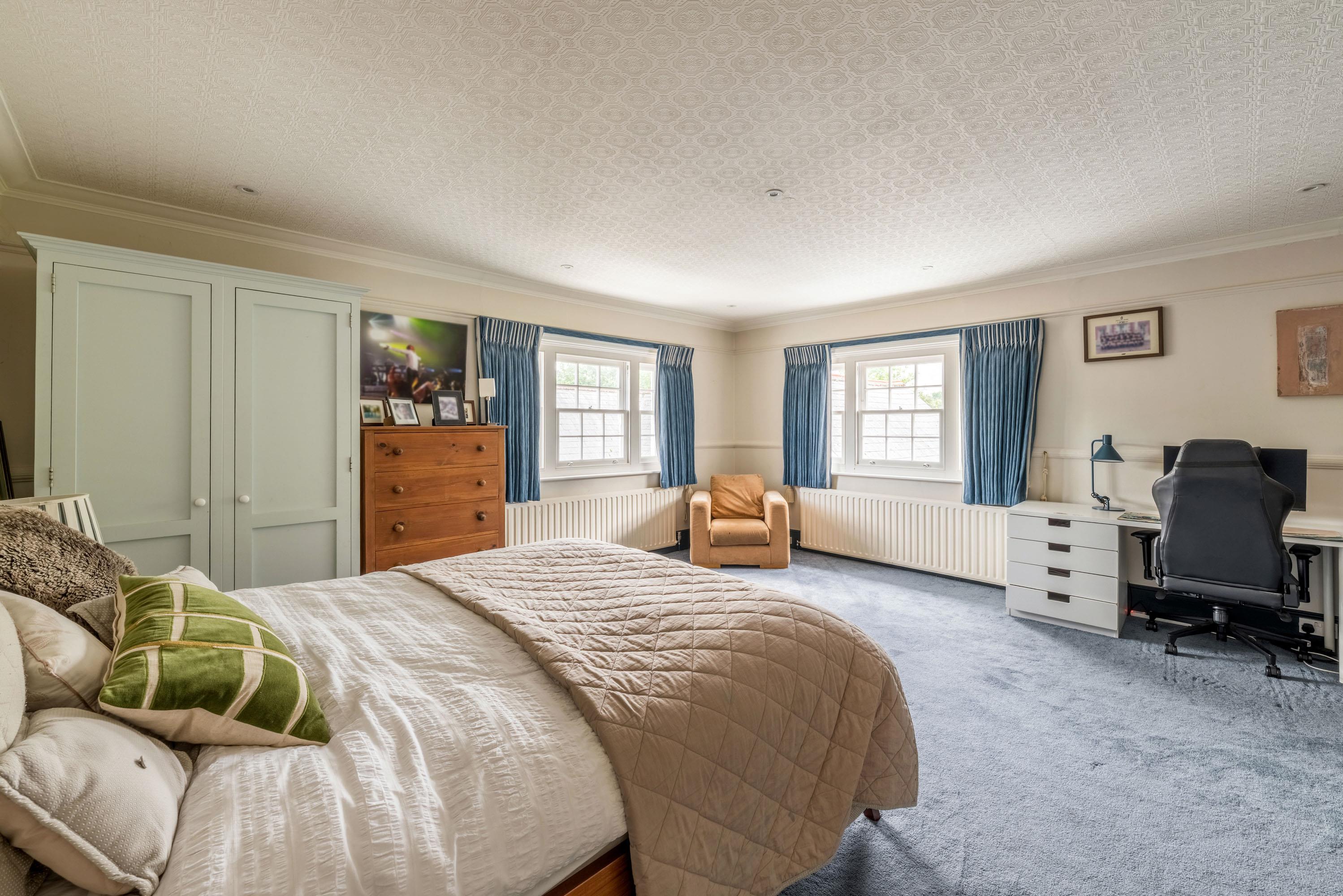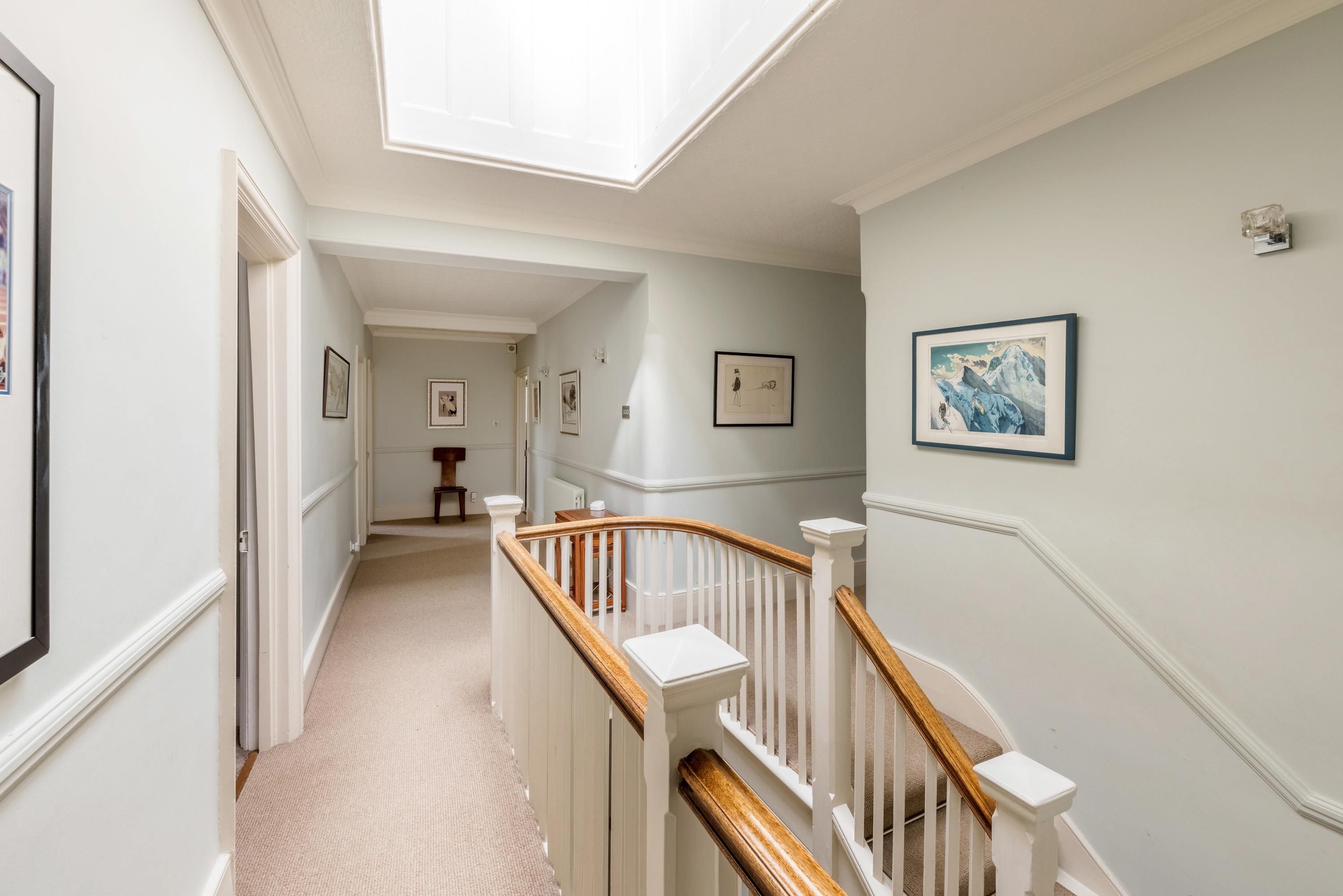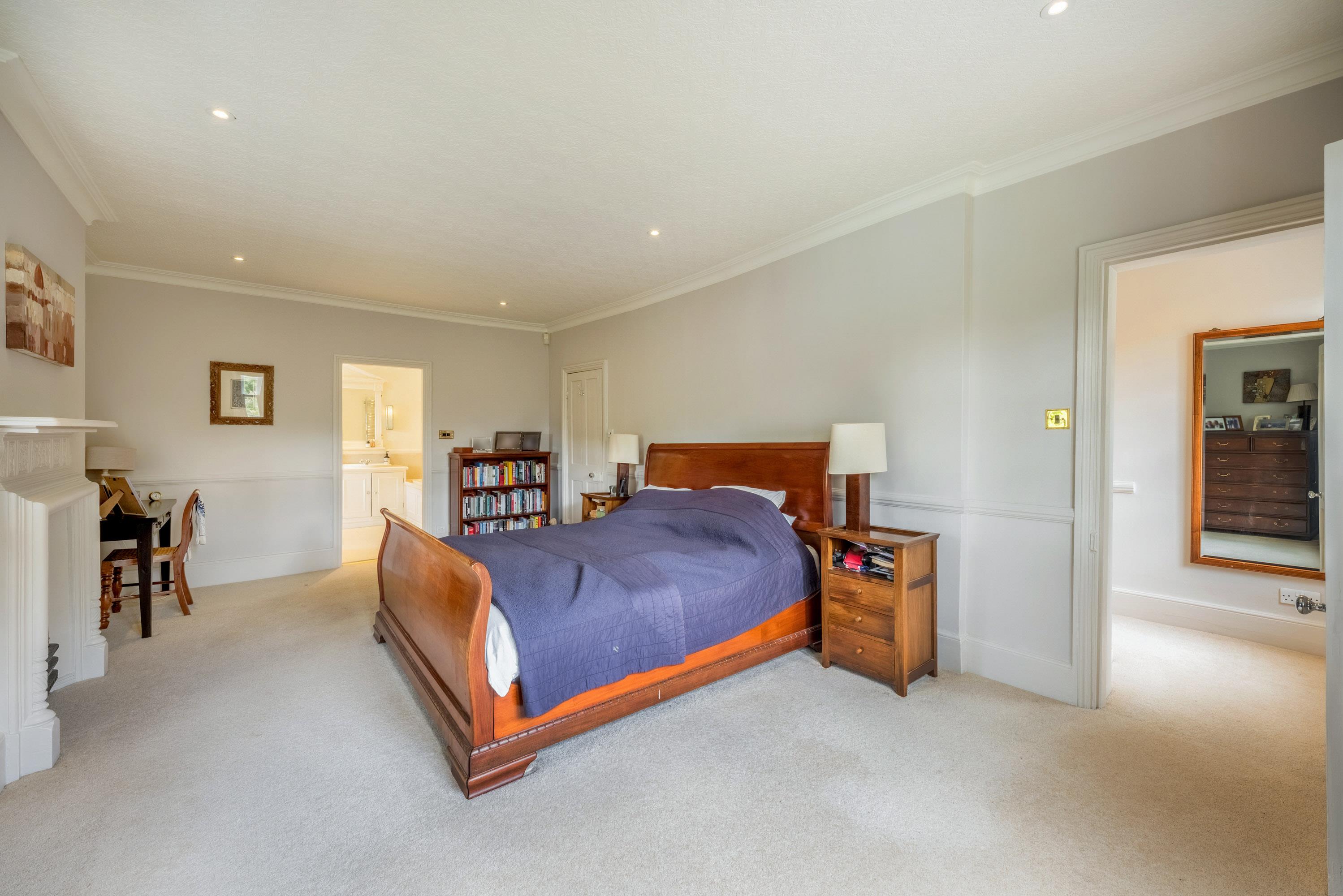 Upstairs, the principal bedroom suite features a generous dressing room and en suite bathroom, while five further double bedrooms share a large family bathroom.