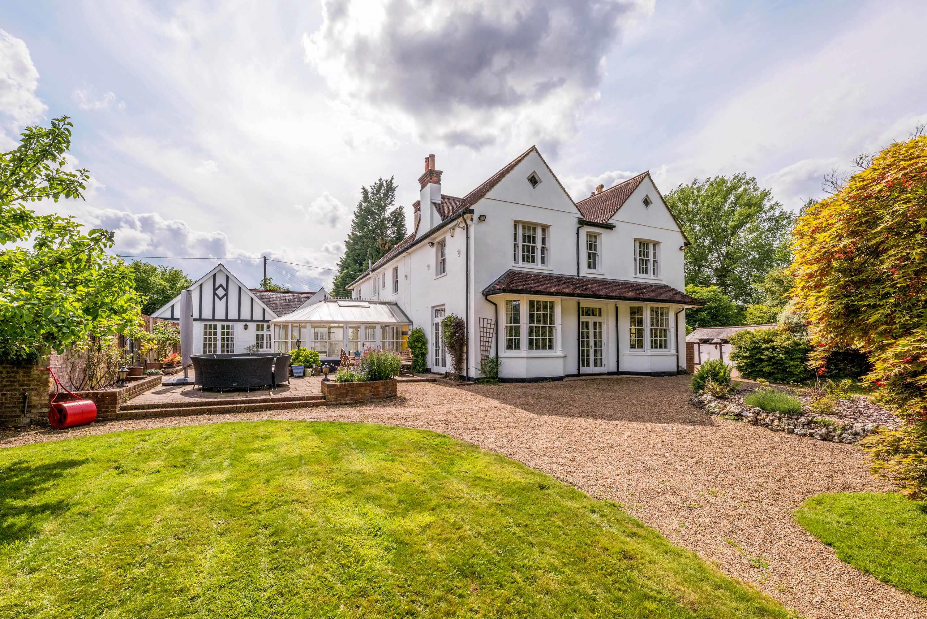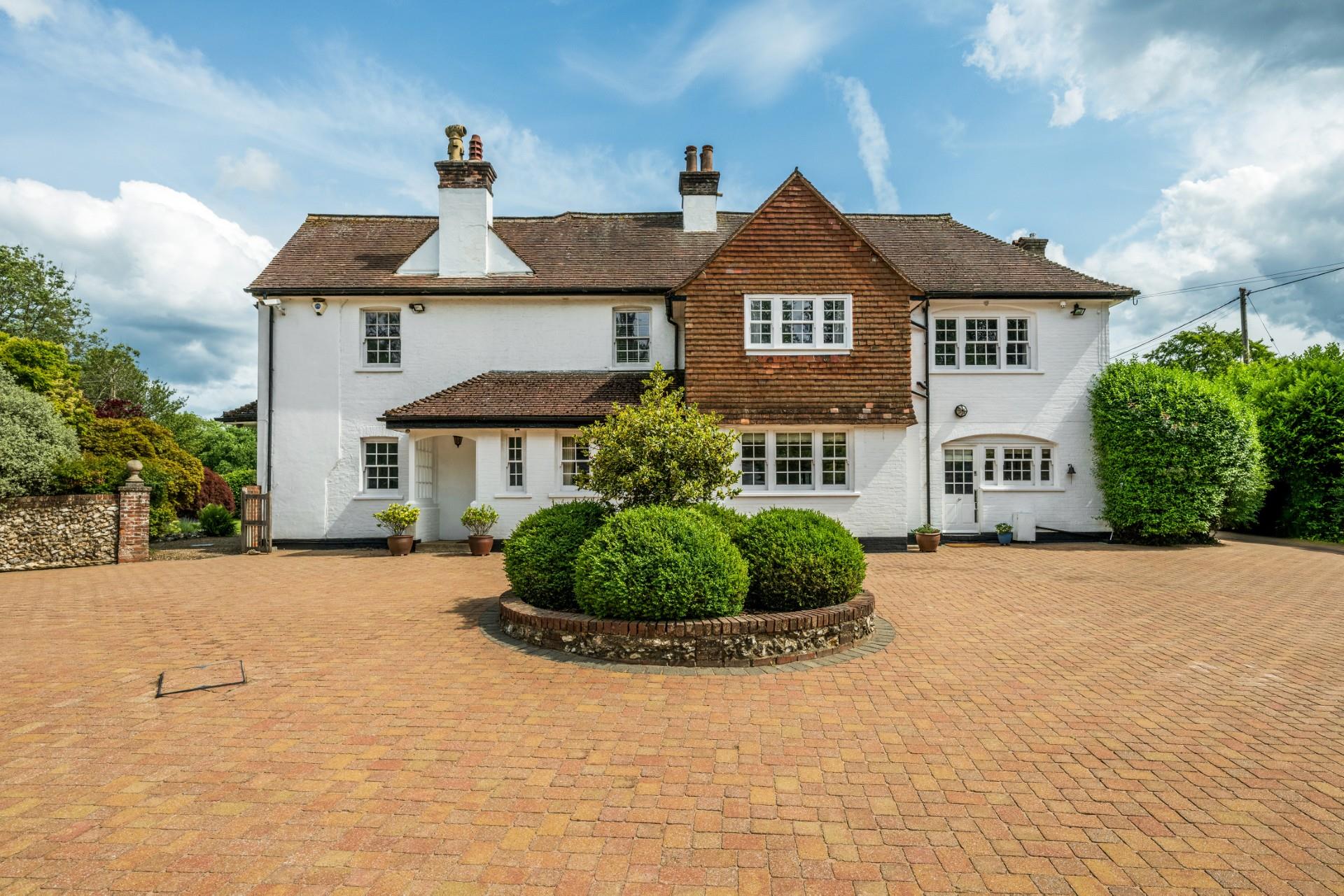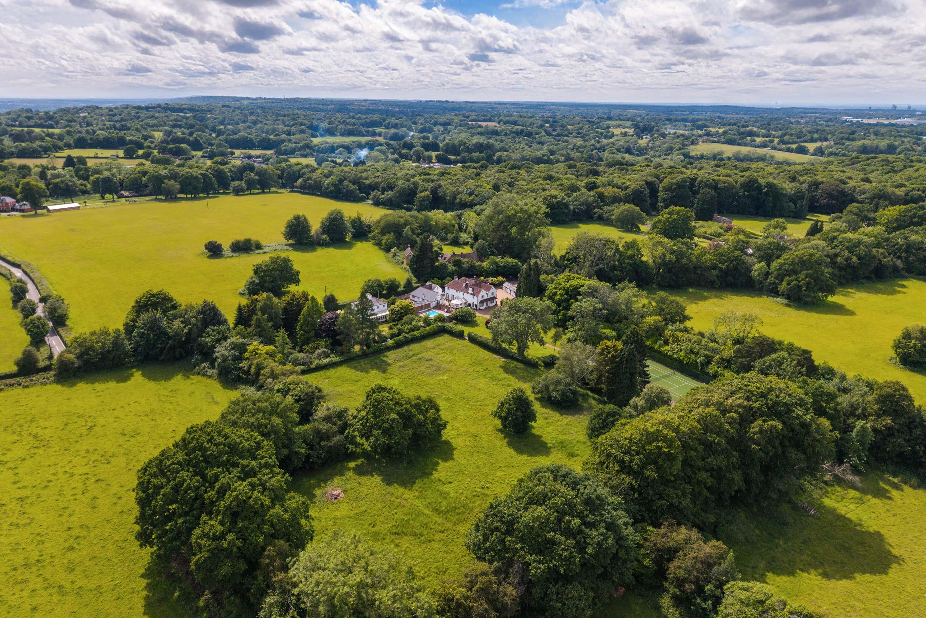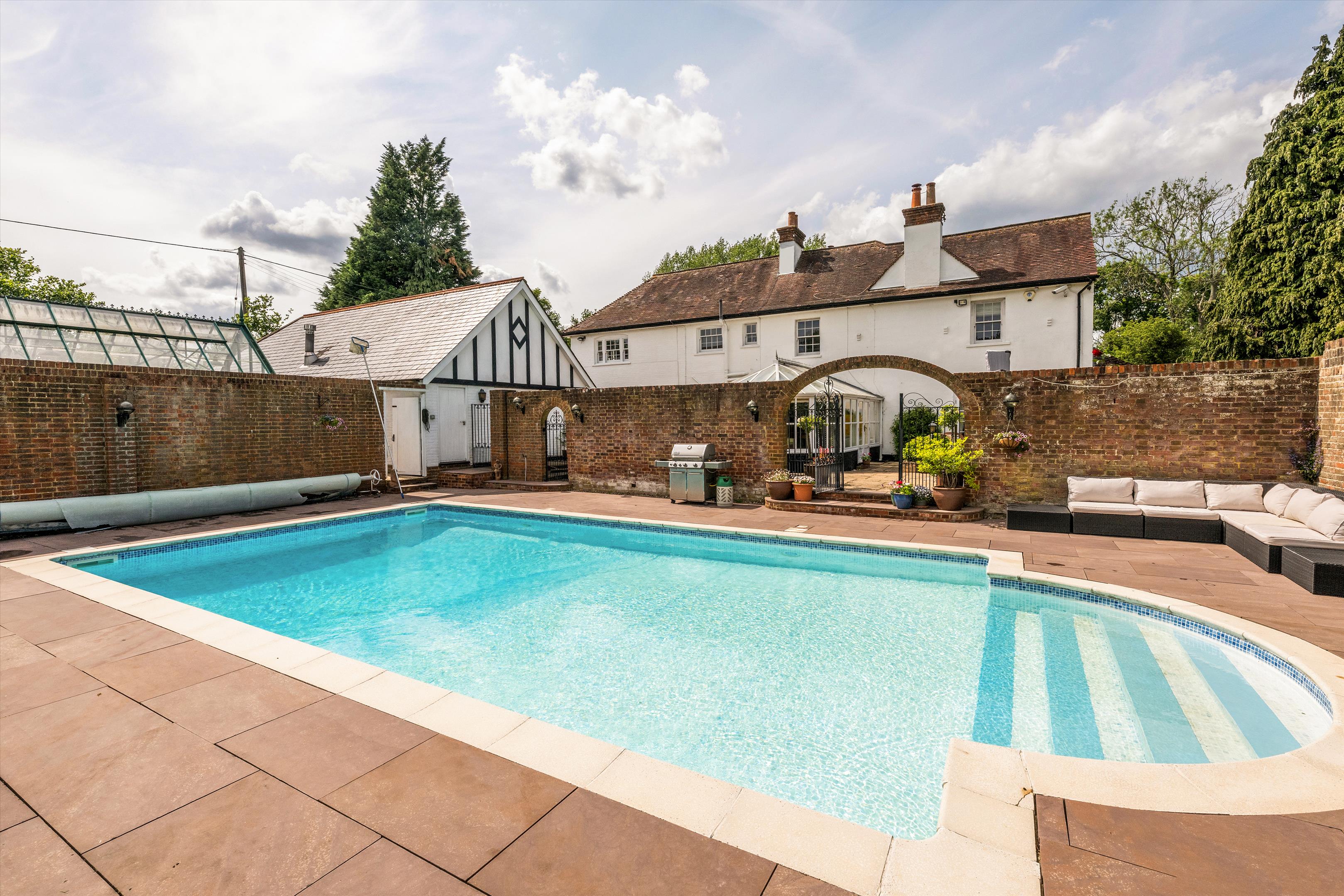 Nestled in the picturesque countryside near Sevenoaks, Scotts Lodge is a substantial family home offering over 5,000 sq ft of well-appointed accommodation, set within just under four acres of beautifully landscaped gardens, paddocks, and extensive leisure facilities.