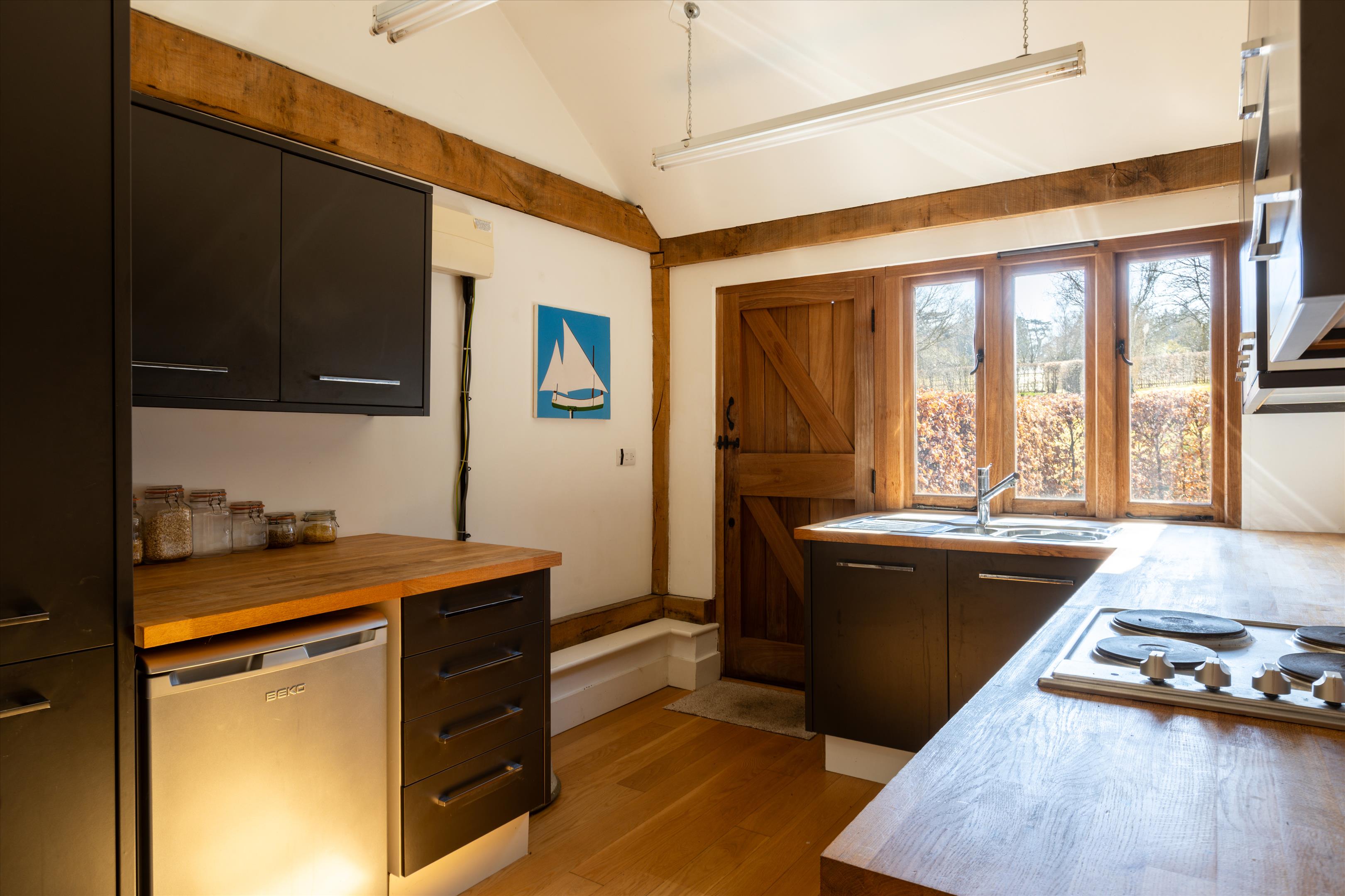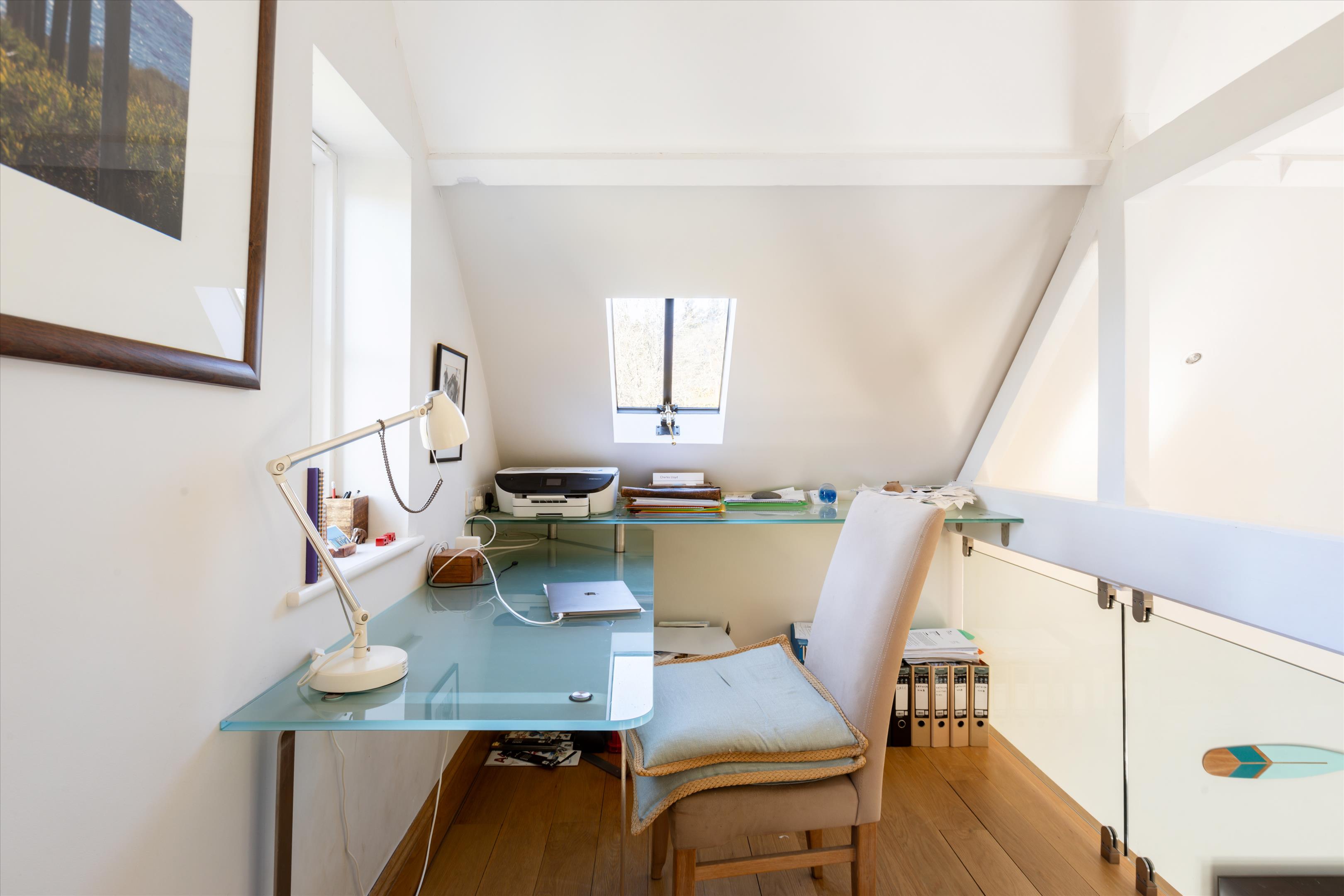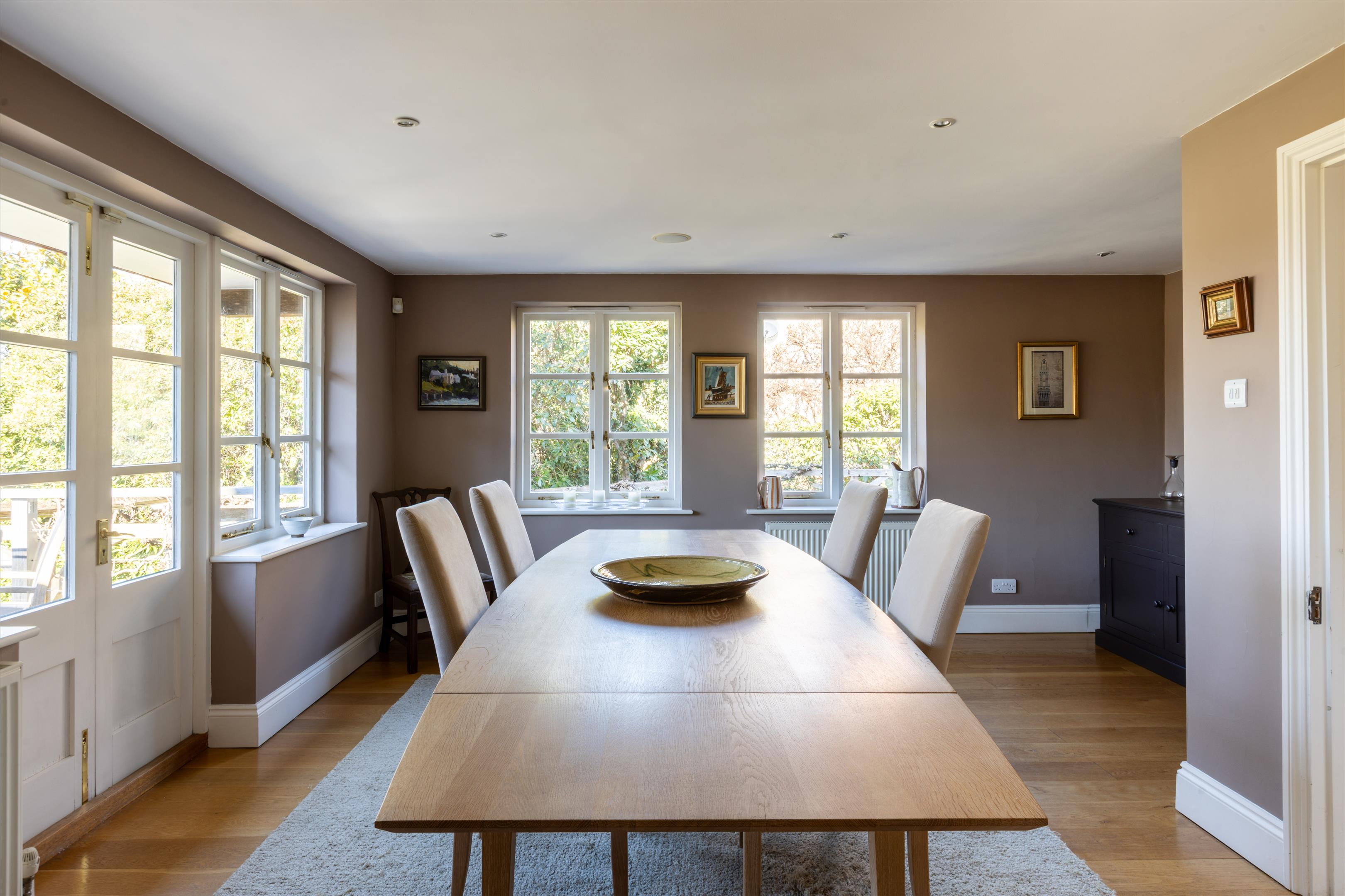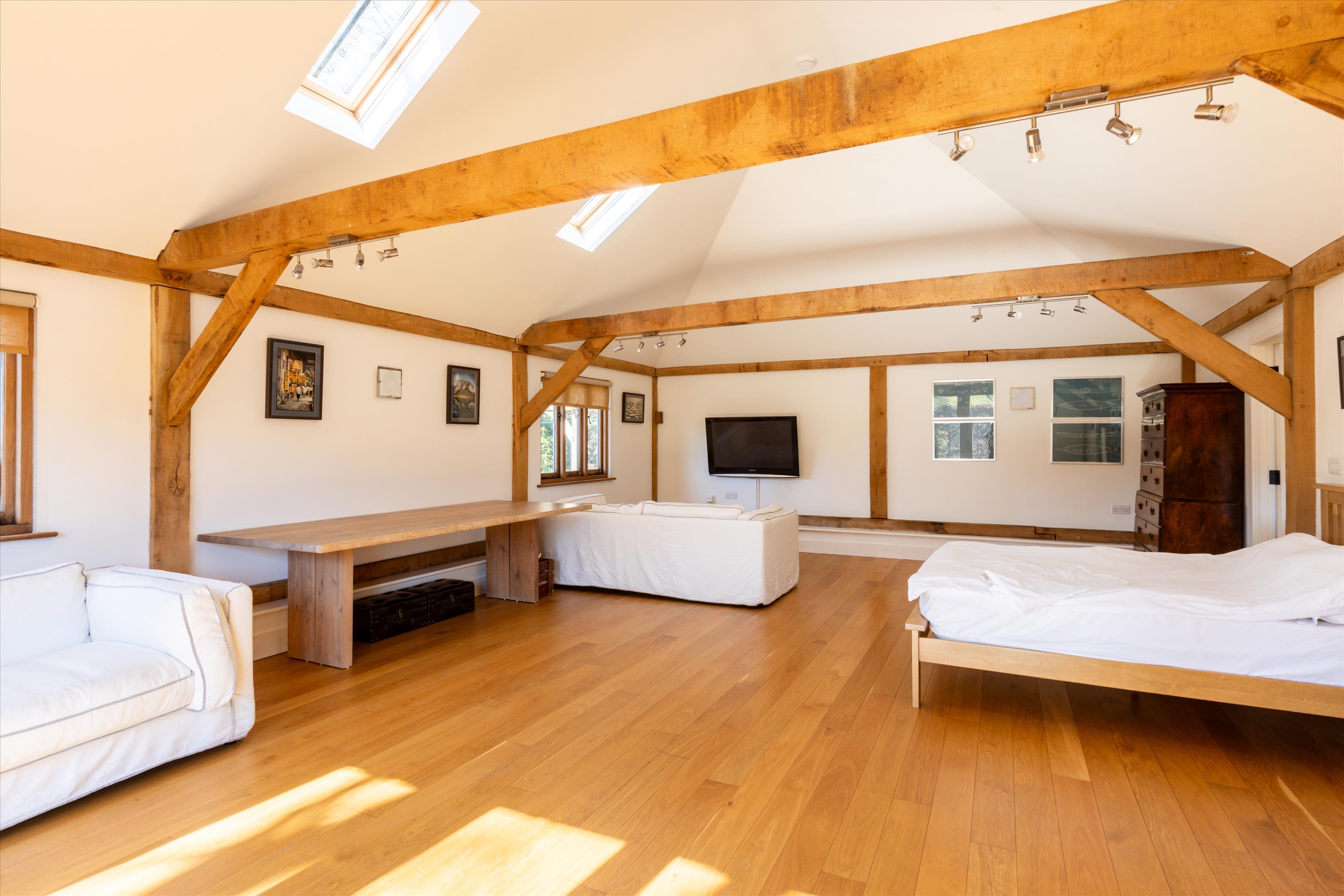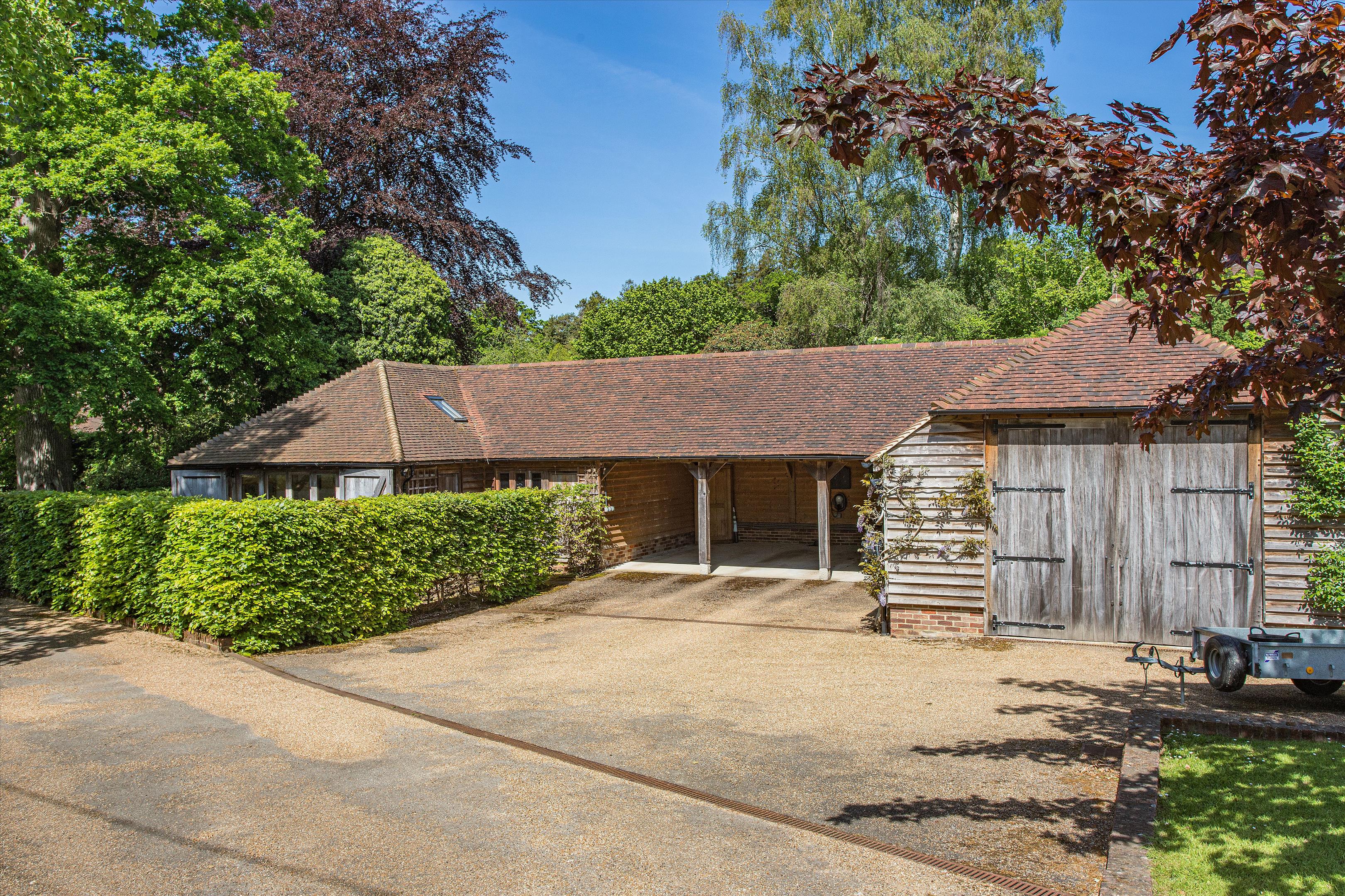 The separate cottage requires some refurbishing but presents excellent potential for guest accommodation for family and friends. It currently benefits from granted planning permission for the erection of a single storey rear extension, two storey side extension and a detached outbuilding. The estate also benefits from a separate studio, serving as an open plan living space, ideal for guests, a home office, or as an Airbnb rental. Originally the stables, it has been redeveloped to also include a large garage, workshop and three carports. The Cottage and Studio also have their own council tax bands.