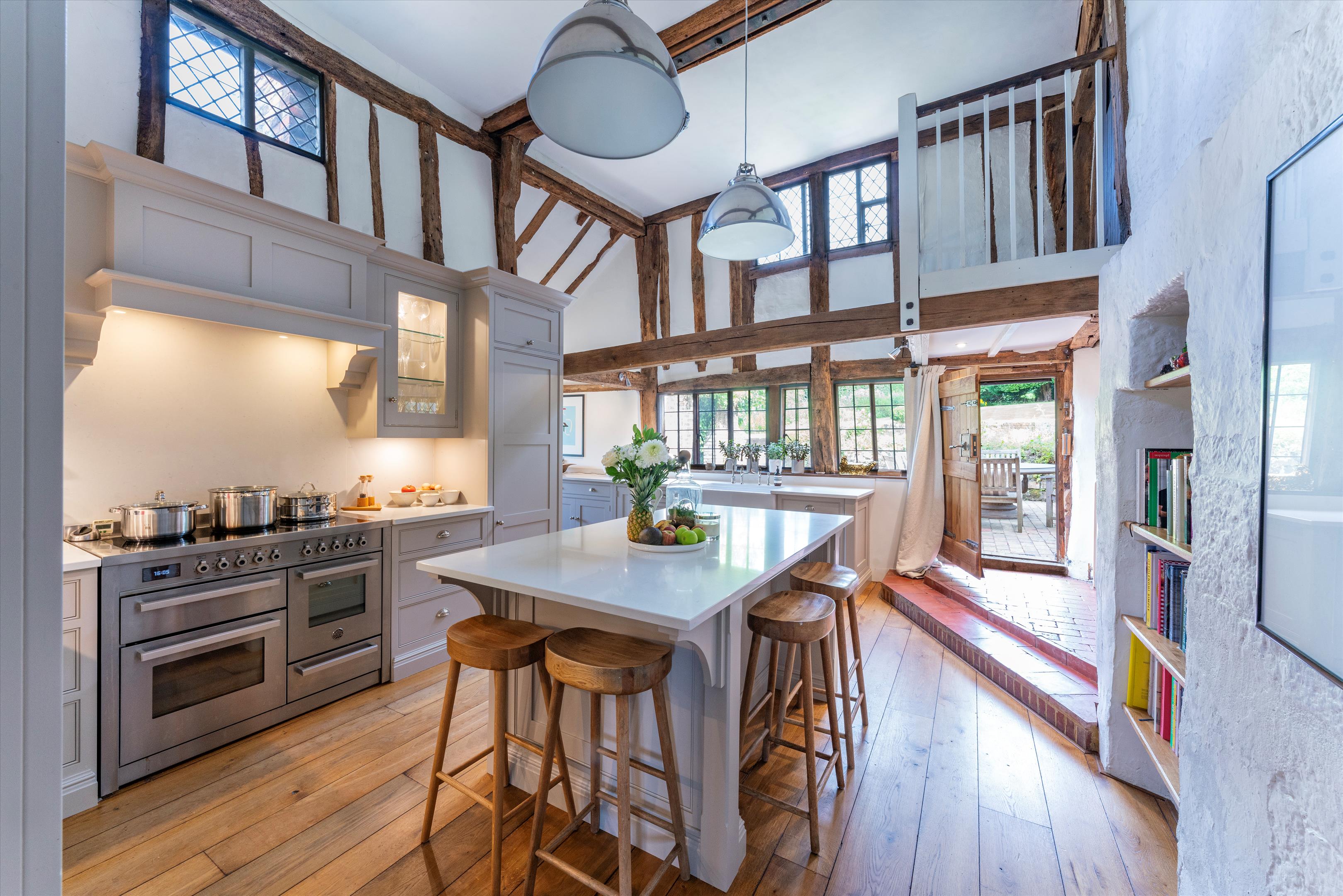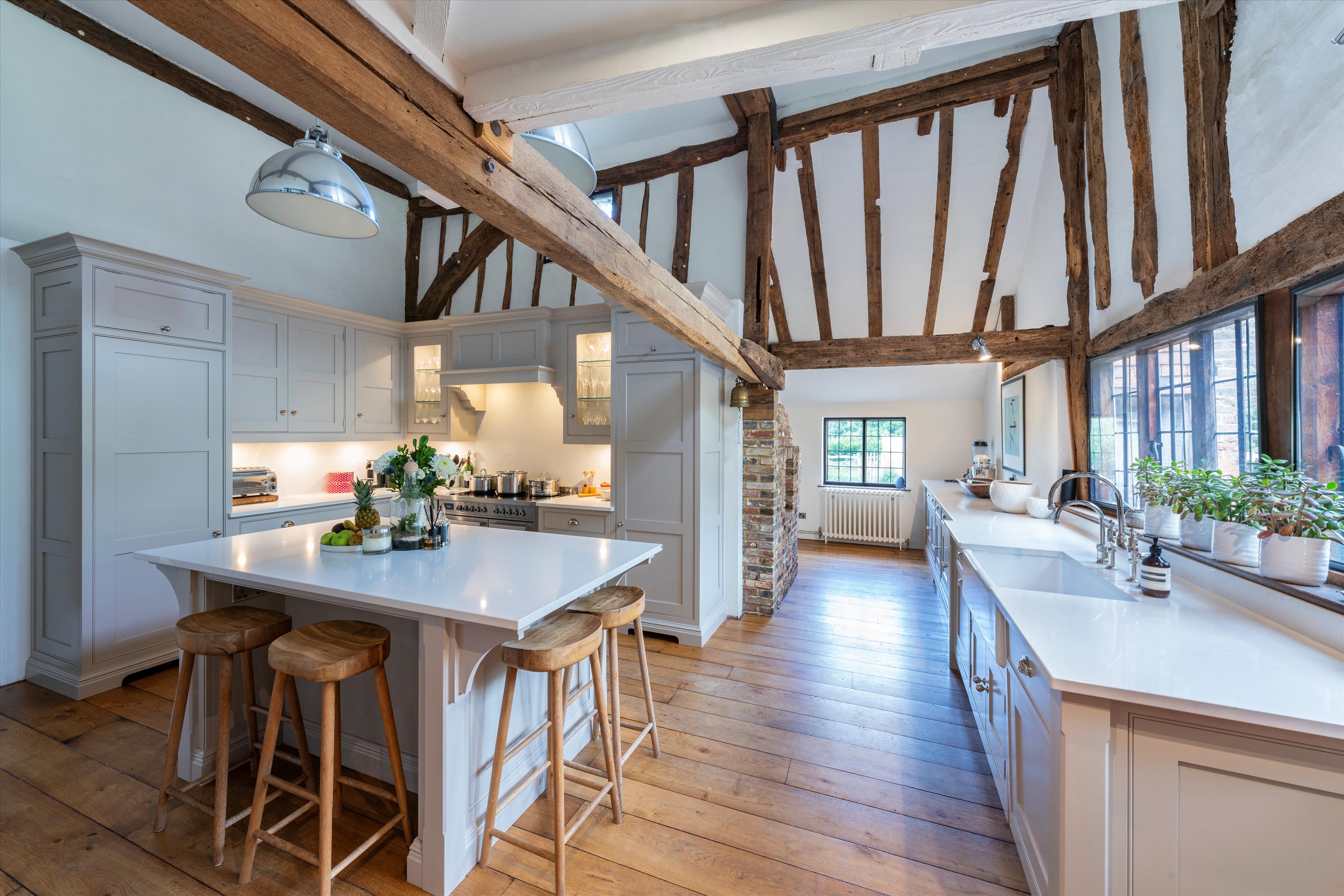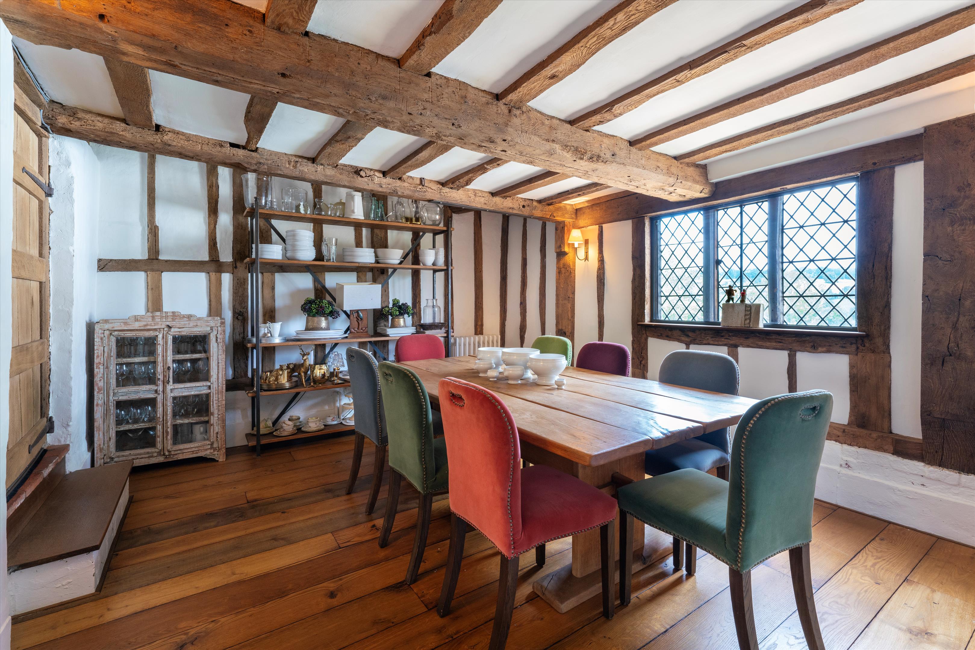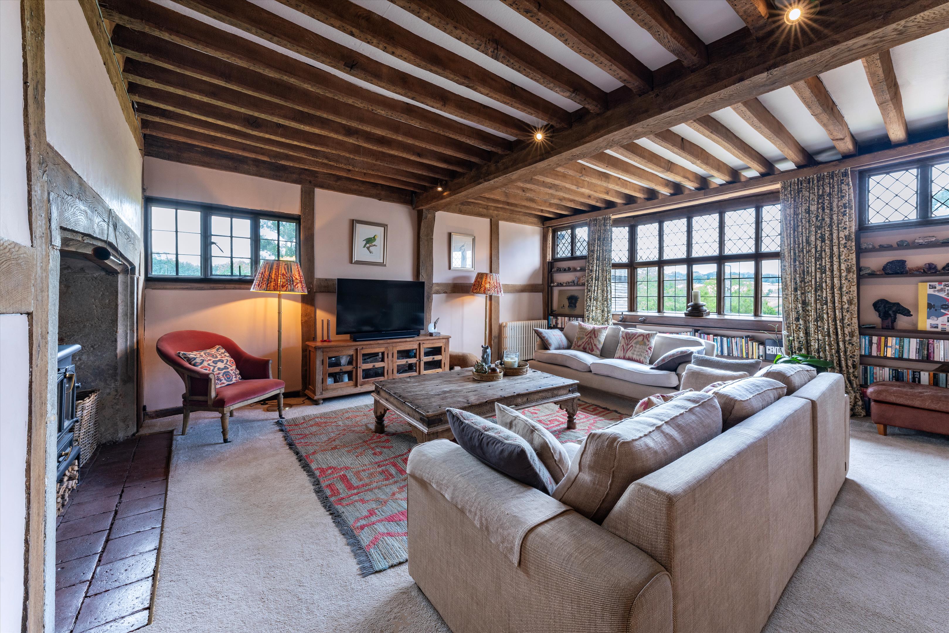 Features throughout the house include impressive exposed mellow beams and open studwork, leaded-light mullion windows (some featuring projecting frames) providing good light and distant views in all directions. There are wide inglenook fireplaces with wood burning stoves to the two principal receptions and an open fire in the reception hall, supplementing the modern central heating system, with its period-style radiators. In the main, there are generous ceiling heights reflecting the status of the house.
