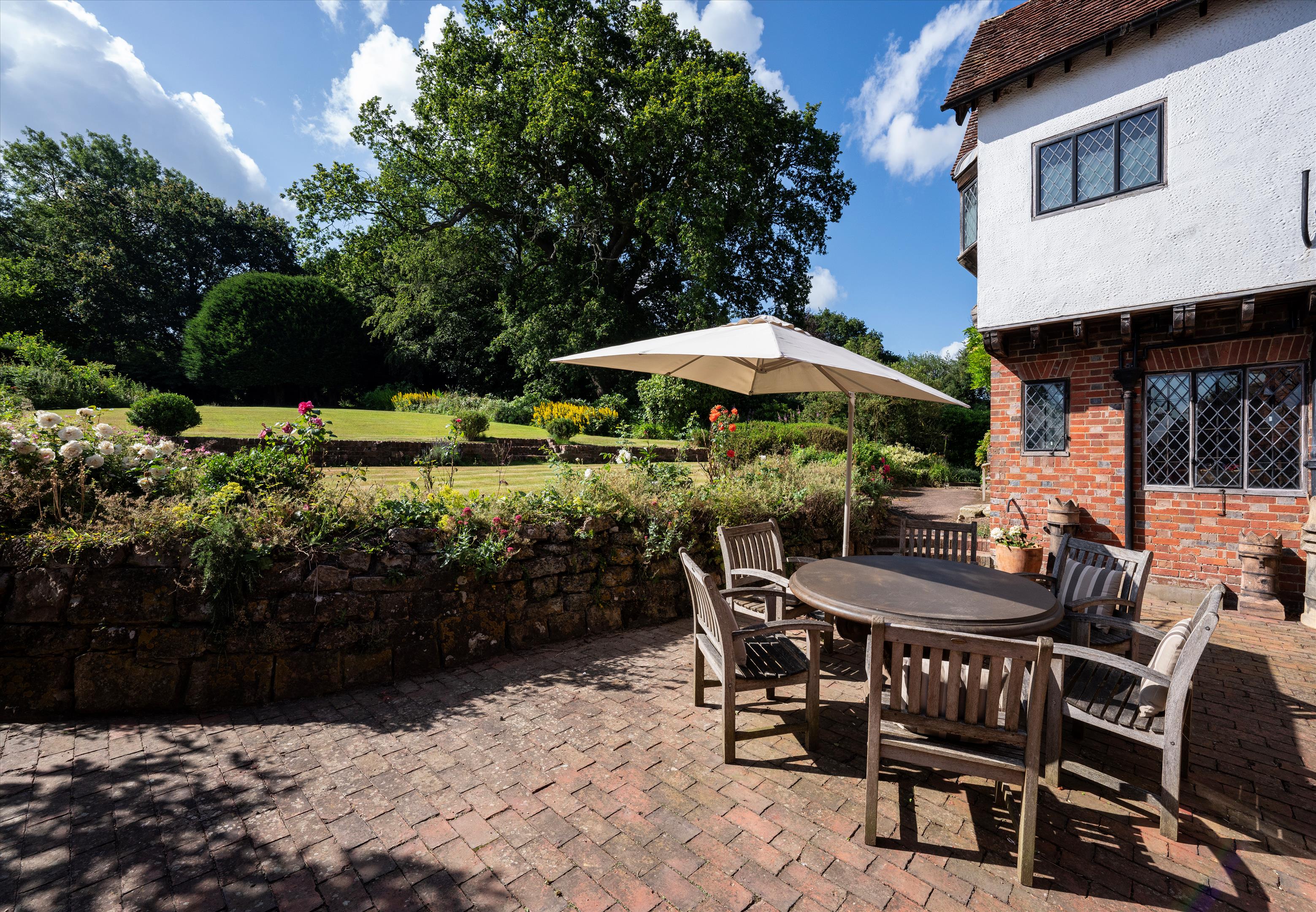 The property enjoys an extensive private driveway for parking, accessed through the electric gated entrance from the private approach lane, with a further shared secondary drive, which gives access to the attached cottage. Behind the house, directly accessed from the kitchen, there is a fine landscaped, brick-blocked, part-walled terrace, leading onto a delightful formal lawned garden with well stocked mature borders.