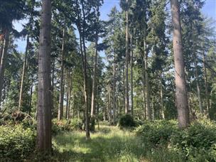 At the fringes of the wood thick areas of bramble and bracken provide ideal natural screening and cover for woodland mammals. Deer lie in wait during the day until emerging to graze in the grassy clearings and animal trails can be made out running across the woodland floor amongst the undergrowth.
