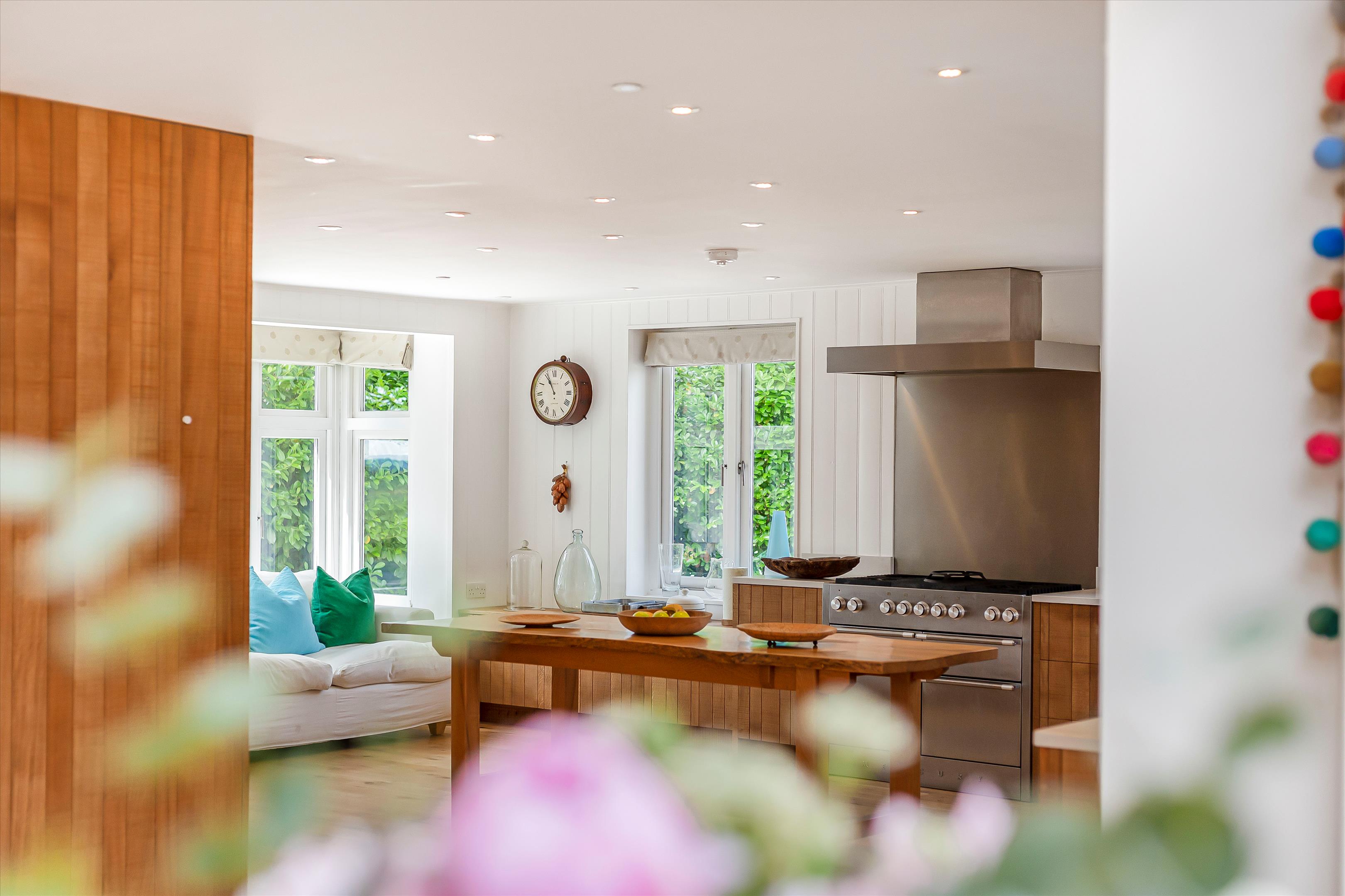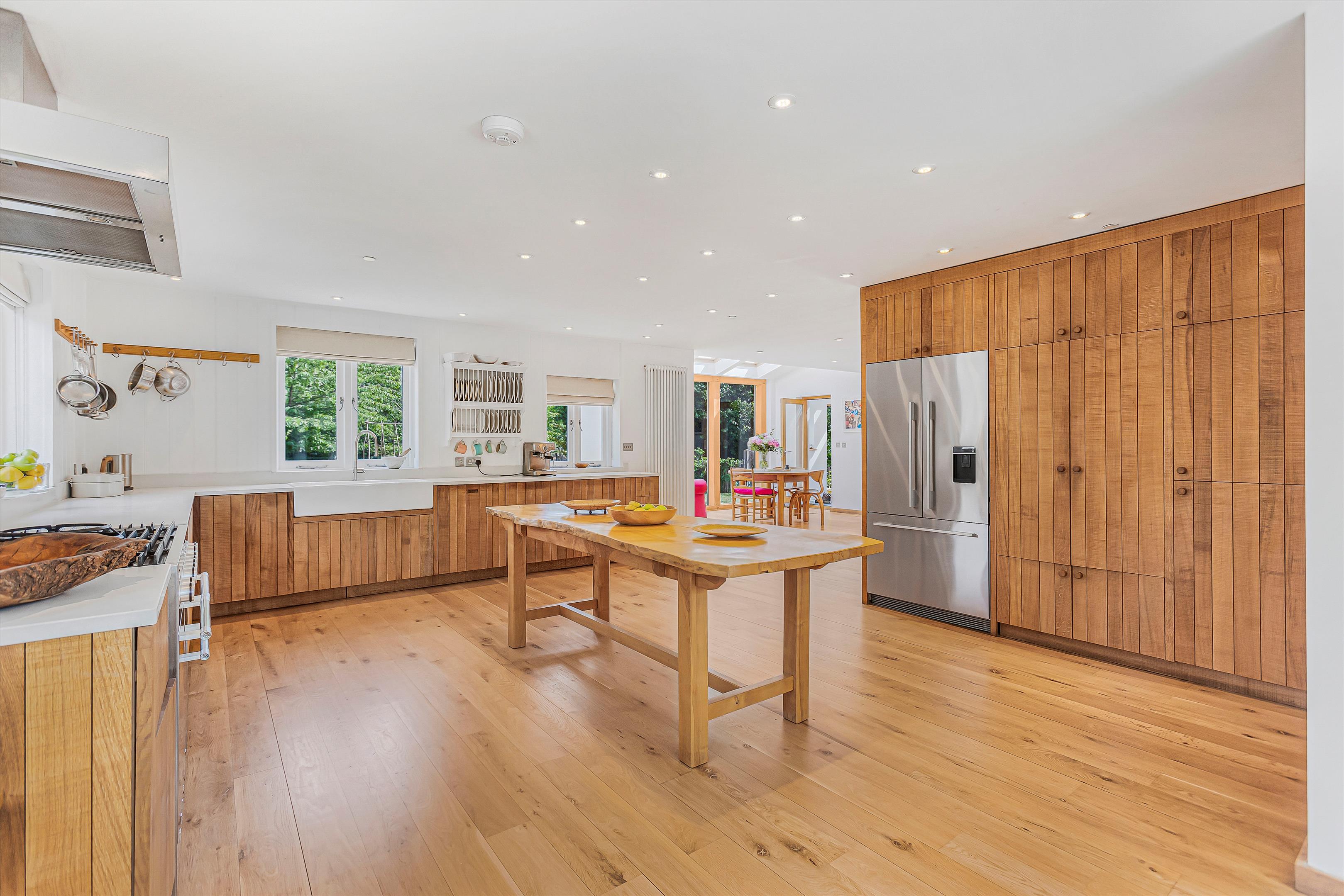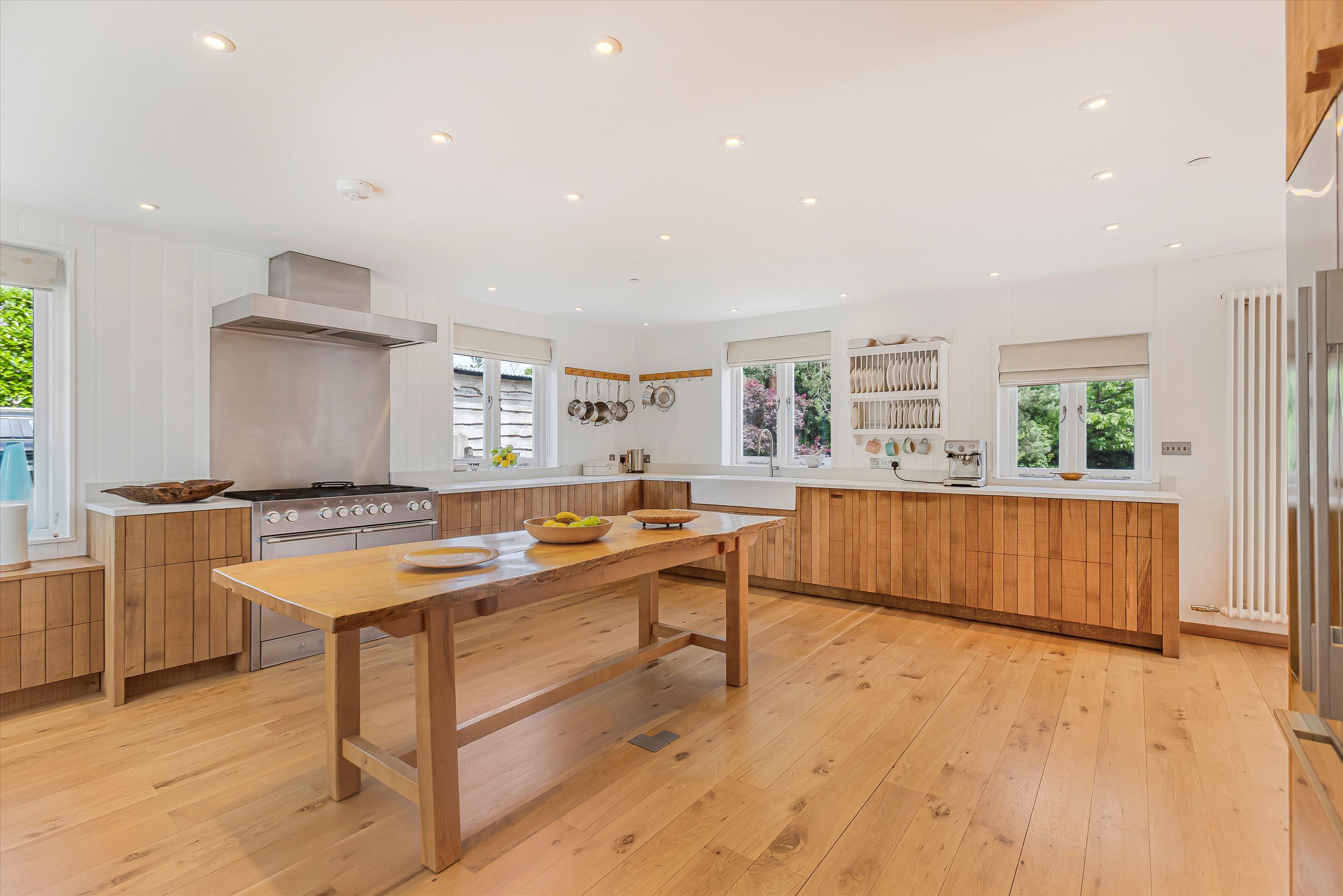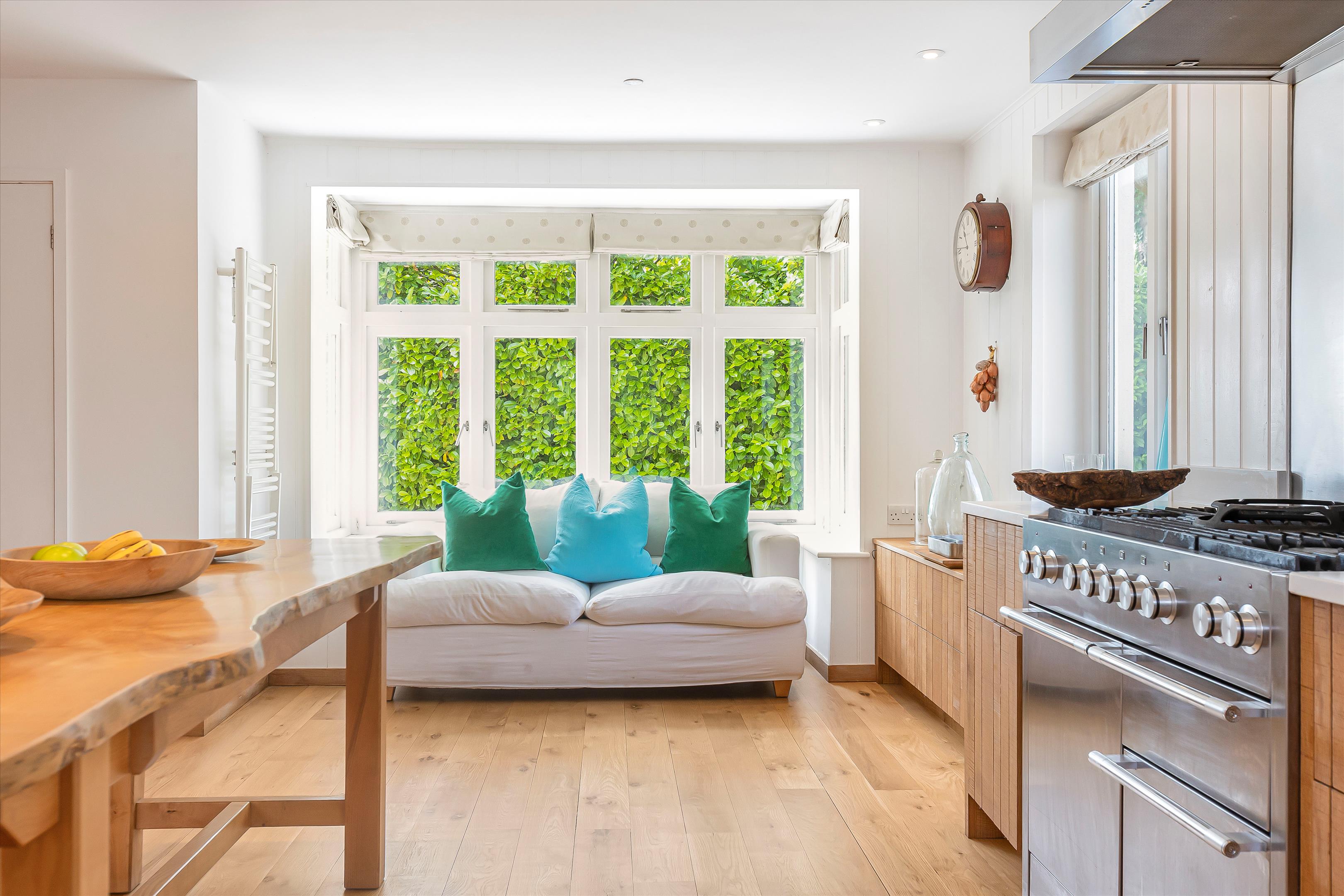 Completely renovated in 2010, the house benefits from all-new wiring, plumbing, and drainage systems. In 2022, the kitchen was stylishly refitted with bespoke solid oak cabinetry and birch ply carcasses, reflecting a sustainable ethos. It is comprehensively equipped with premium appliances, including a Fisher & Paykel fridge, Miele dishwasher, and Mercury range cooker with gas hob and twin electric ovens.