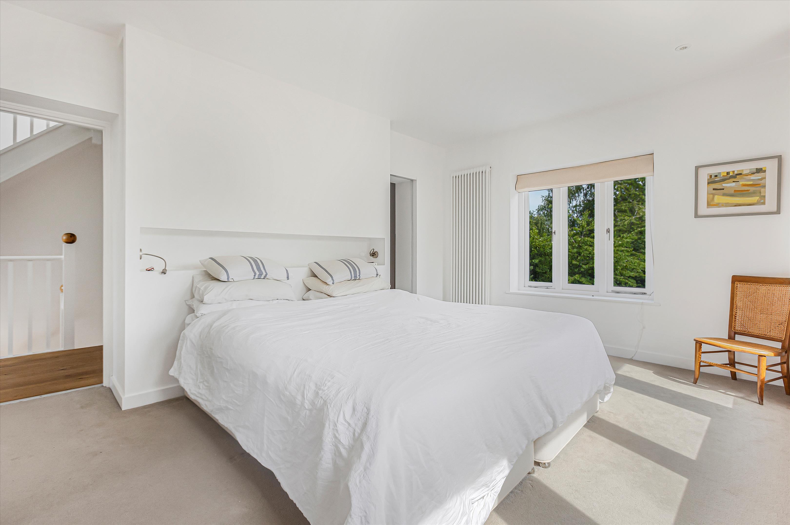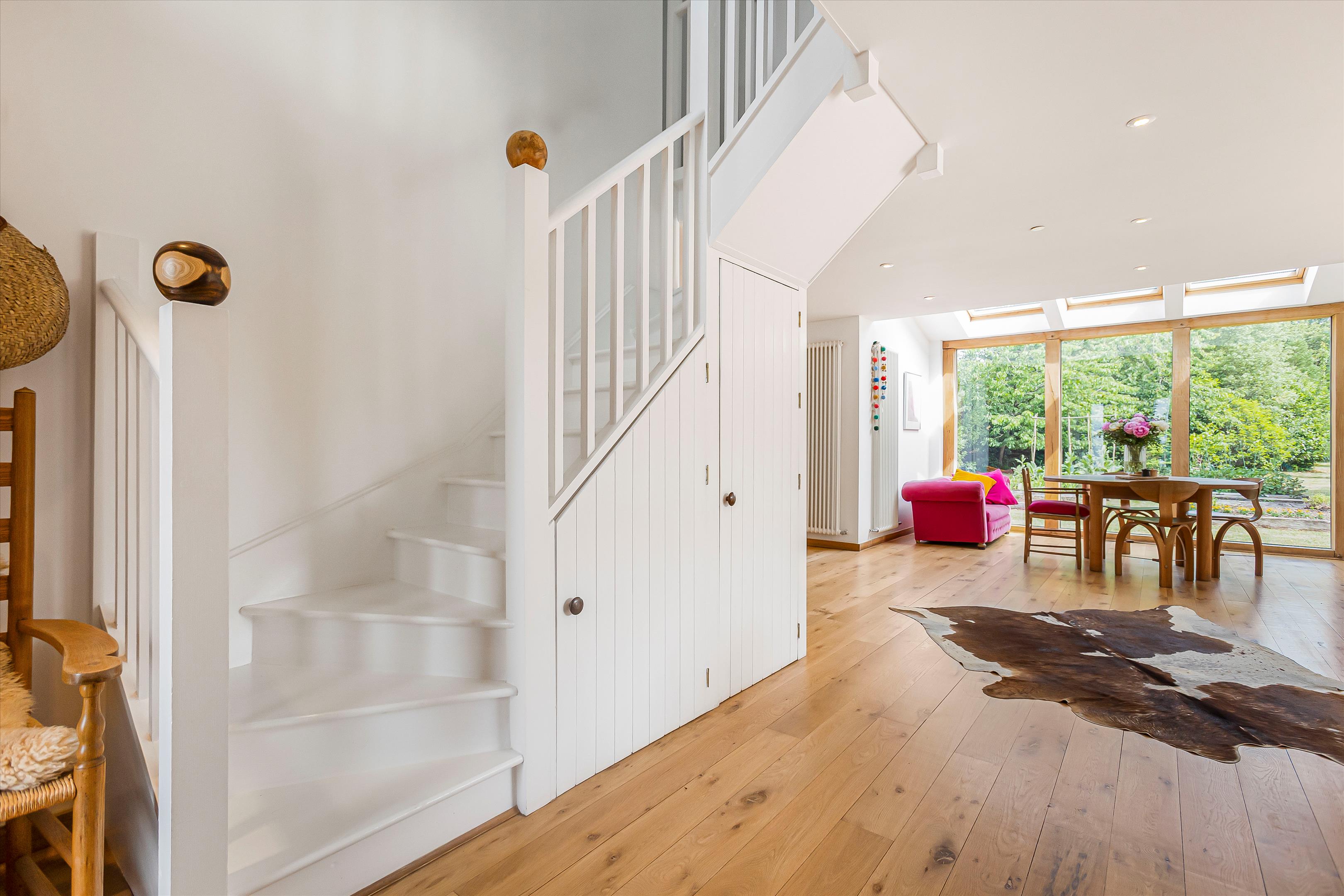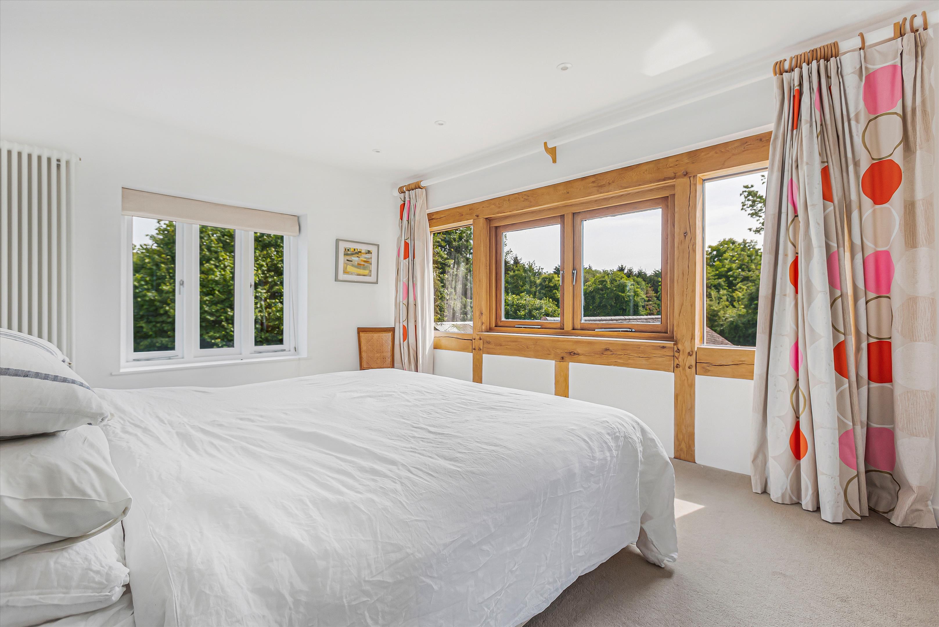 The main bedroom suite enjoys spectacular views across the gardens and grounds, which extend to just under 5 acres. A thoughtfully designed dressing room complements the suite, fitted with solid oak cabinetry and birch ply interiors. Three bedrooms on the first floor benefit from double aspect windows while the bedrooms on the top floor have uninterrupted countryside views over the rear garden and beyond.