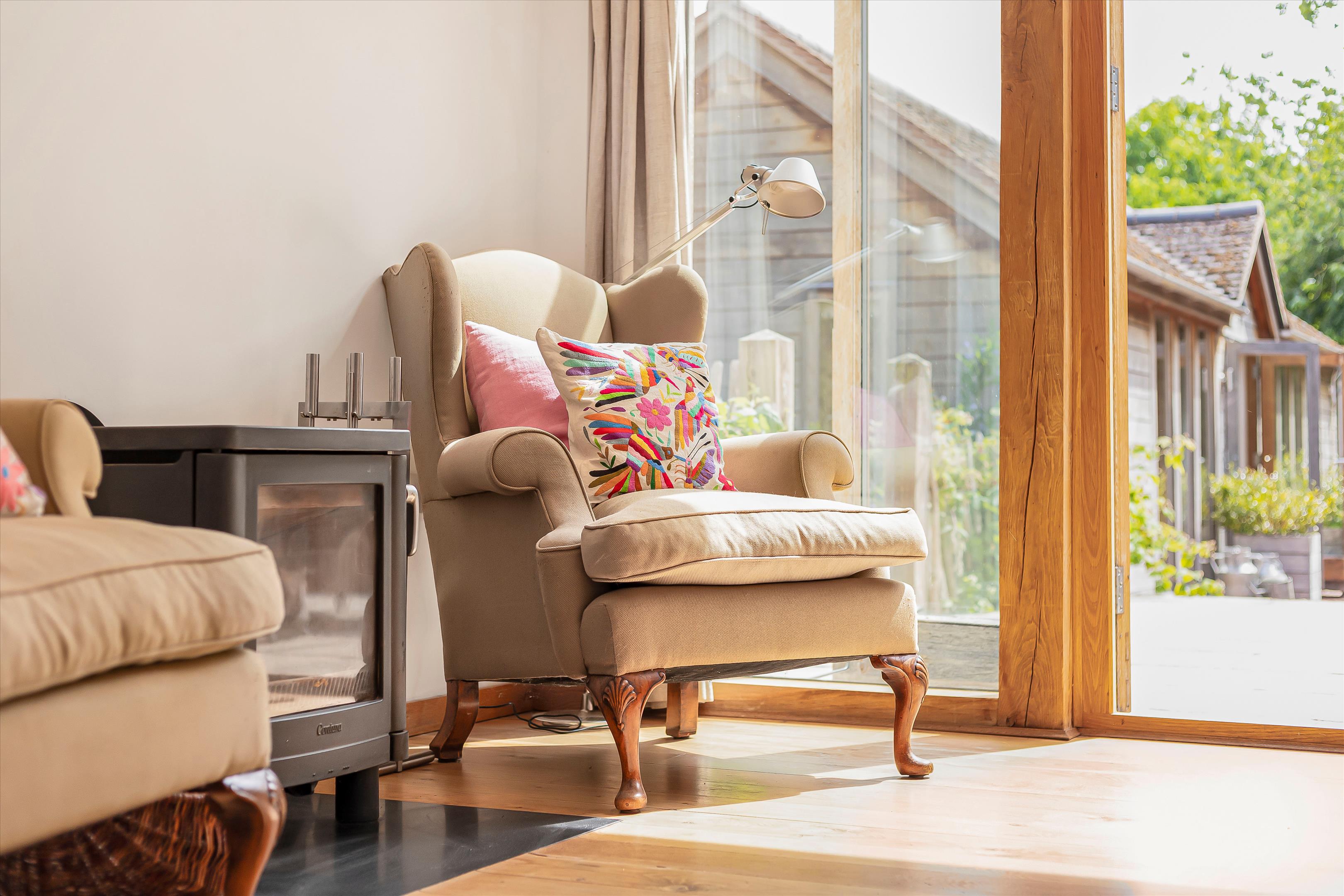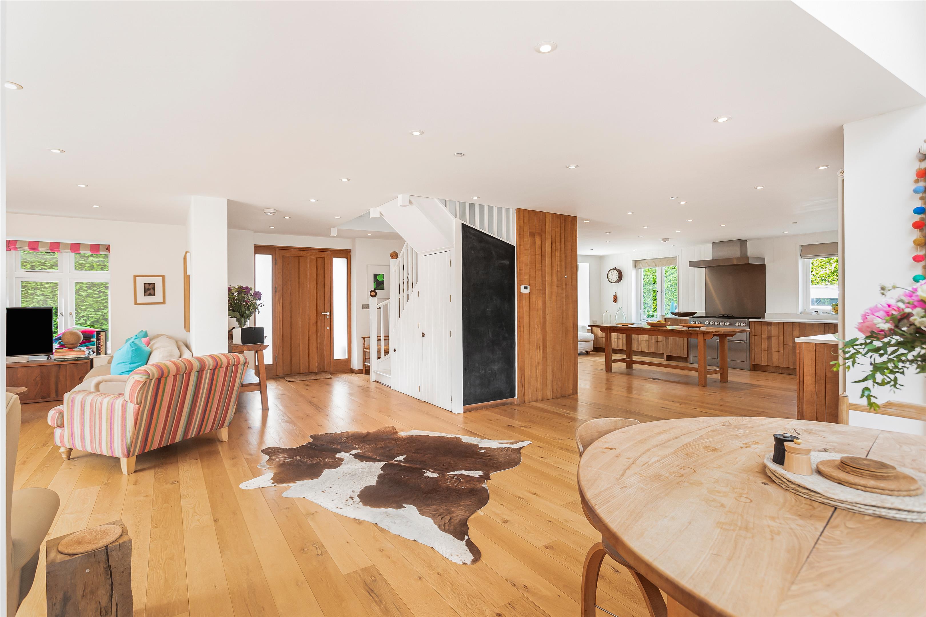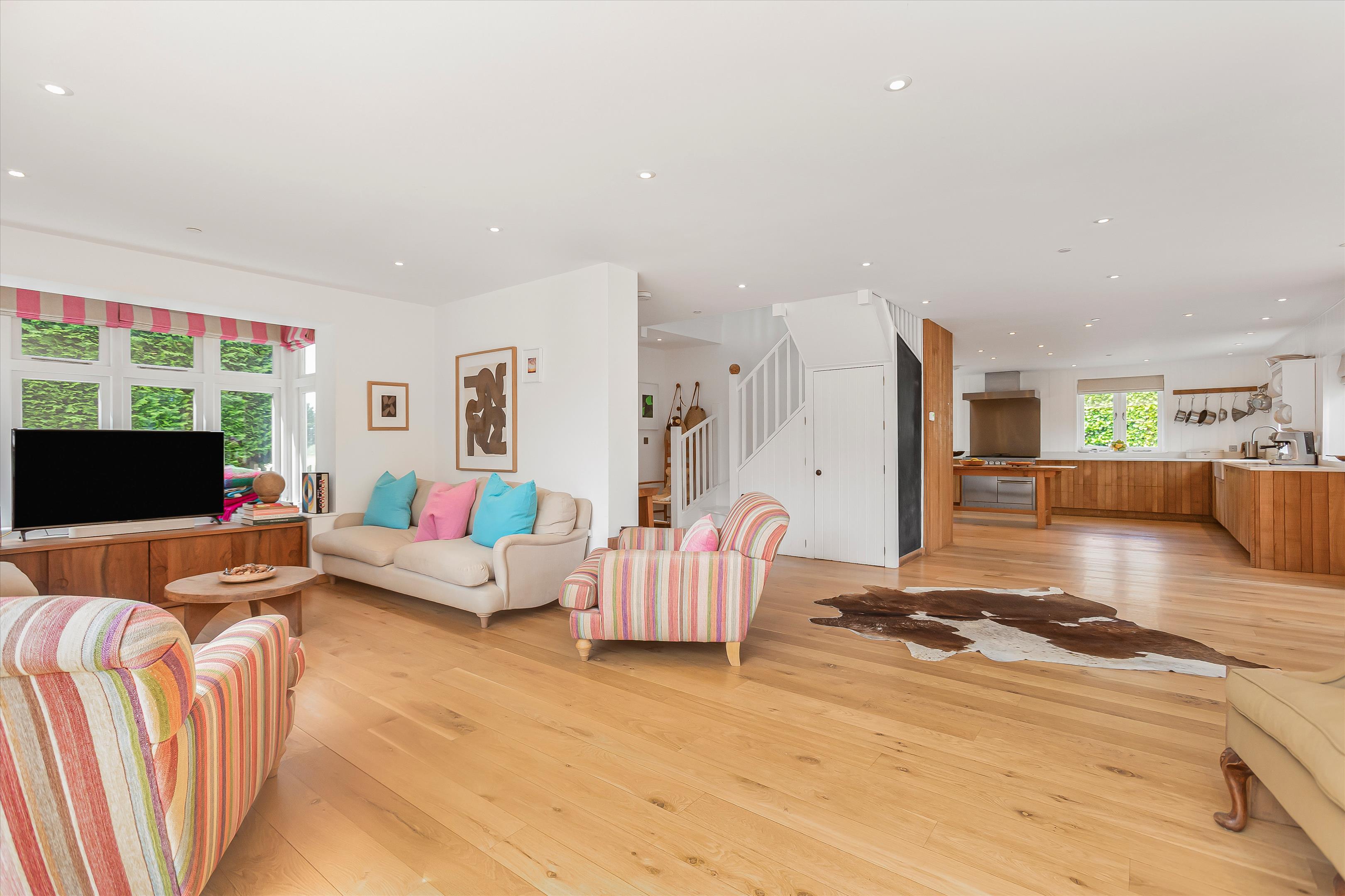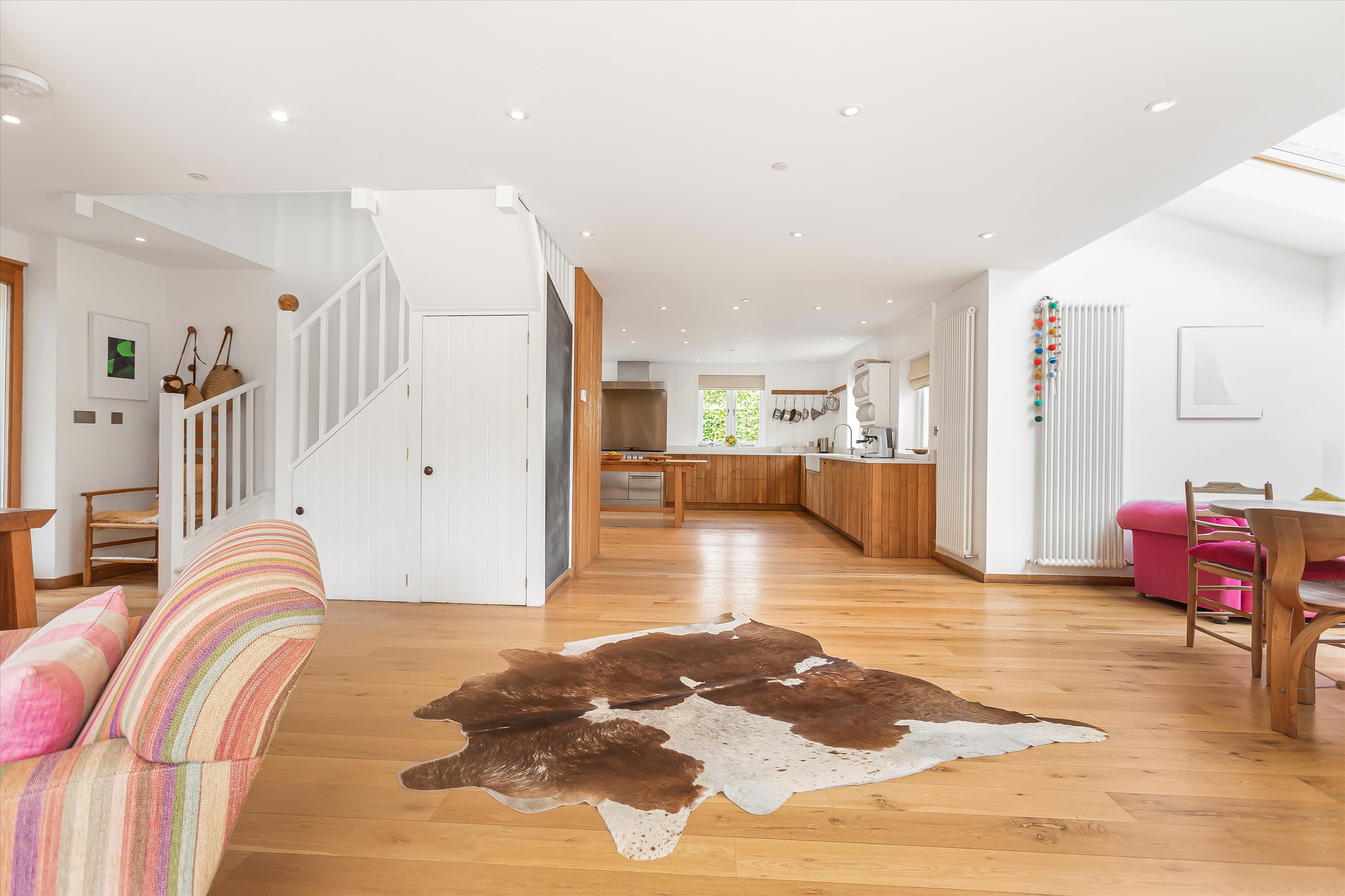The main bedroom suite enjoys spectacular views across the gardens and grounds, which extend to just under 5 acres. A thoughtfully designed dressing room complements the suite, fitted with solid oak cabinetry and birch ply interiors. Three bedrooms on the first floor benefit from double aspect windows while the bedrooms on the top floor have uninterrupted countryside views over the rear garden and beyond.