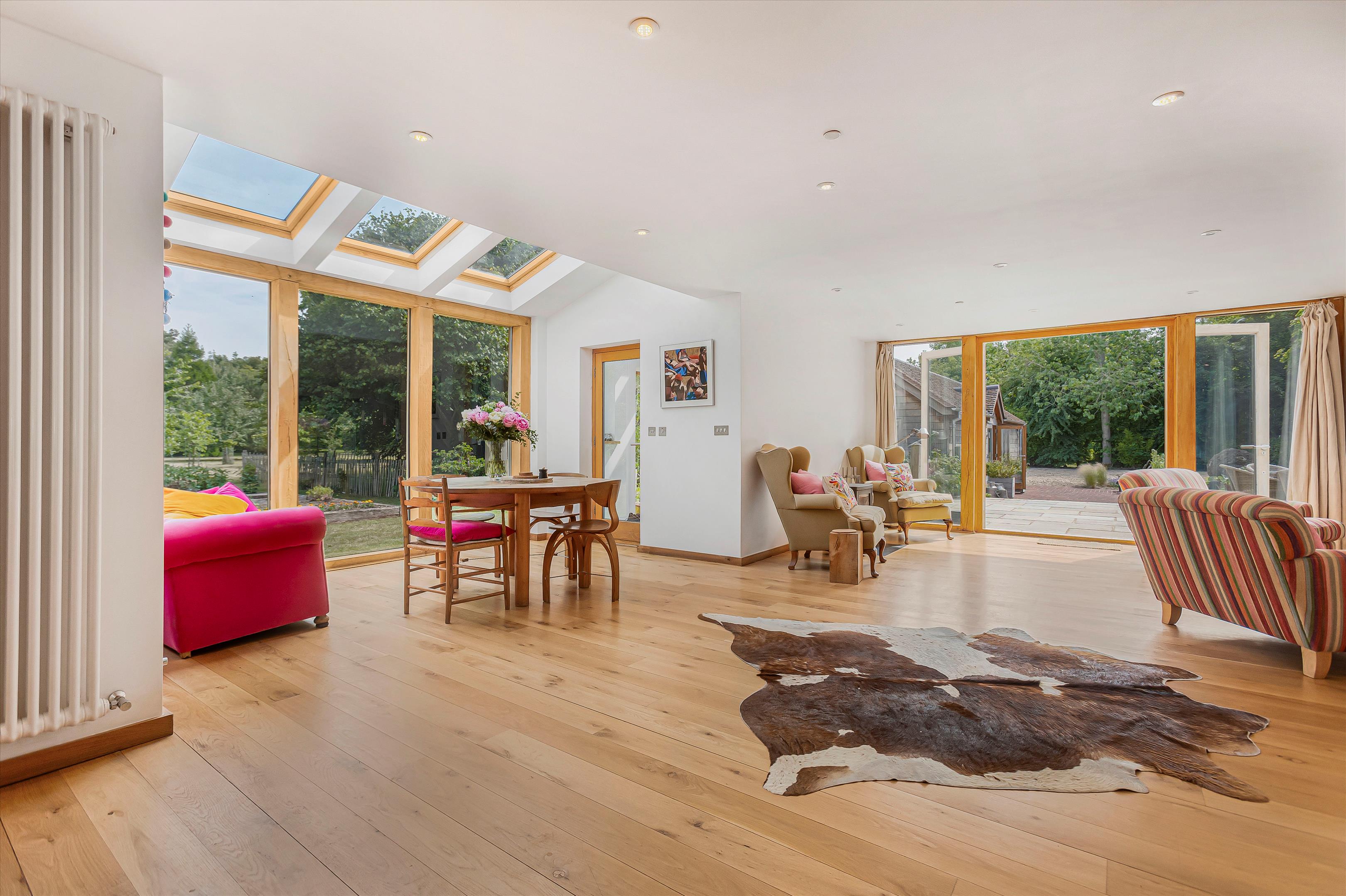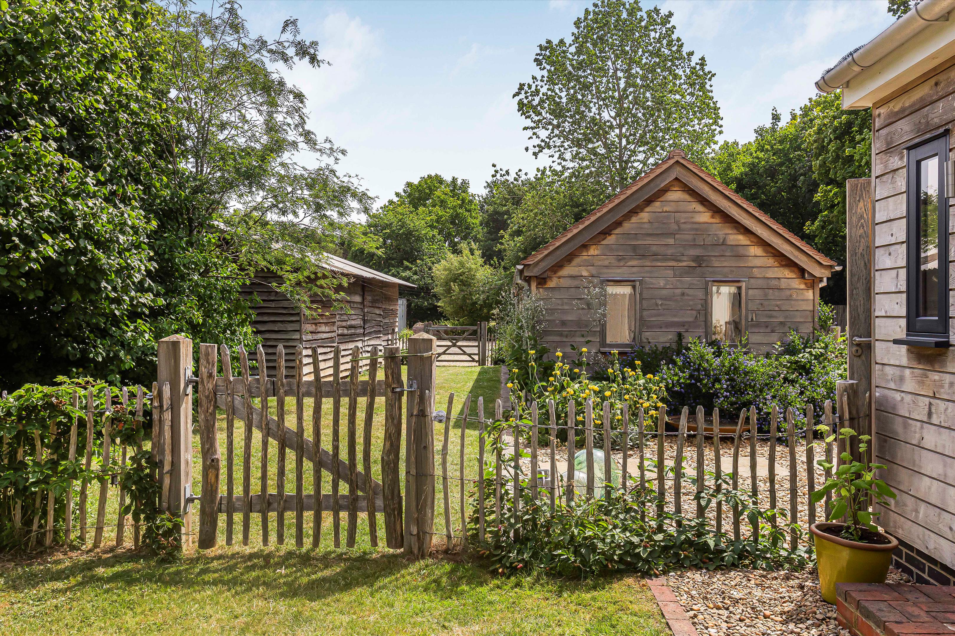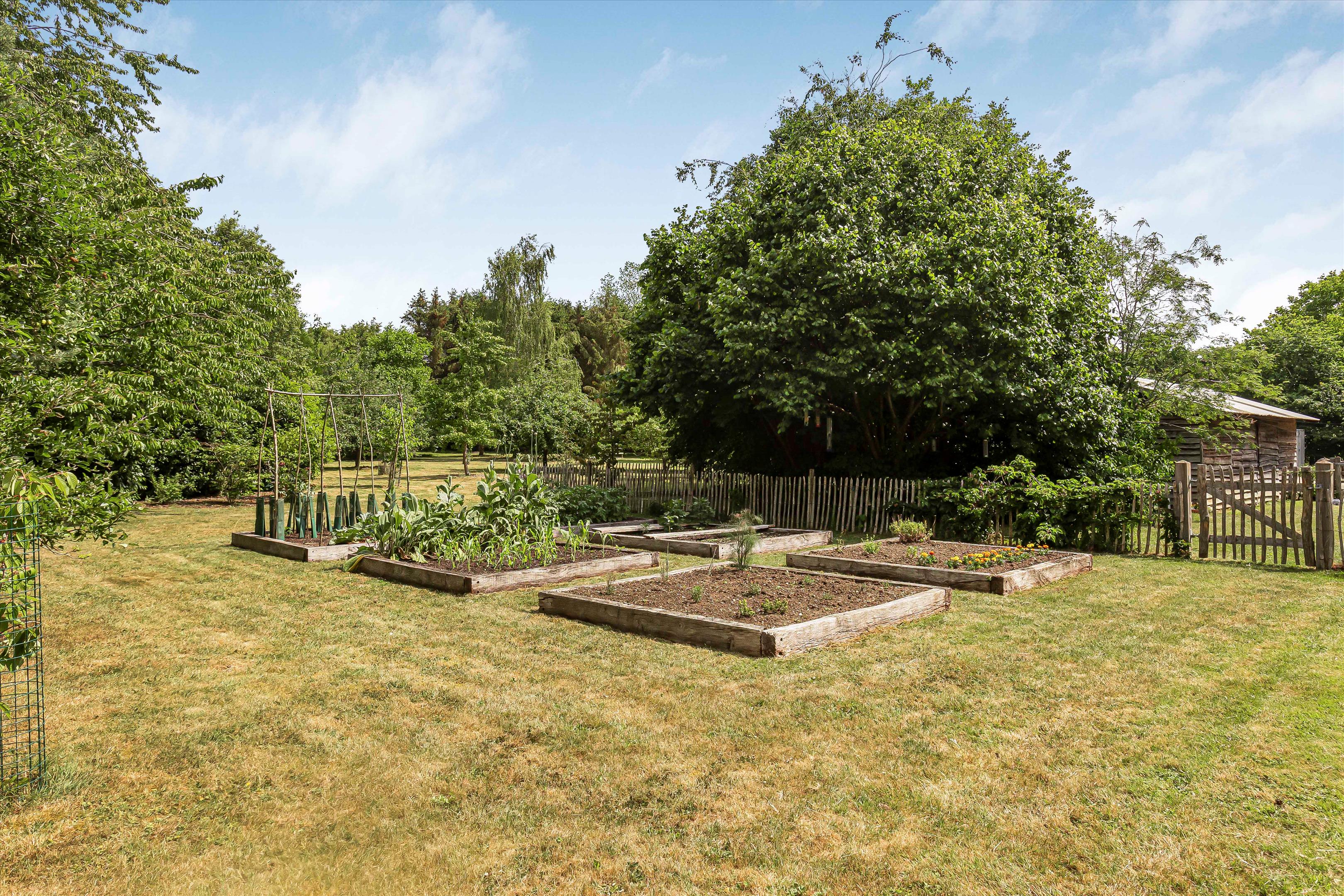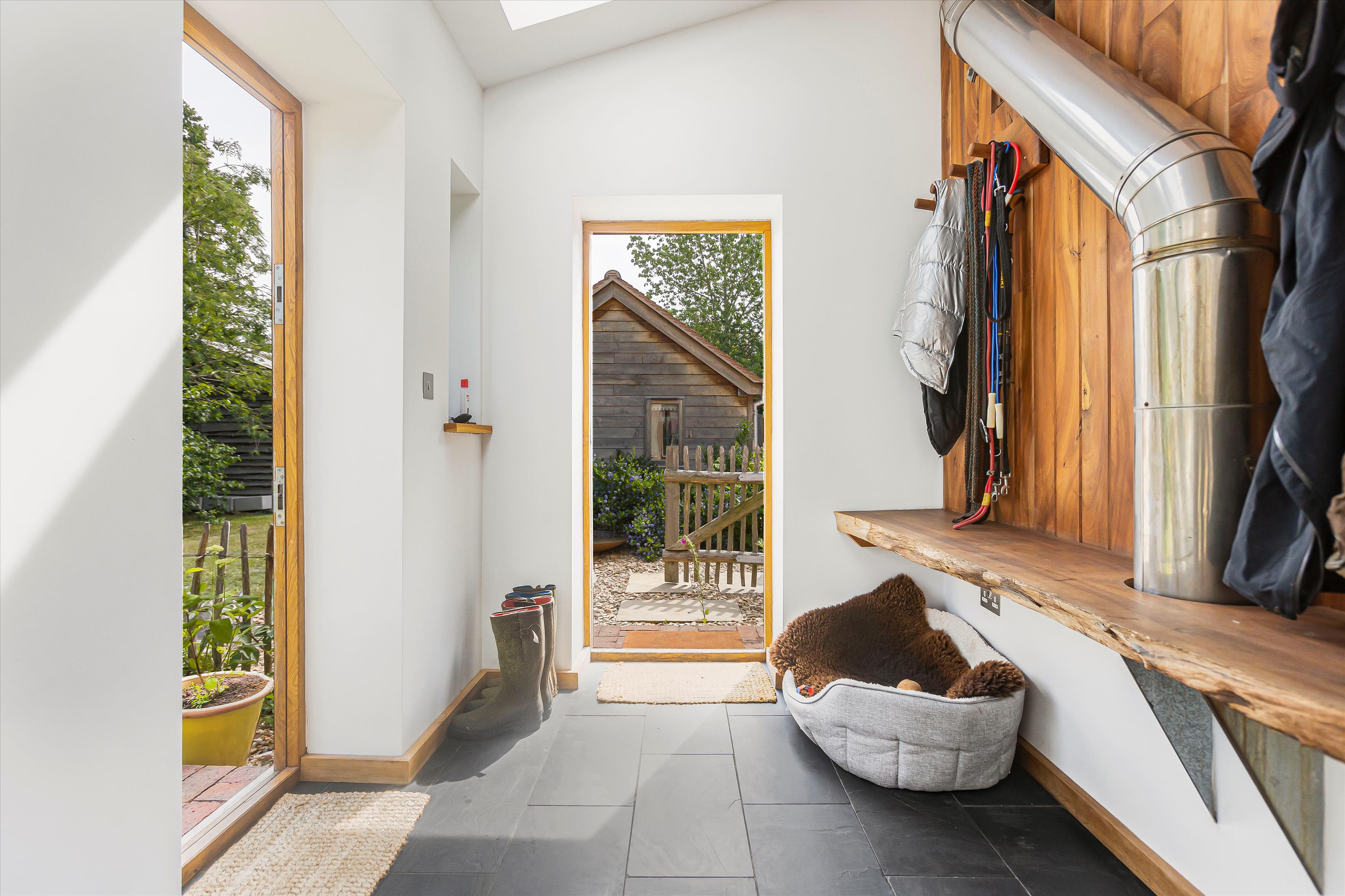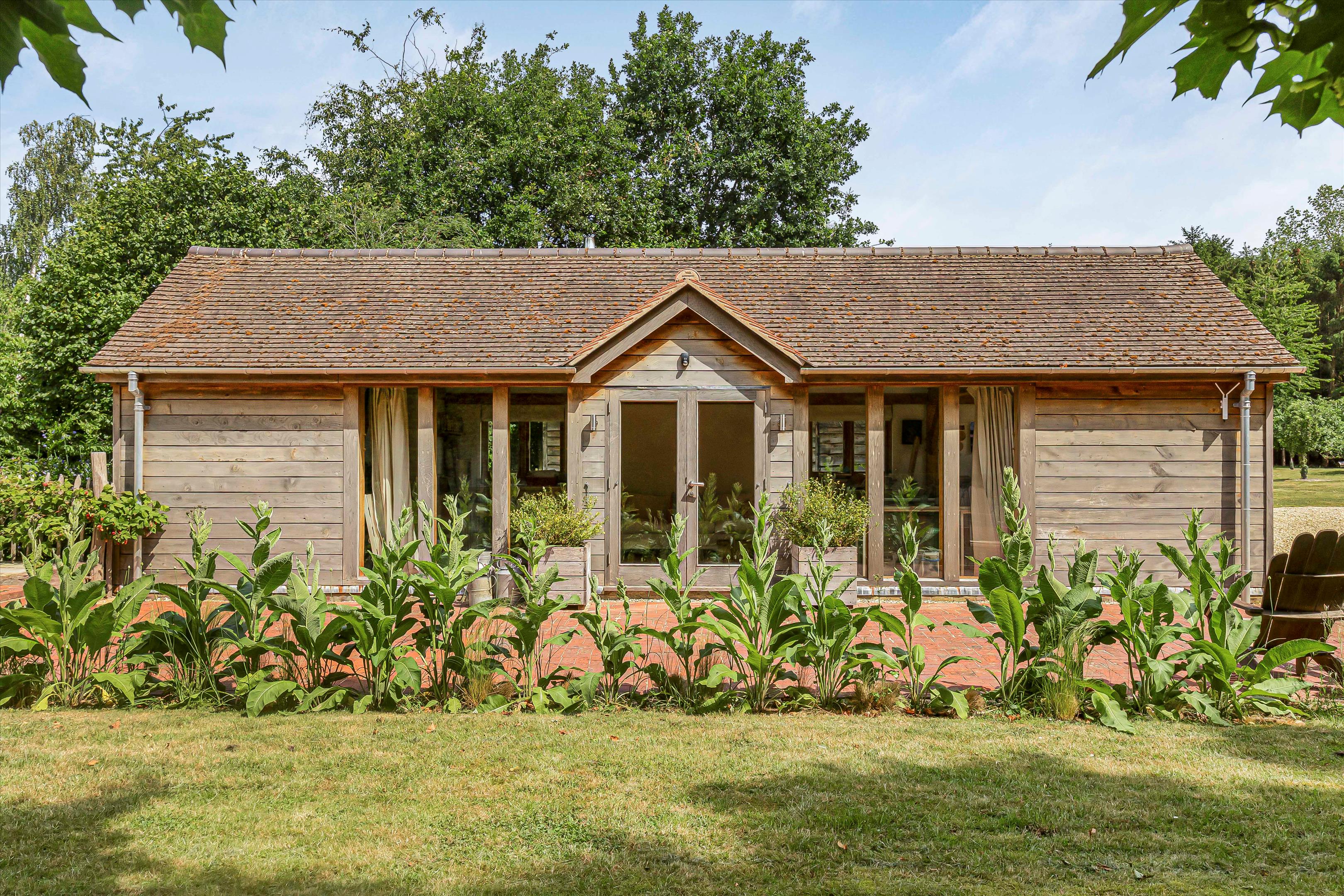 Externally, Blagrove Lodge is equally impressive. The property was converted from agricultural to residential use approximately ten years ago and has been carefully curated since. The large green oak building in the garden provides a multitude of opportunities from artists studio-office or extra living space.The garden is well-stocked and features a mature orchard with apple, quince, damson, plum, hazelnut, mulberry, pear, walnut, and cherry trees. The wider grounds have been planted under the guidance of a tree specialist, resulting in an exceptional and rare collection including Ginkgo, Wellingtonia, Cedar of Lebanon, Serbian Spruce, Lombardy Poplar, Scots Pine, Holm Oak, and Persian Ironwood, among many others.