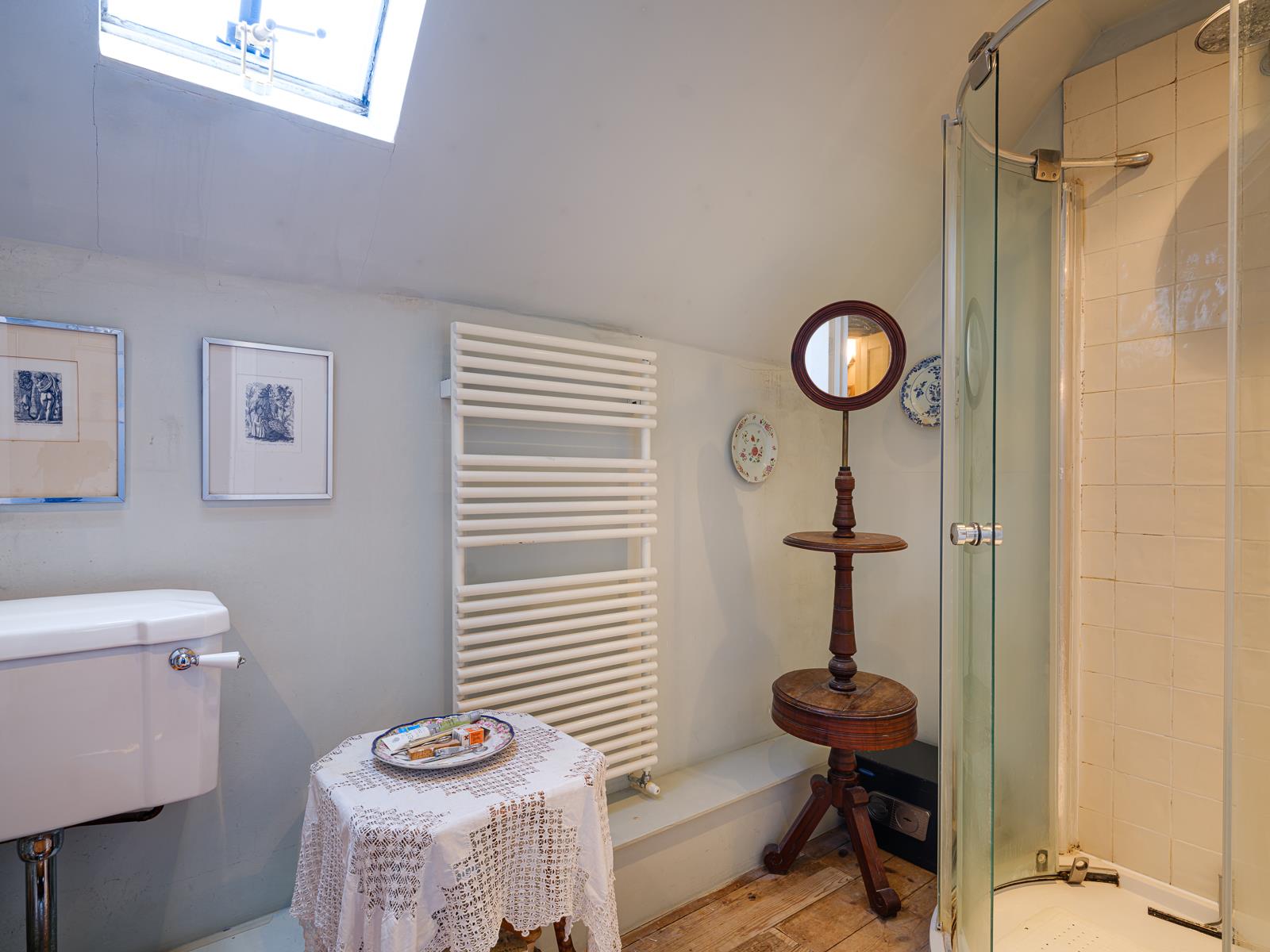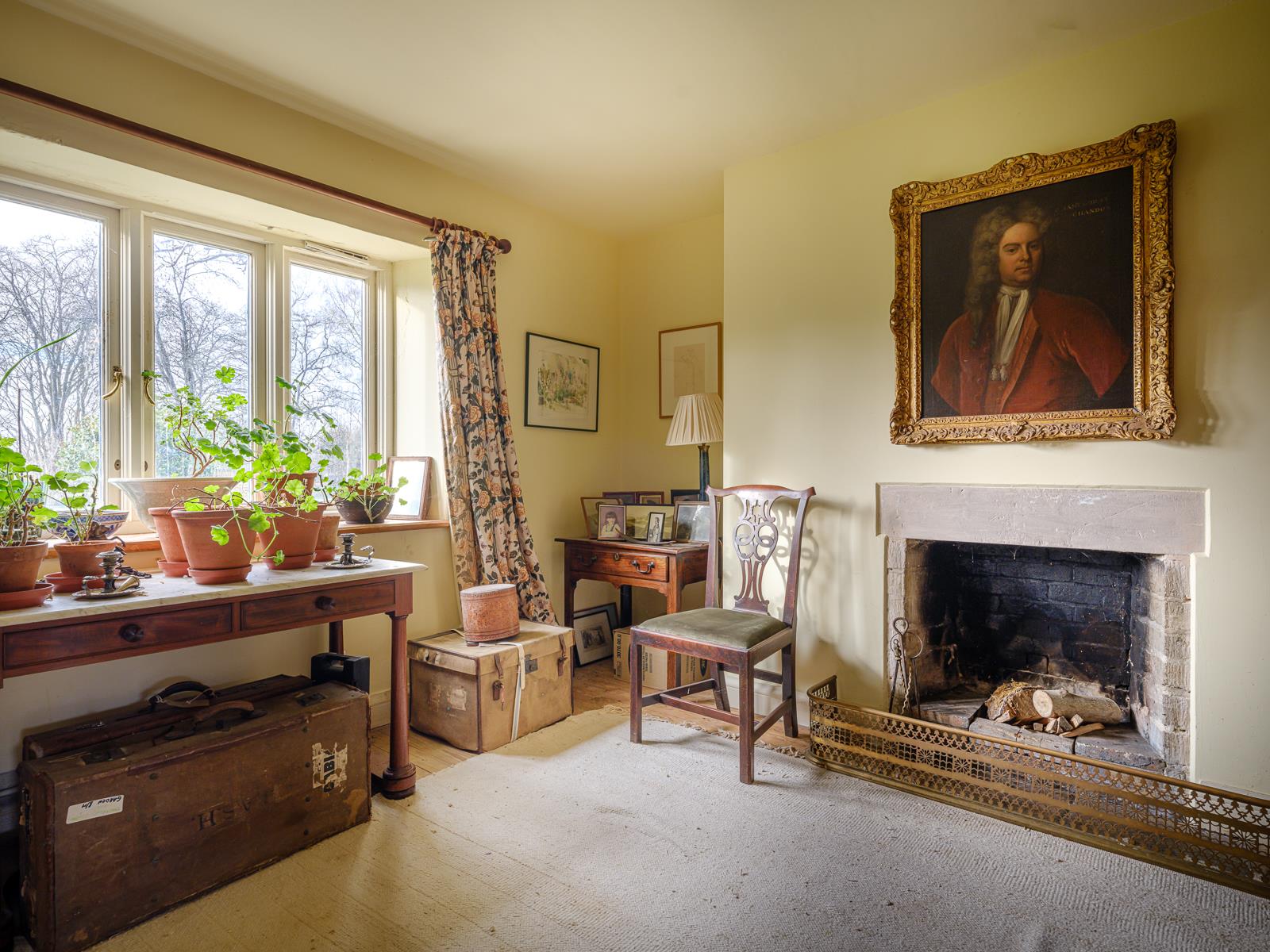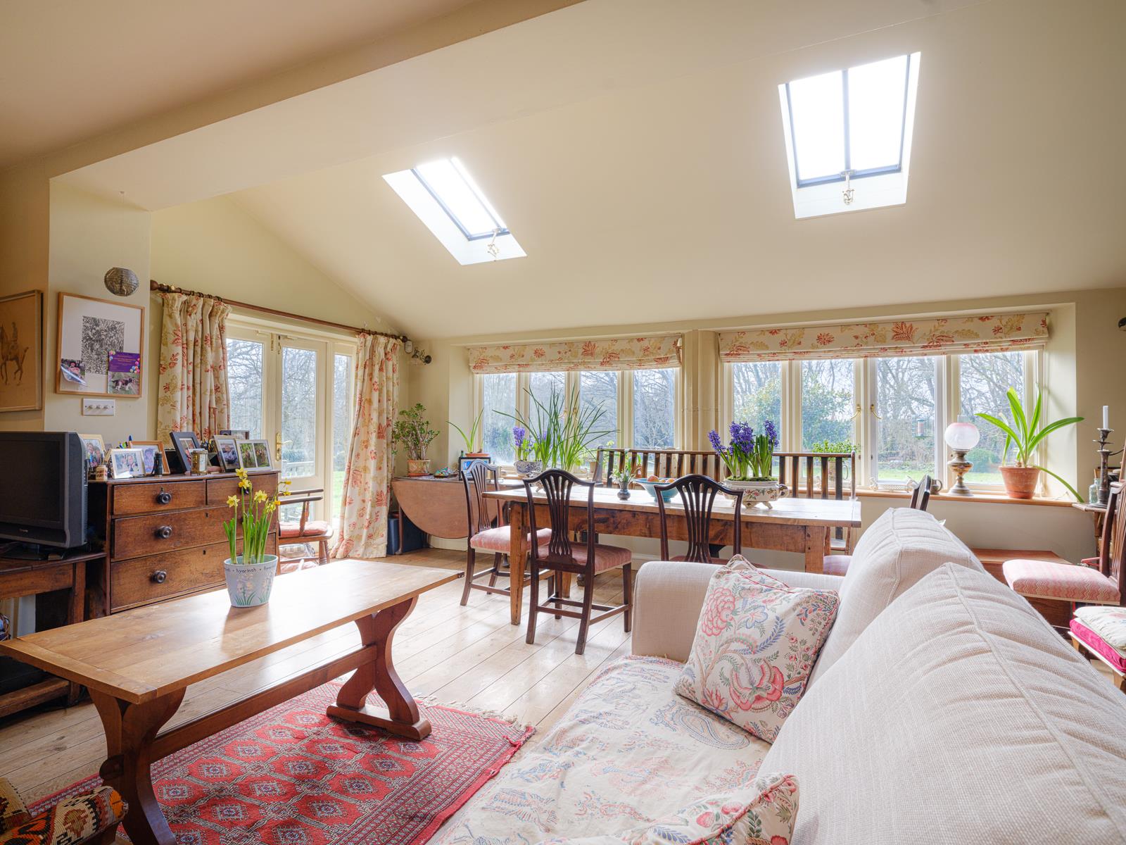 There is a dining room, a study and an inviting sitting room with dual aspects and an open fire giving a real sense of cosiness. The fourth side of the room is taken up by a beautiful walnut, arts and craft bookcase which could be available to purchase under separate negotiation.