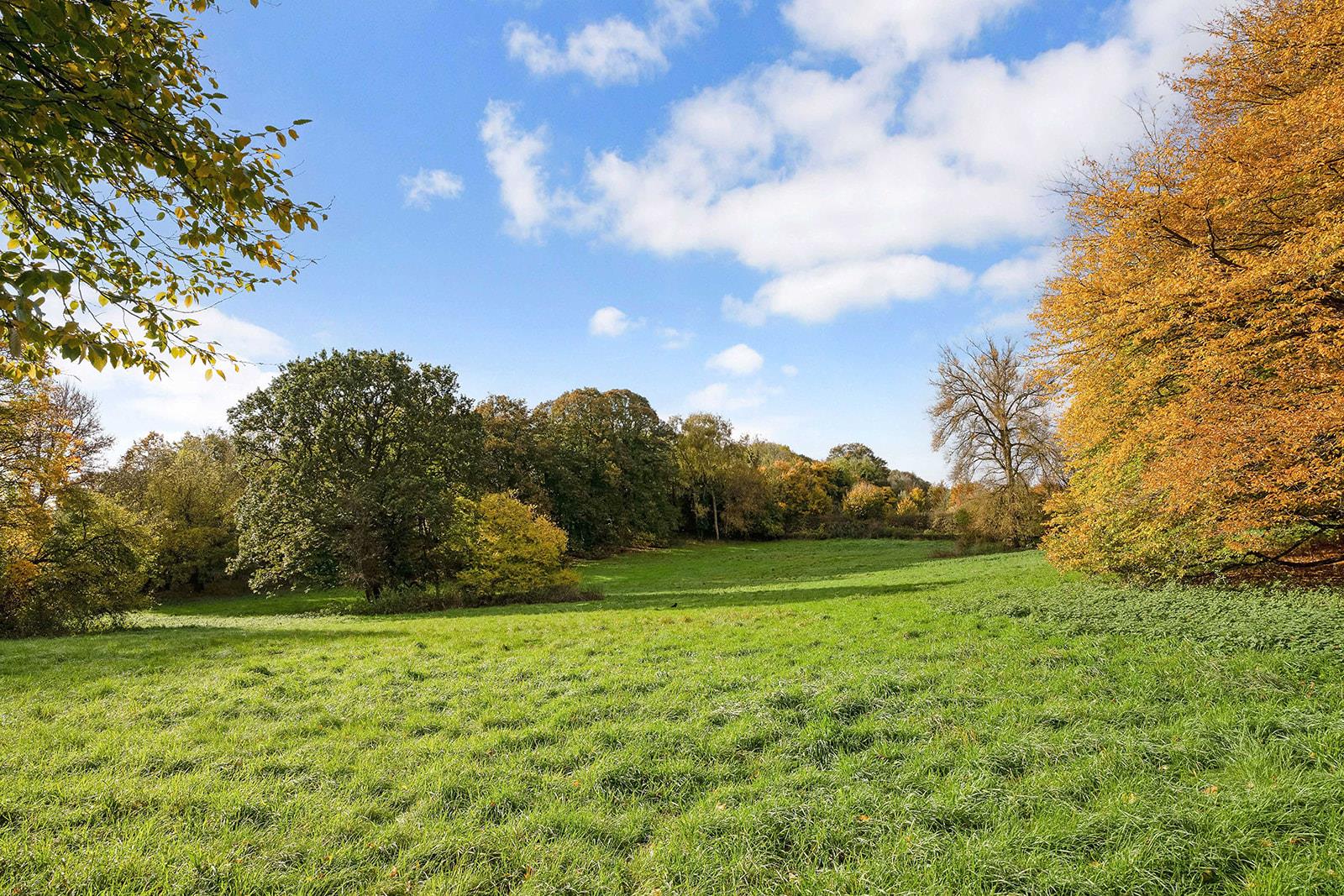 entertaining, with views dropping down over the field. The gardens are positioned to the side and rear of the house and are home to mature trees, bushes, and hedges.