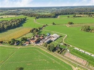 36.77 hectares (90.87 acres) of permanent pasture and arable land. Newly Refurbished Eight-Bedroom Farm House. Range of Traditional Brick and Flint Farm Buildings. Detached Three-Bedroom Cottage. Modern Farm Buildings and Stables.