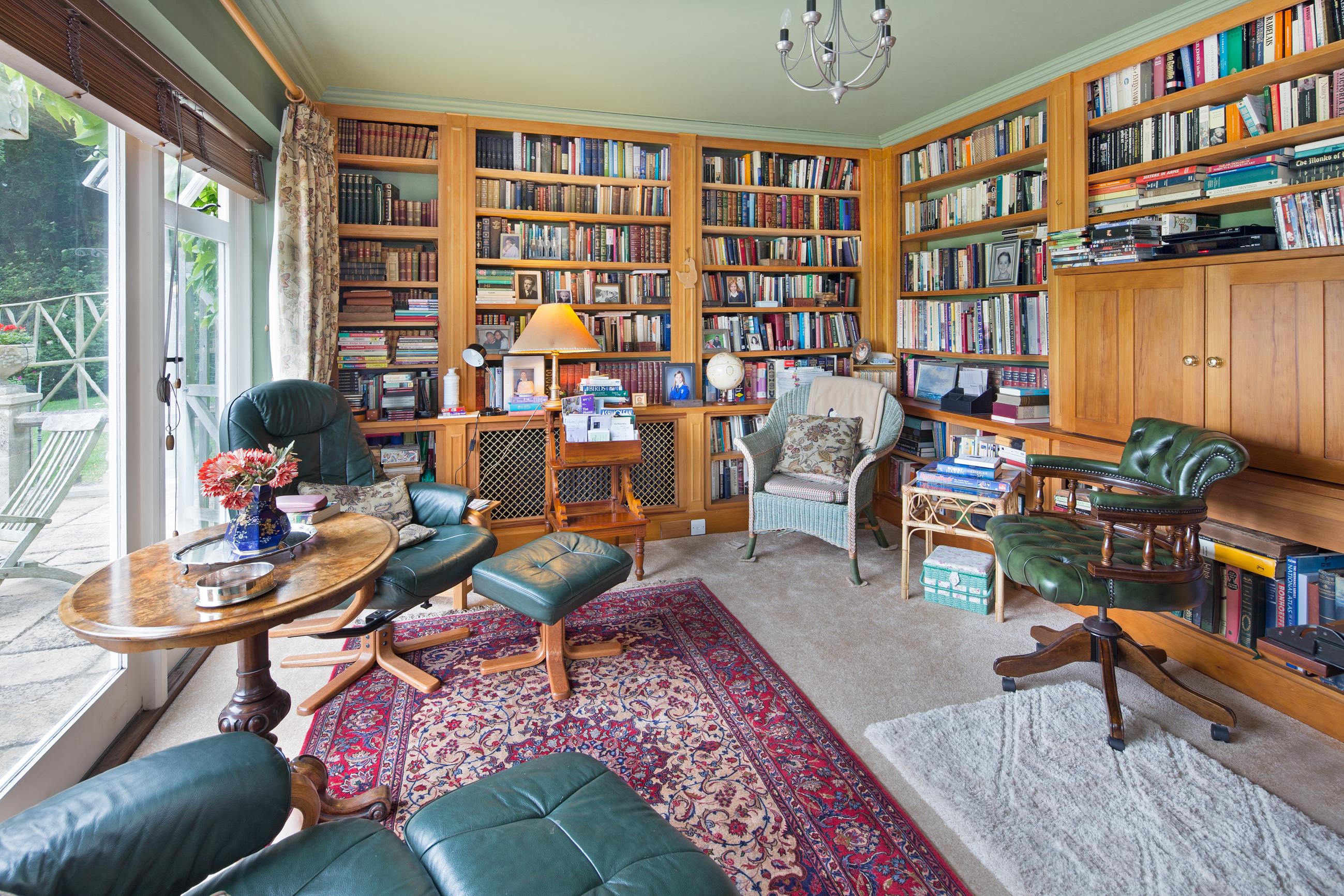 The first floor comprises three well-proportioned bedrooms, all of which have large built-in cupboards. The drawing room is a large and light room with a majestic arch ceiling and French doors leading to a veranda. A small study leads off this room. A formal dining room with French windows onto the terrace leads to the kitchen/breakfast room with French windows onto the terrace, a space for table seating, a range of units, an Aga, a separate gas hob and electric oven. There is a separate utility room with a door leading to the garden. Beyond the kitchen is a library/study with French windows onto the terrace.