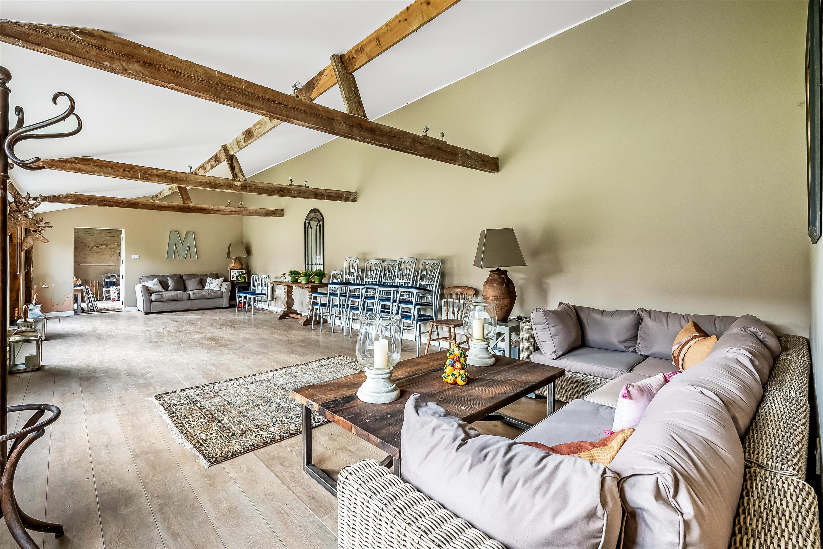 Our clients have extended one of the barns to create a party/games room measuring 14.7m in length and 6m in width, with a cloakroom. Set discreetly behind one of the barns are further agricultural buildings, ideal for additional storage or alternative uses like offices, additional residential units, gym/fitness or indoor pool, STPP.
