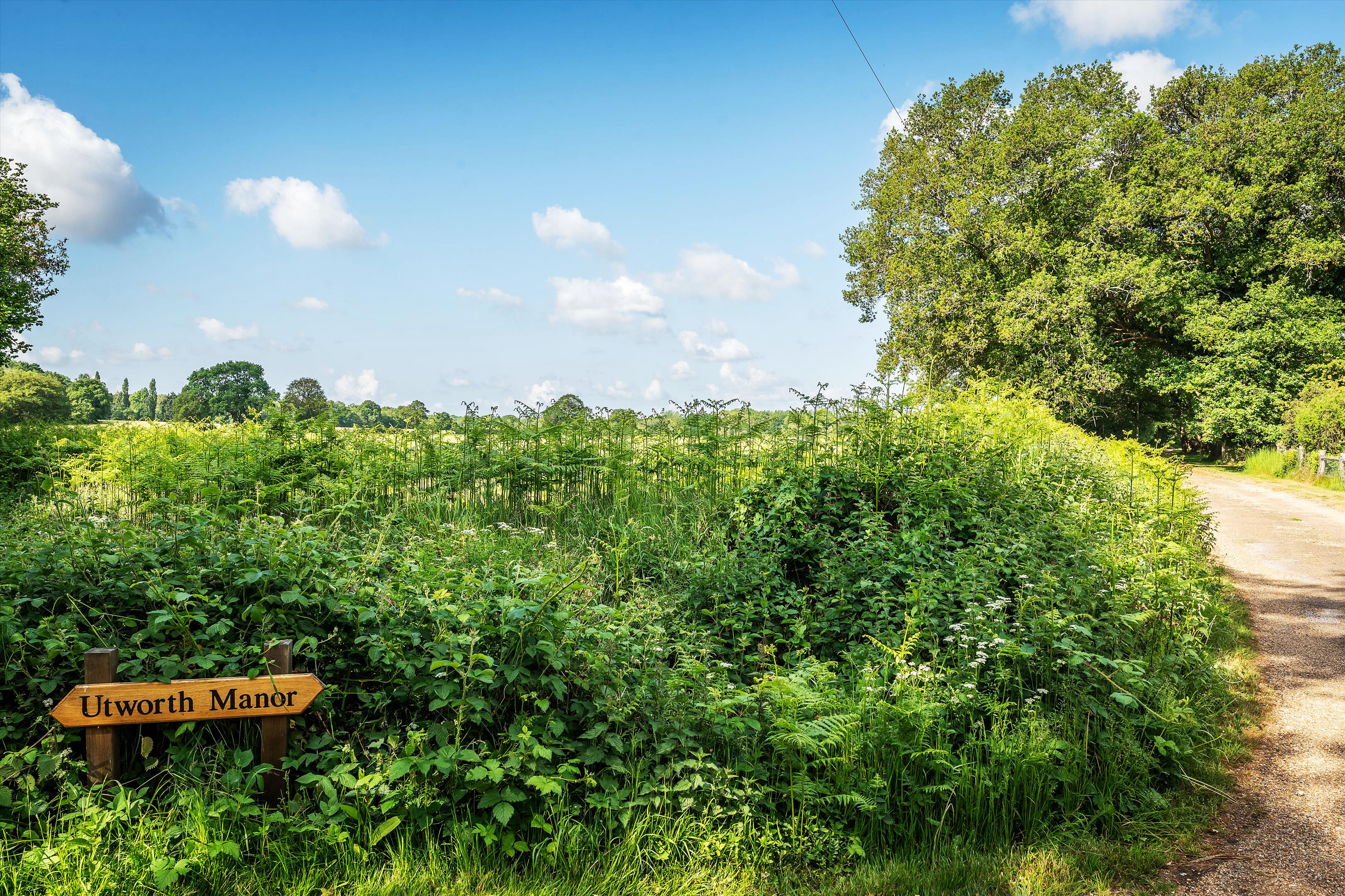 Utworth Manor is accessed via a long, privately owned driveway and is completely hidden from the road. The property enjoys a particularly special setting, surrounded by arable fields that form part of a much larger farming estate.