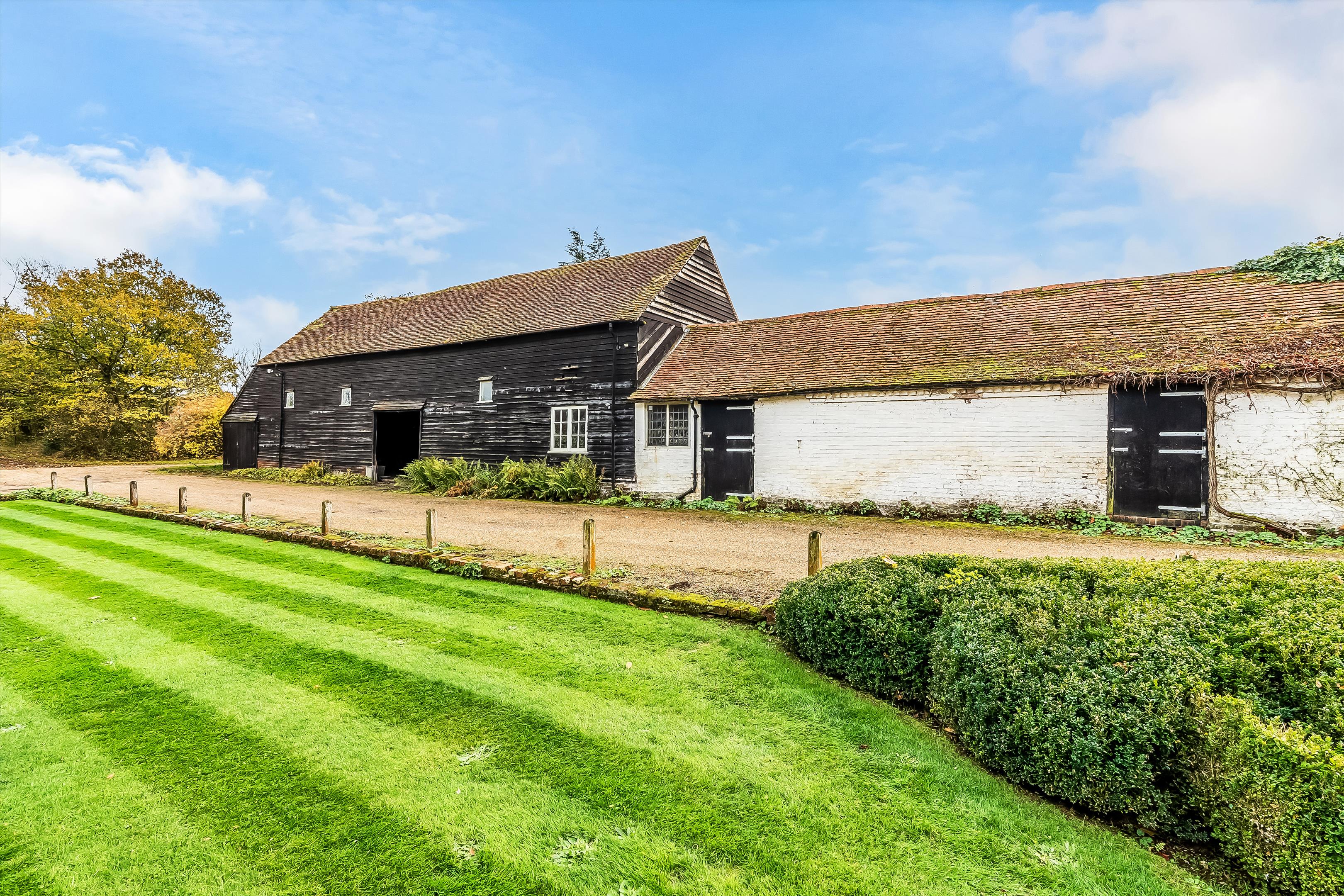 As you approach the property, two attractive barns frame the driveway, bordering the well-manicured front lawn. Both barns are currently unconverted, offering the incoming purchaser an exciting opportunity to convert them into secondary accommodation or a party barn, subject to the usual planning consents.