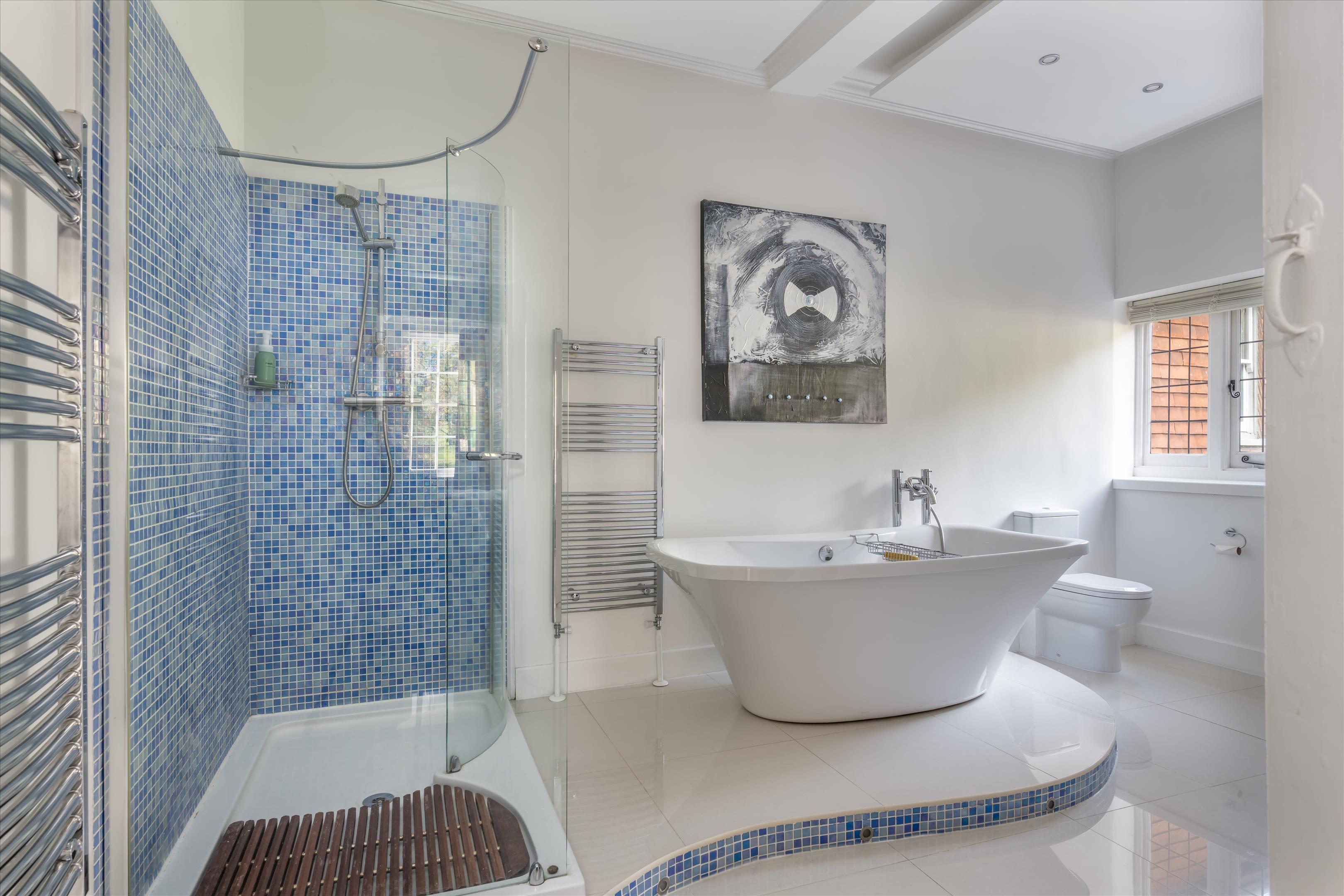 On the first floor the principal suite is spacious, with a dressing room leading to the bedroom and en suite bathroom, all benefitting from the outlook. Two further bedrooms, one with en suite, and a family bathroom are also located on this floor.