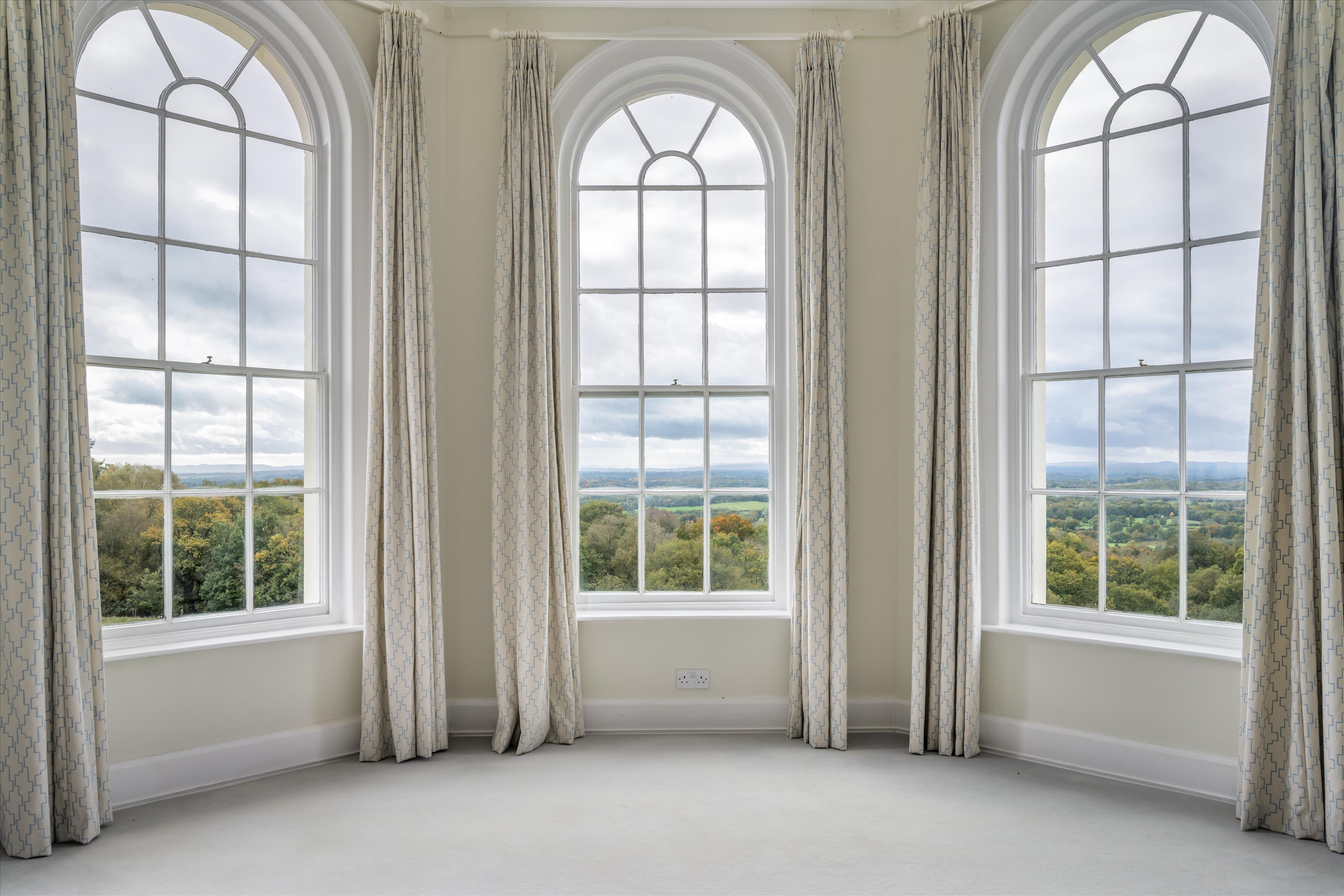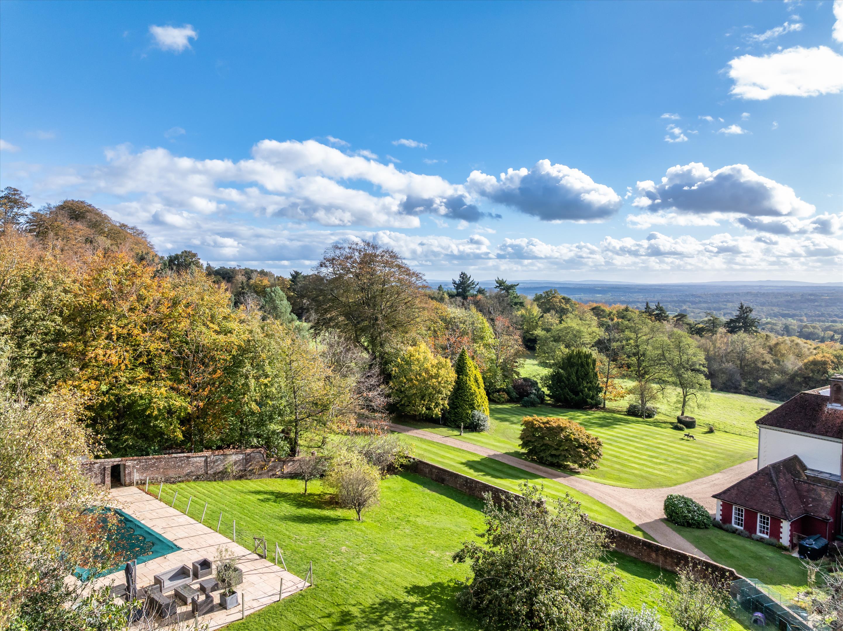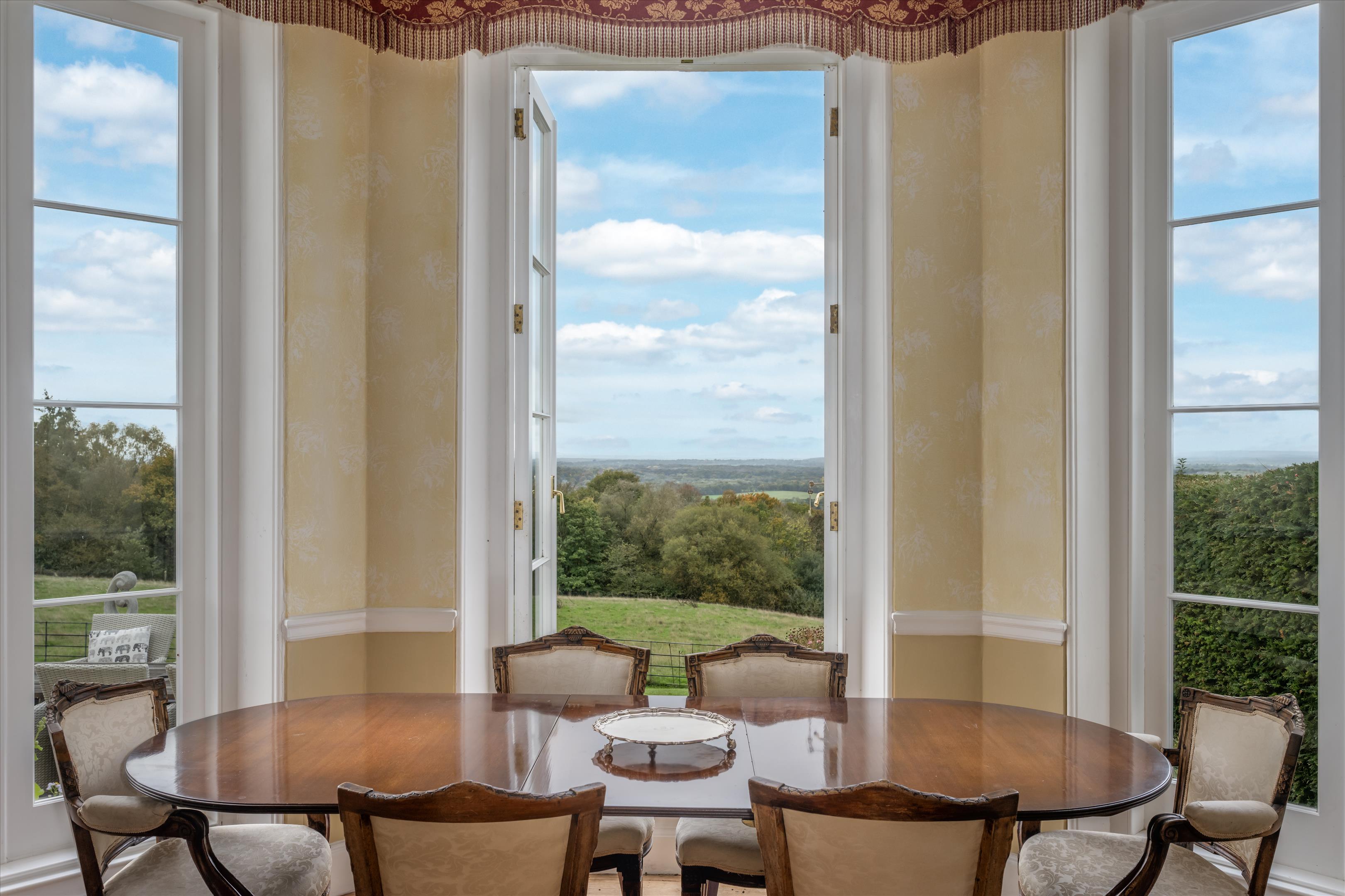 Tanhurst is found close to the top of Leith Hill in one of the finest rural locations in Surrey. It enjoys breathtaking views over South Surrey and Sussex, framed by the distant South Downs and Blackdown. Tanhurst occupies a privileged position to the south west of the highly desirable village of Holmbury St Mary, set within the very heart of the Surrey Hills, an Area of Outstanding Natural Beauty. The property is surrounded by rolling countryside, expansive vistas, and quintessential villages, creating a truly idyllic setting that combines the finest aspects of rural living with convenient access to London. Holmbury St Mary itself offers a vibrant and welcoming community, complemented by two popular public houses, a picturesque village green, an attractive parish church, and a respected cricket club.