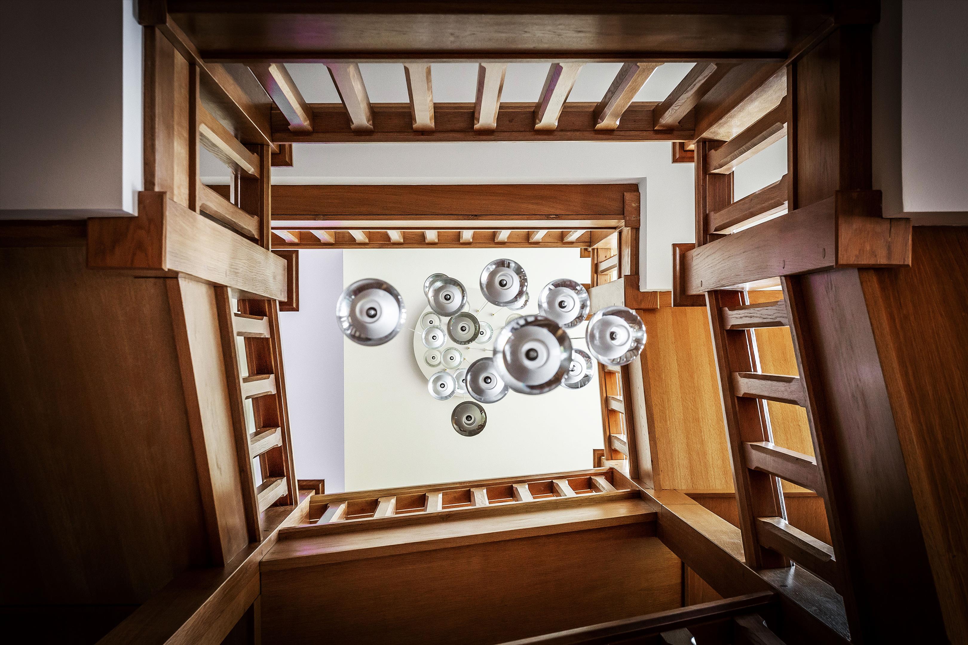 Ascending to the top floor, you'll discover the principal bedroom, which currently occupies this level. This room has been strategically placed to maximize the awe-inspiring vistas, with a large floor-to-ceiling window offering unparalleled views of the surrounding landscape. This private retreat provides a peaceful sanctuary where you can unwind and revel in the beauty of your surroundings.