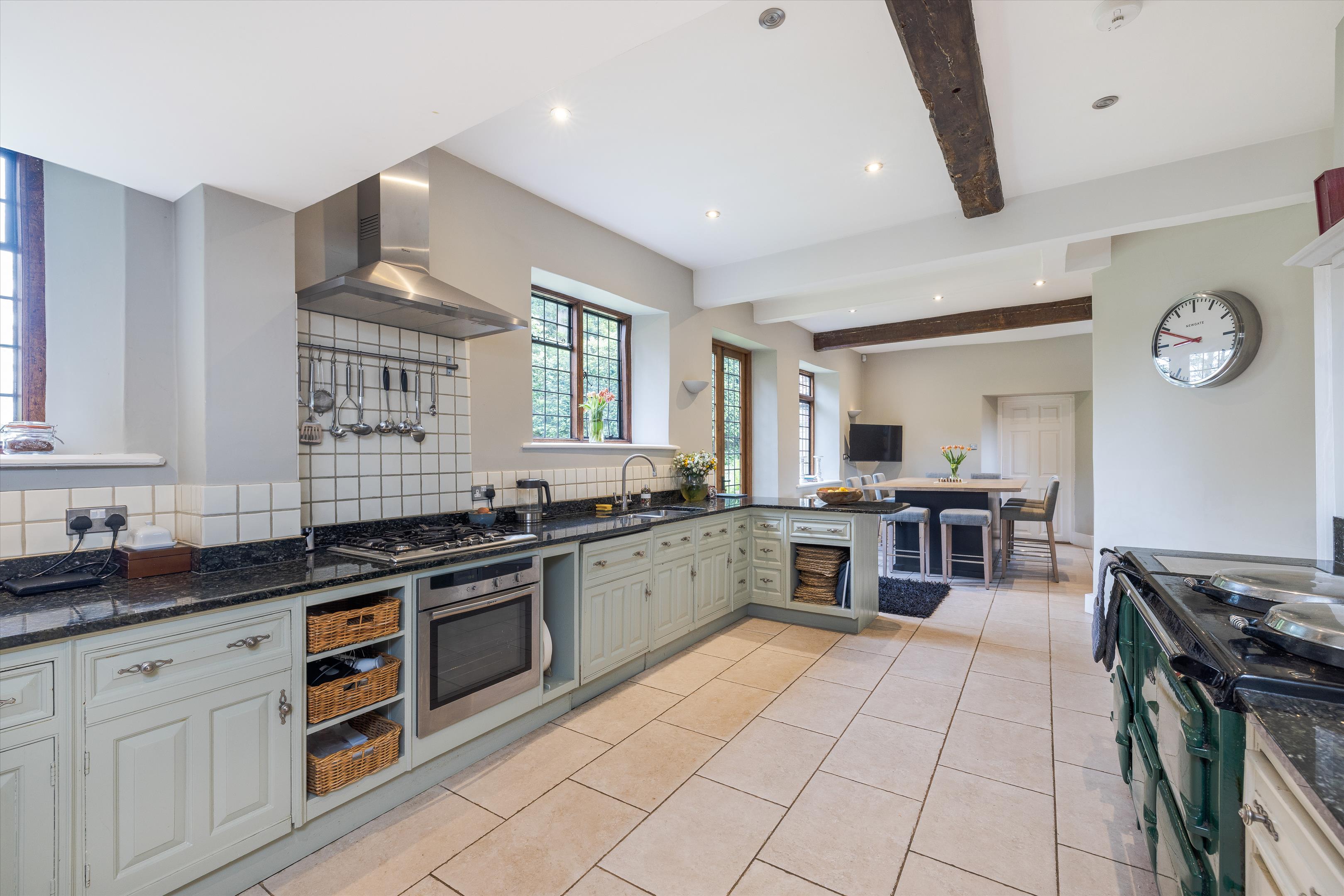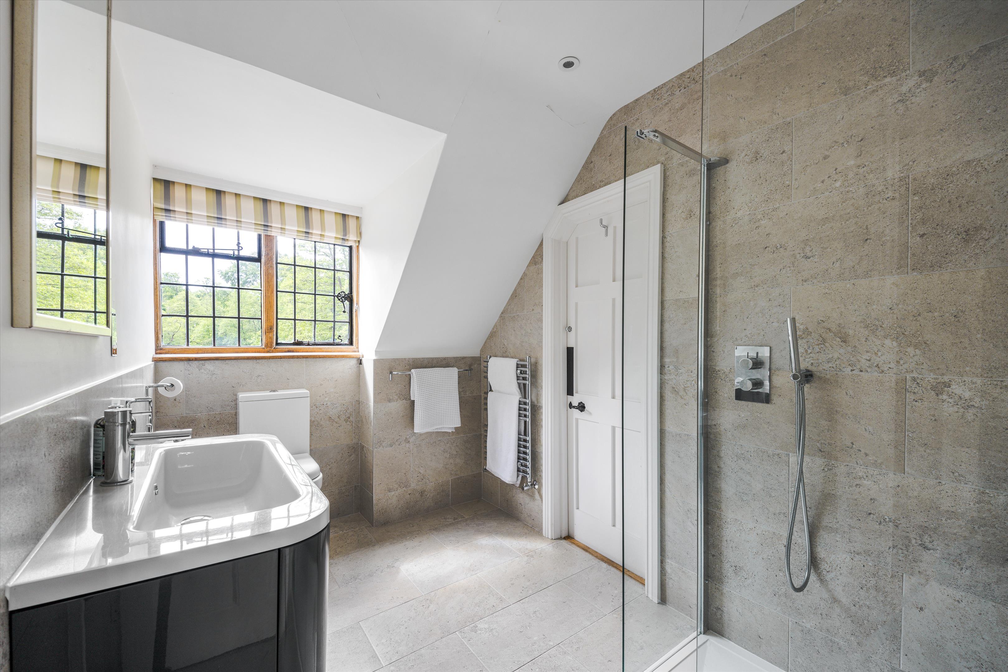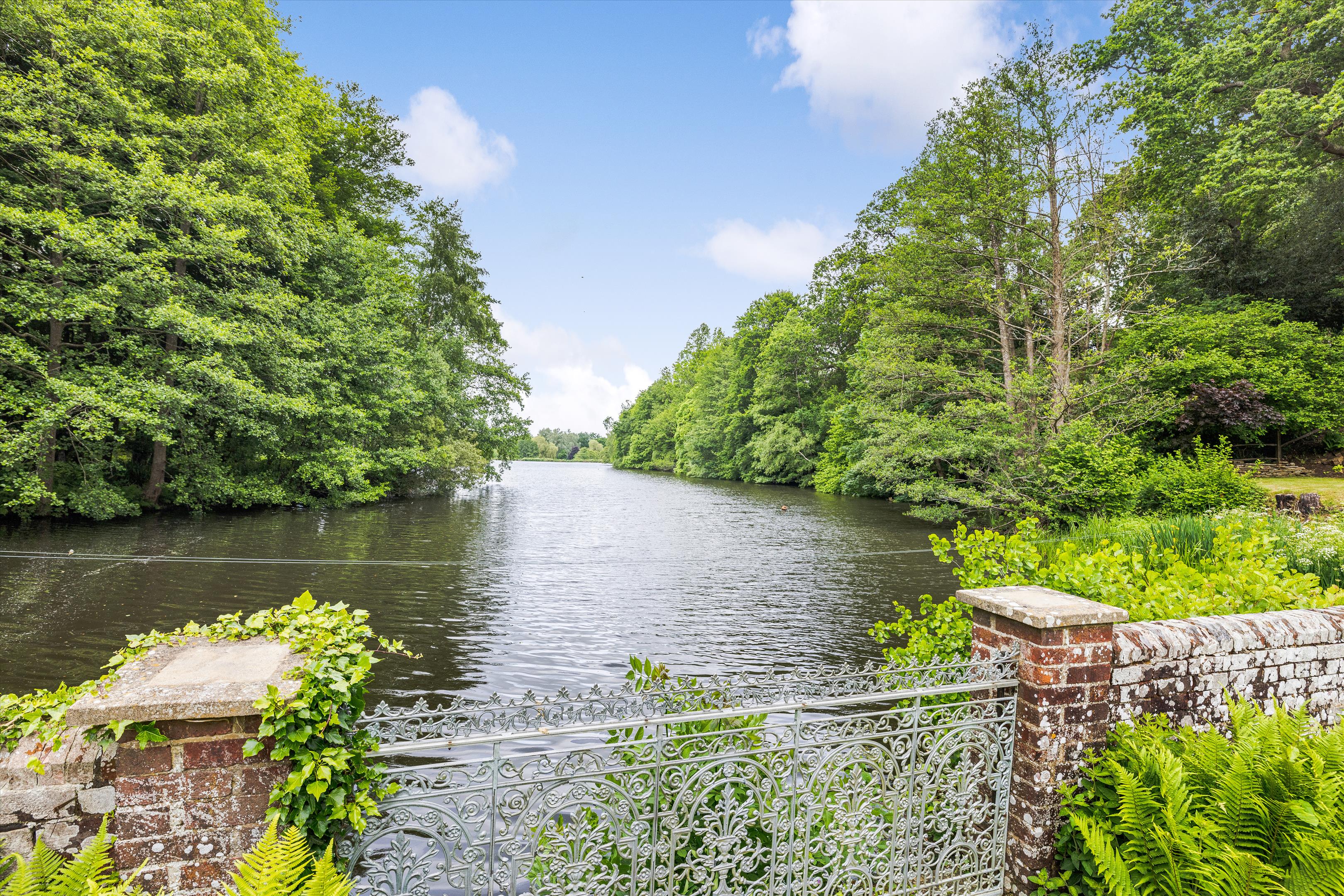 The drawing room is a substantial entertaining room adjoined by the impressive part-panelled dining room, both of which overlook the lake. In addition, there is a substantial kitchen/breakfast room with an Aga and a high ceiling. The playroom/ office which has an adjoining kitchenette and shower room, offers great potential as a separate annexe area.