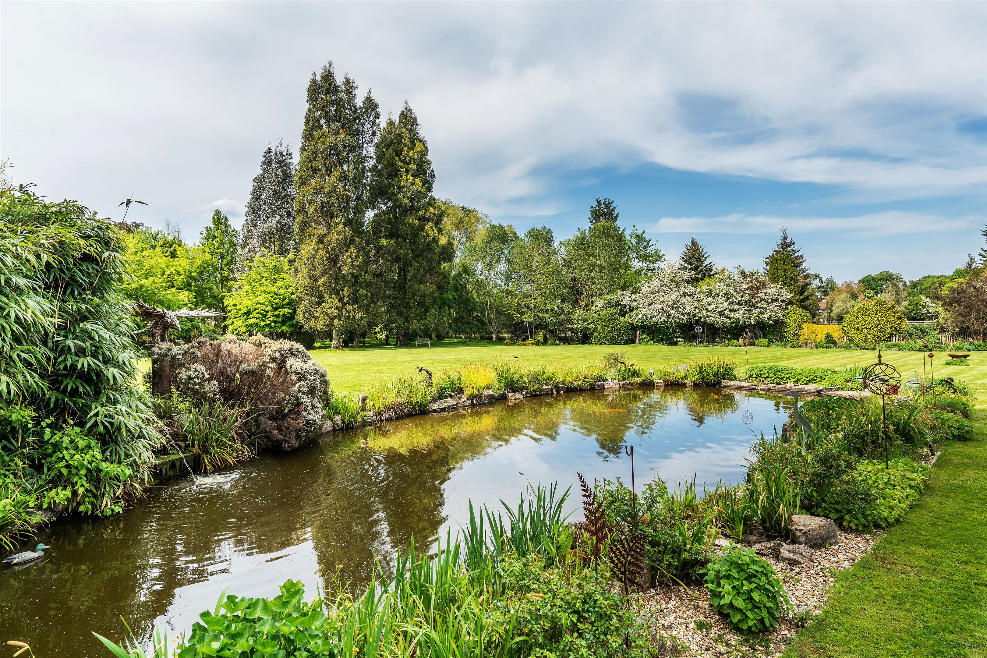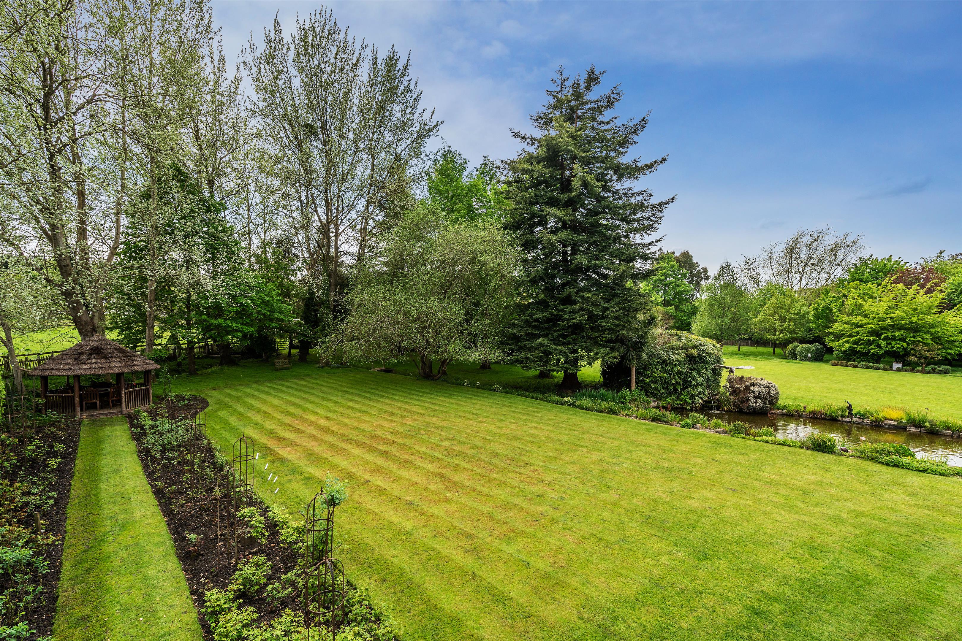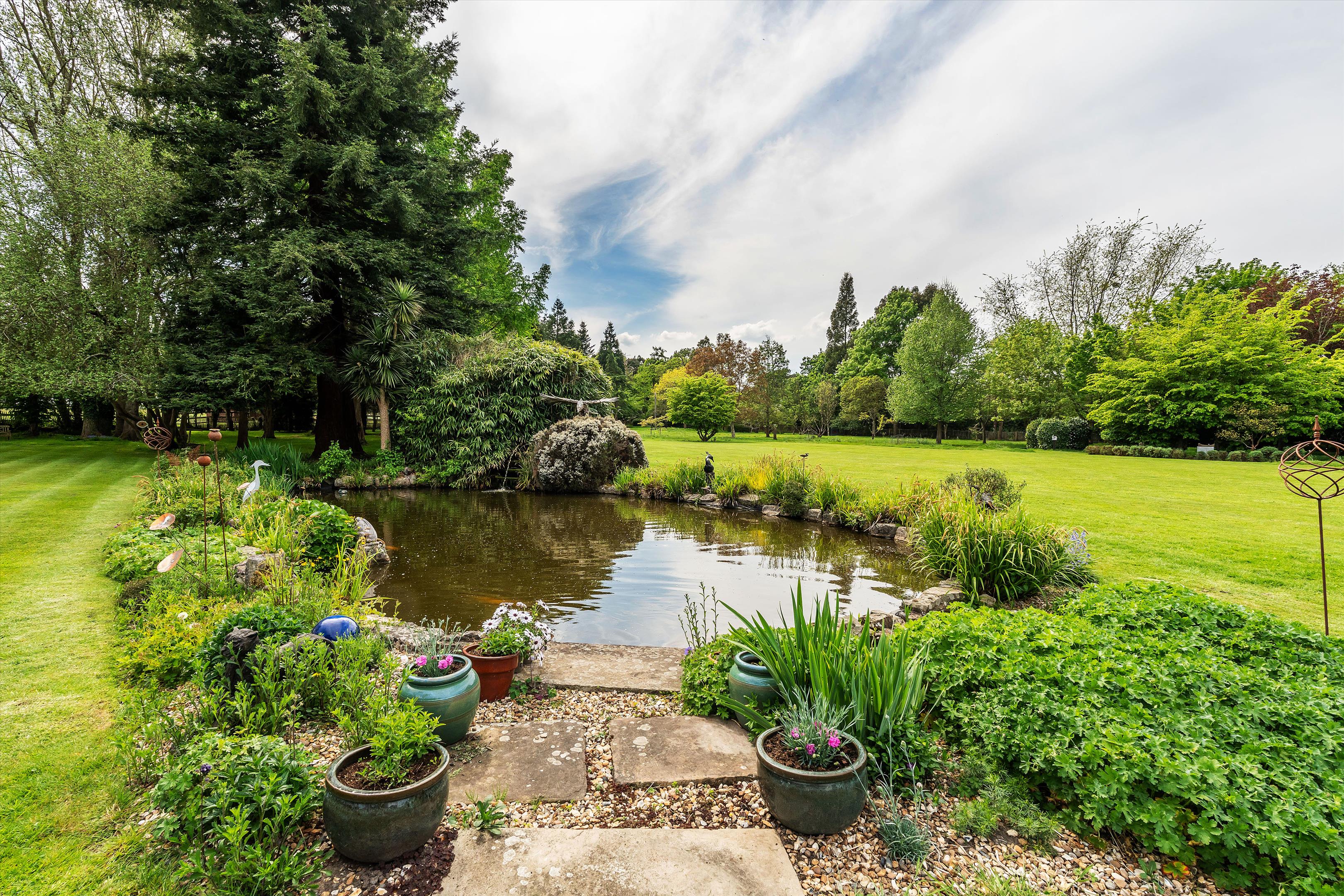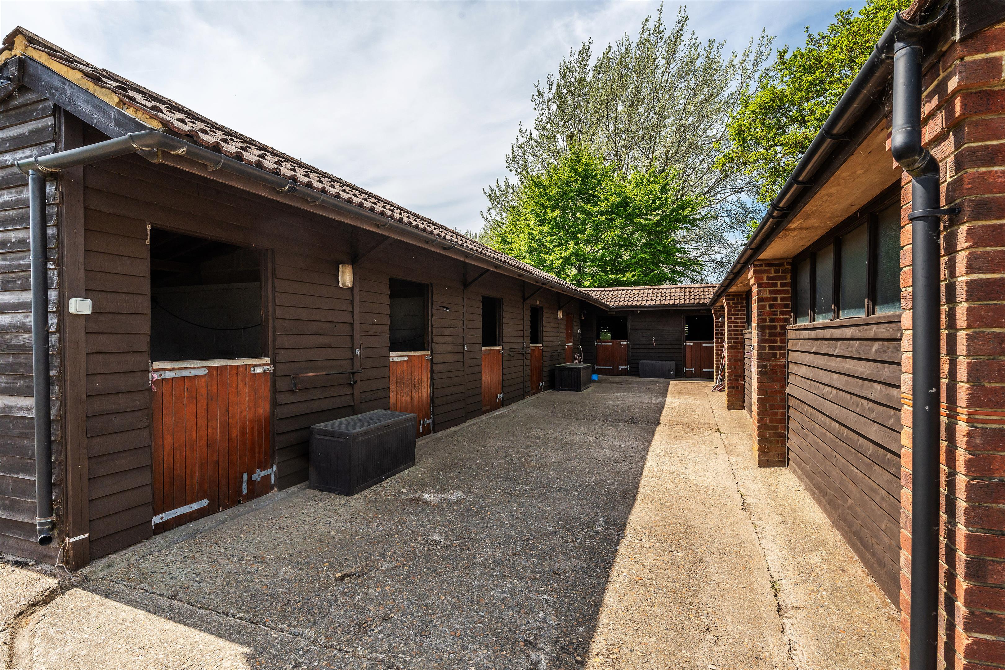 The house is approached from Blanchards Hill through electric wooden gates down a very long, tree lined carriage drive, passing open paddocks and culminating in a turning circle with large parking area in front of the house and annexe.