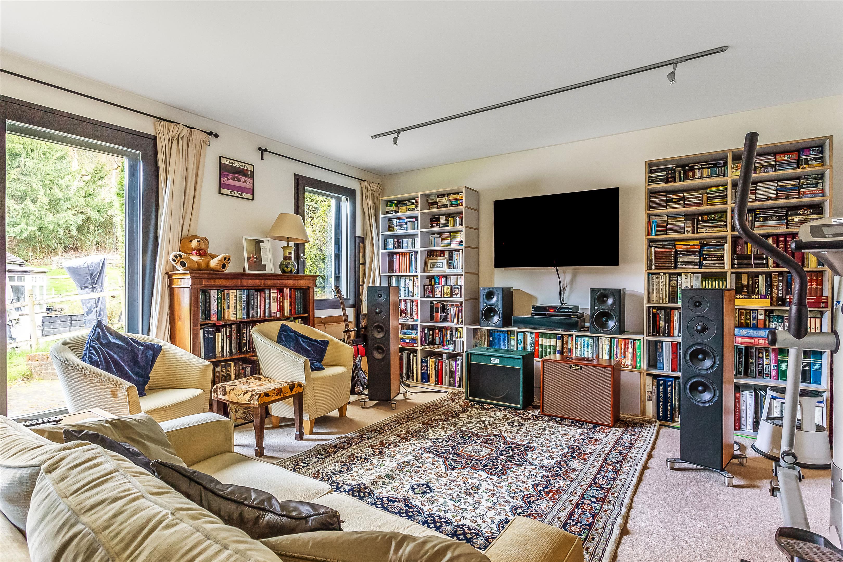 The ground floor offers three well-proportioned bedrooms, all with en suites, including a guest suite, as well as a study. The first floor comprises two further bedrooms, including a luxurious principal bedroom with a dressing room and en-suite. On the lower ground floor, a sound-proofed studio and a separate study open onto the lower garden - ideal for creative work or quiet retreat.