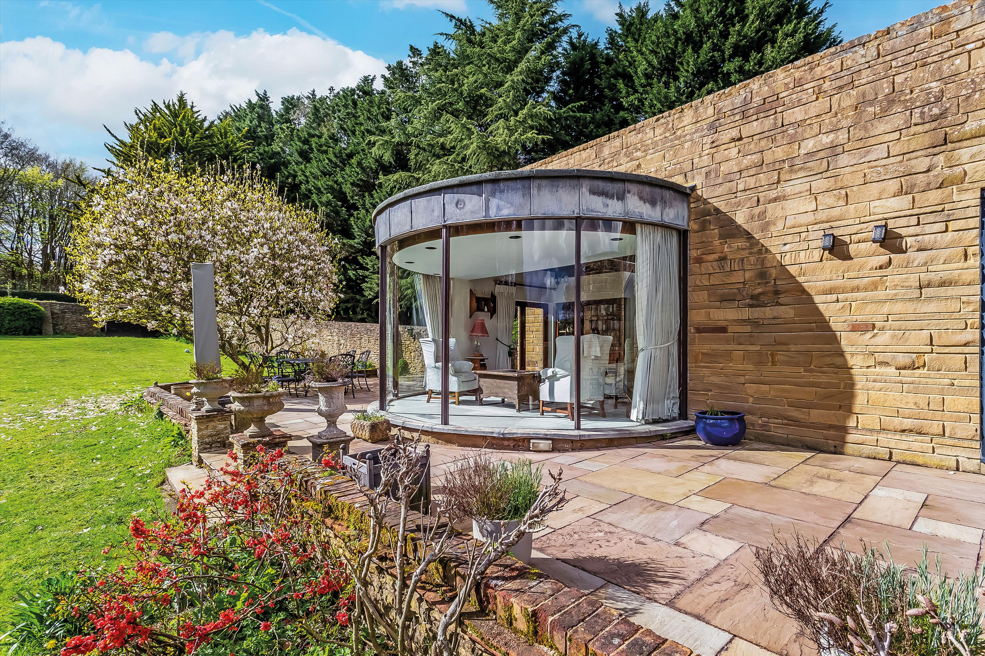 The main house is arranged over three floors, centred around a grand galleried dining hall and a very spacious drawing room, perfect for both entertaining and everyday living. A generous kitchen/breakfast room, a large utility, and internal access to the double garage provides practicality alongside style.