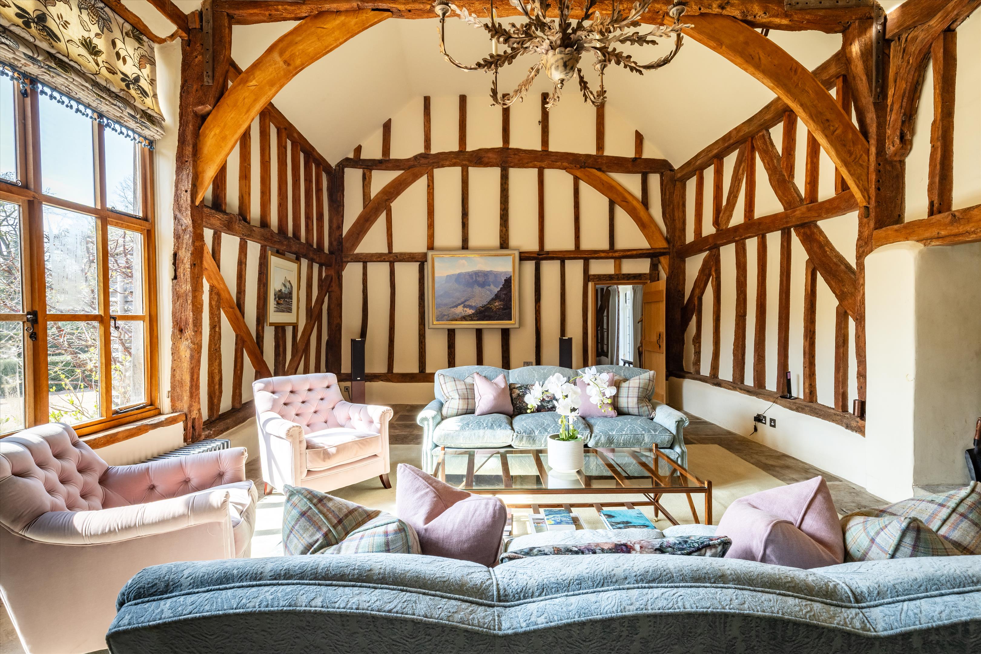 The fine traditional barn along the northern elevation has very old features typical of the medieval period, including coupled rafters and a hipped roof. It has now been incorporated into the house to provide a superb double height drawing room.