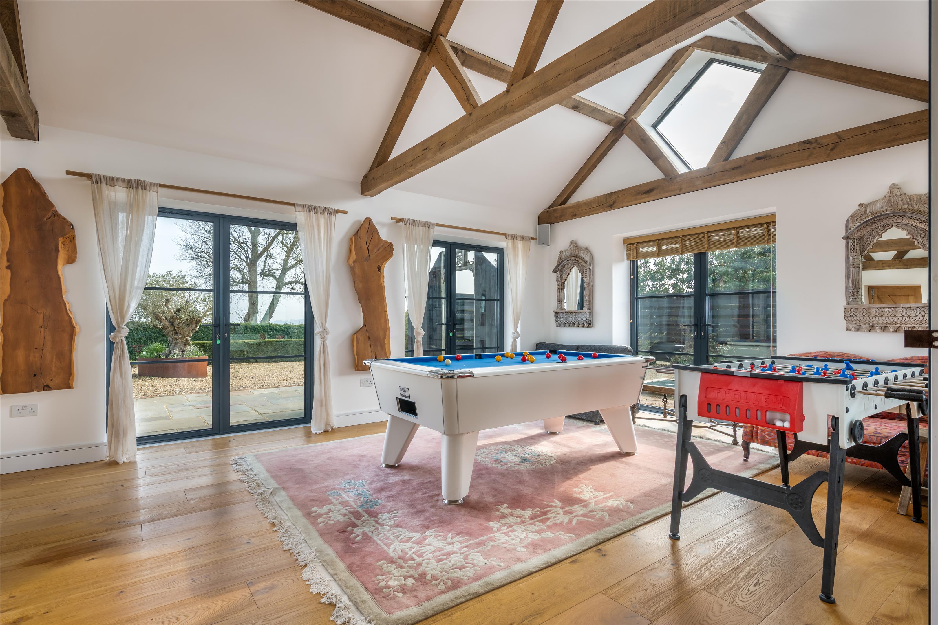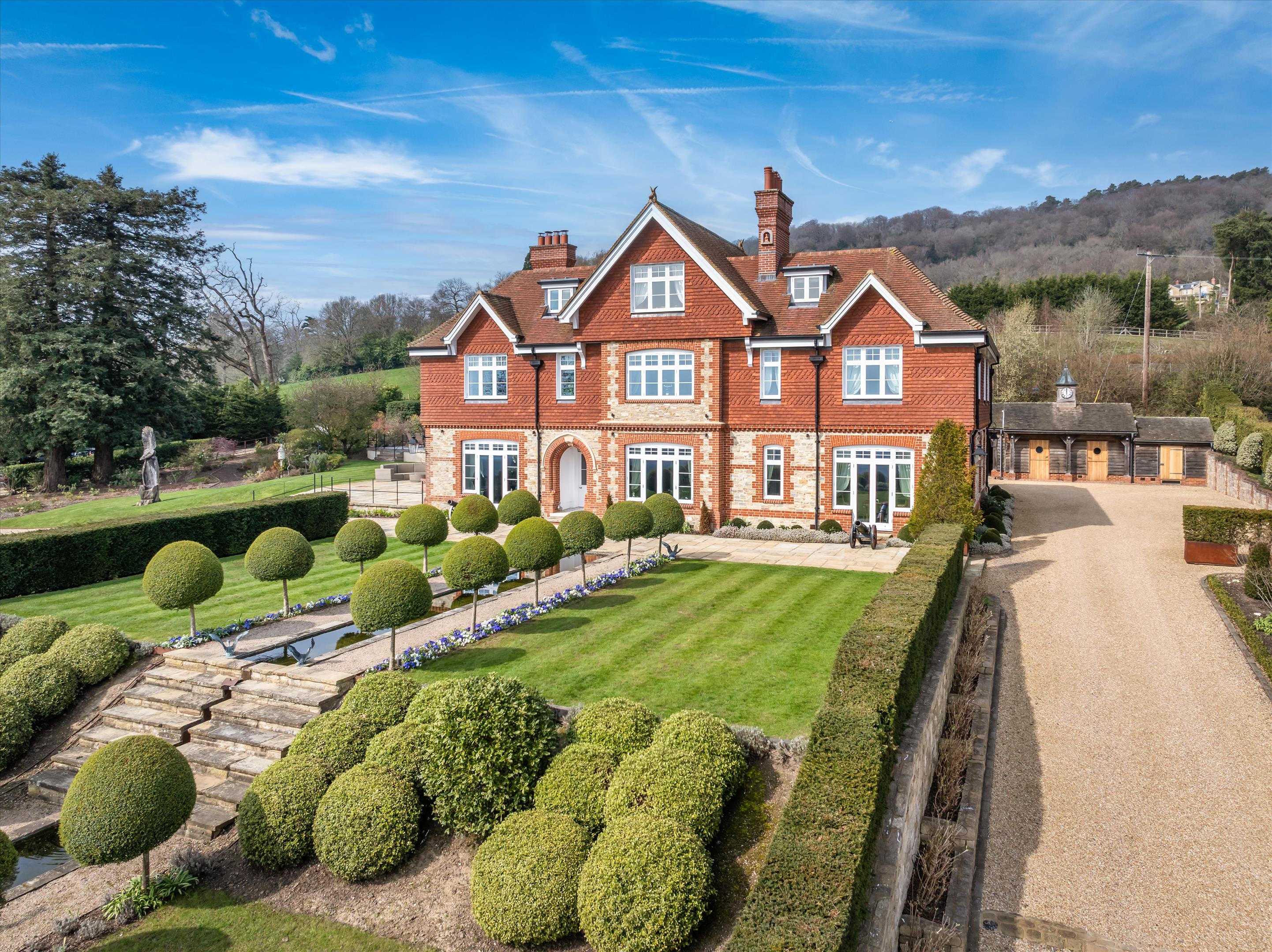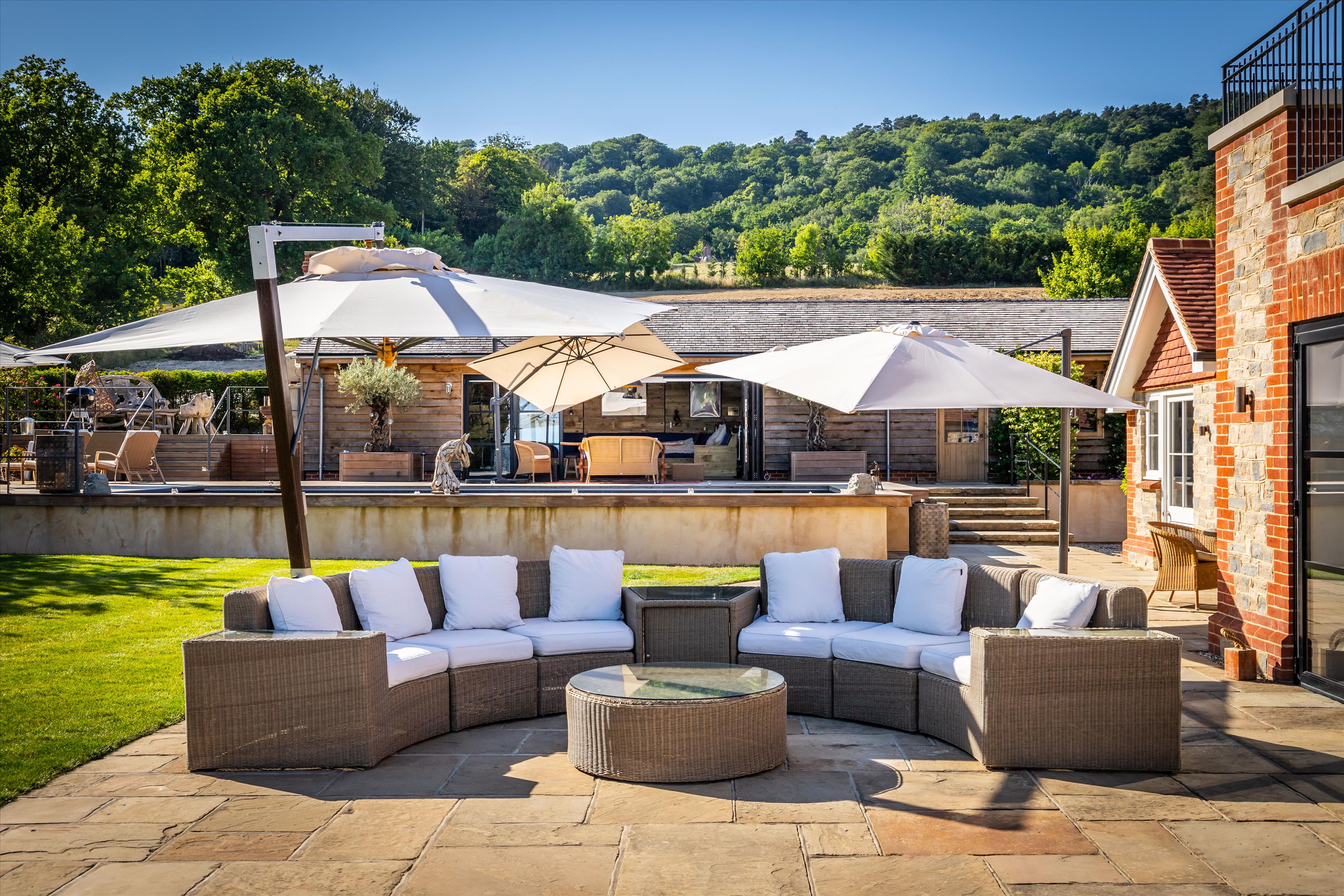 The property has a number of substantial outbuildings to the west of the house, one of which 'The Annexe' has been converted to a two-bedroom self-contained annexe, ideal for staff and guest accommodation. Other outbuildings include two garages, a workshop, a large storage room, a further large barn and storage space, a gym & yoga/dance studio and a large home office. Overlooking the pool is a wonderful pool house with kitchen area, home cinema and outdoor dining terrace.