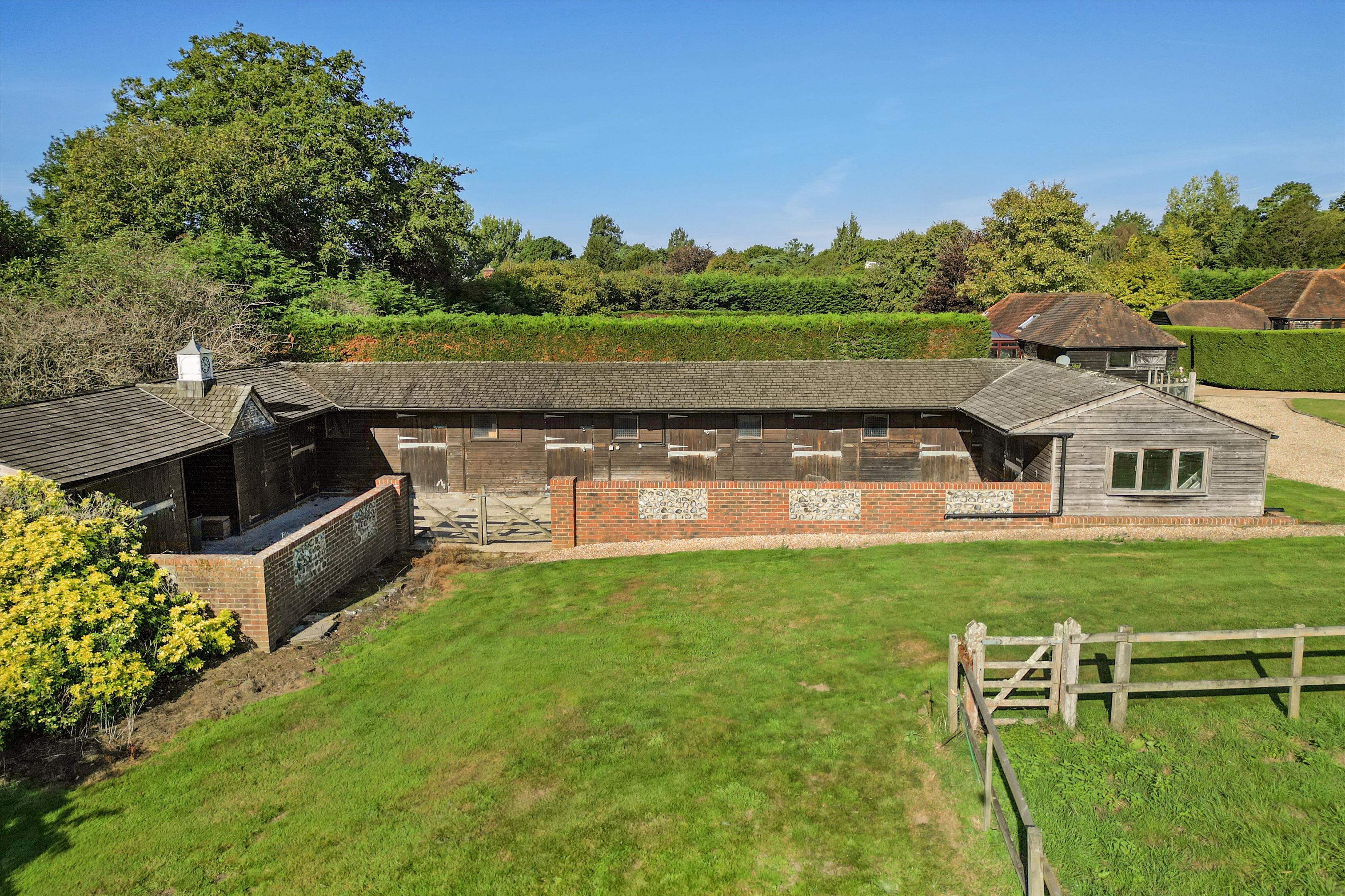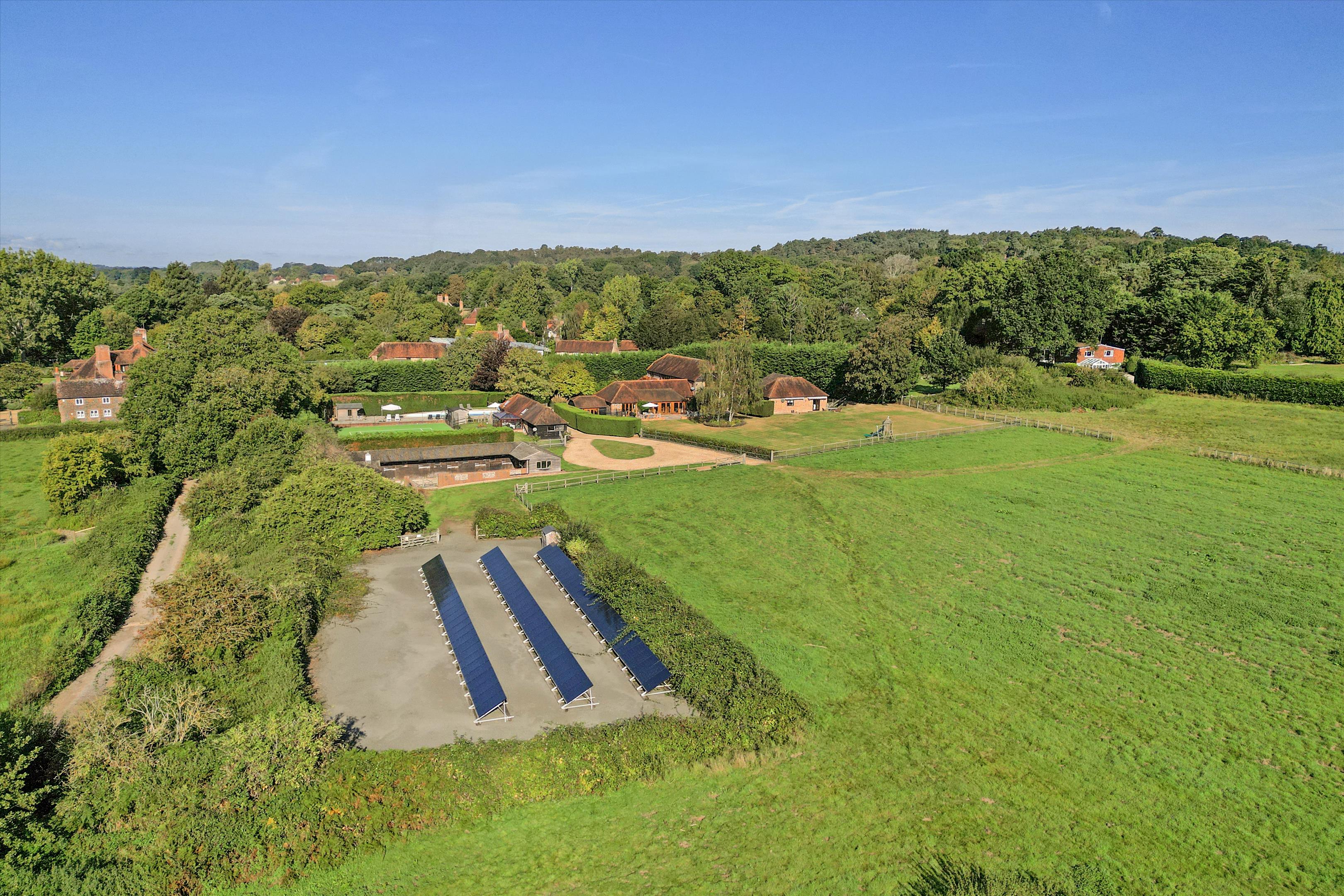 The property is entered directly from Lower Street via electric gates whereupon the drive splits, either winding up to the house with plentiful parking outside the main house, or eastwards up to the equestrian facilities. The grounds are teaming with interest, from the wonderfully flat lawns, mature borders and hedging with wisteria on the south side of the house, to the paddocks, an astro-turf tennis court, swimming pool, numerous sun terraces, extensive vegetable garden with fruit, and plentiful outbuildings make Street Farm in all an outstanding family home.
