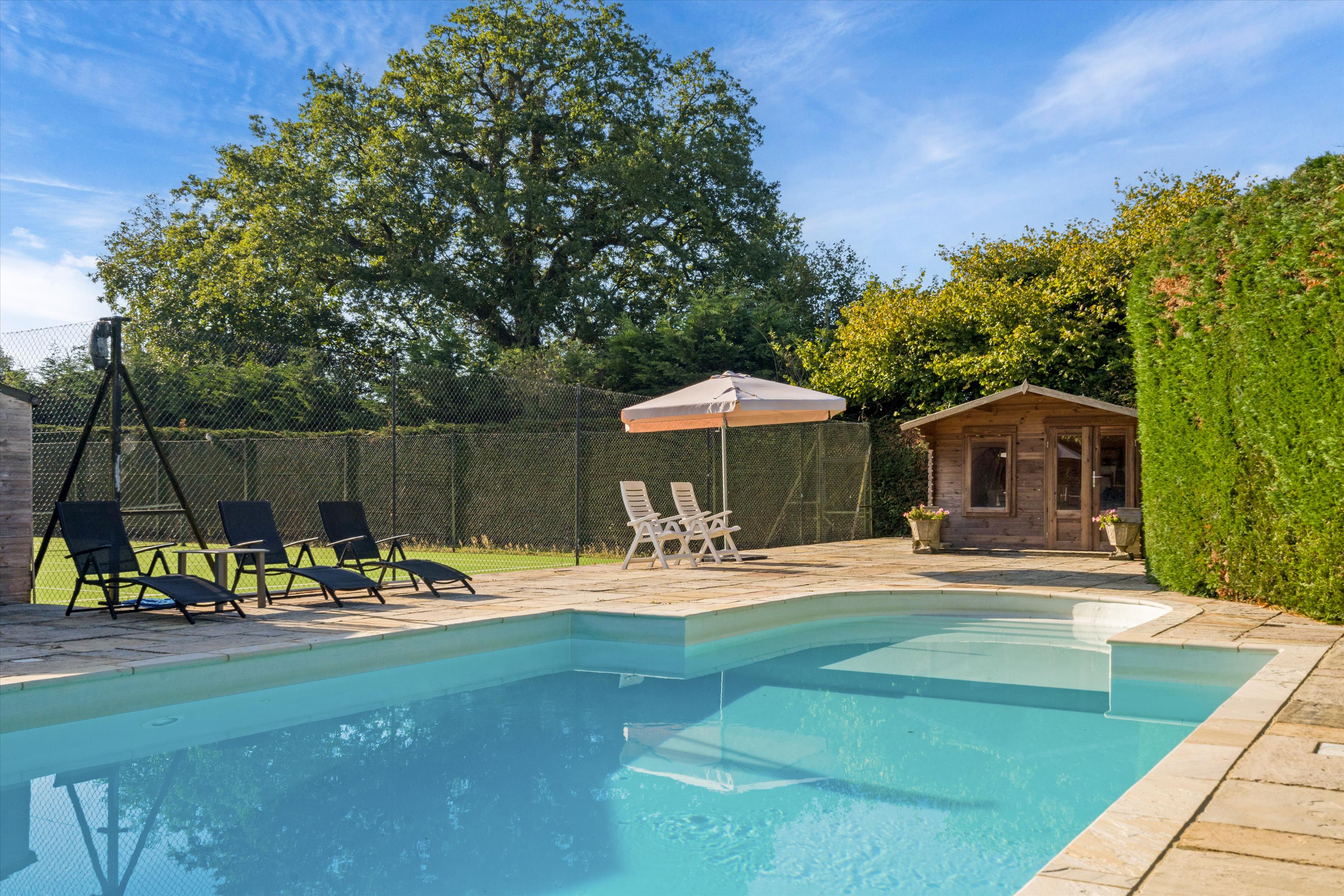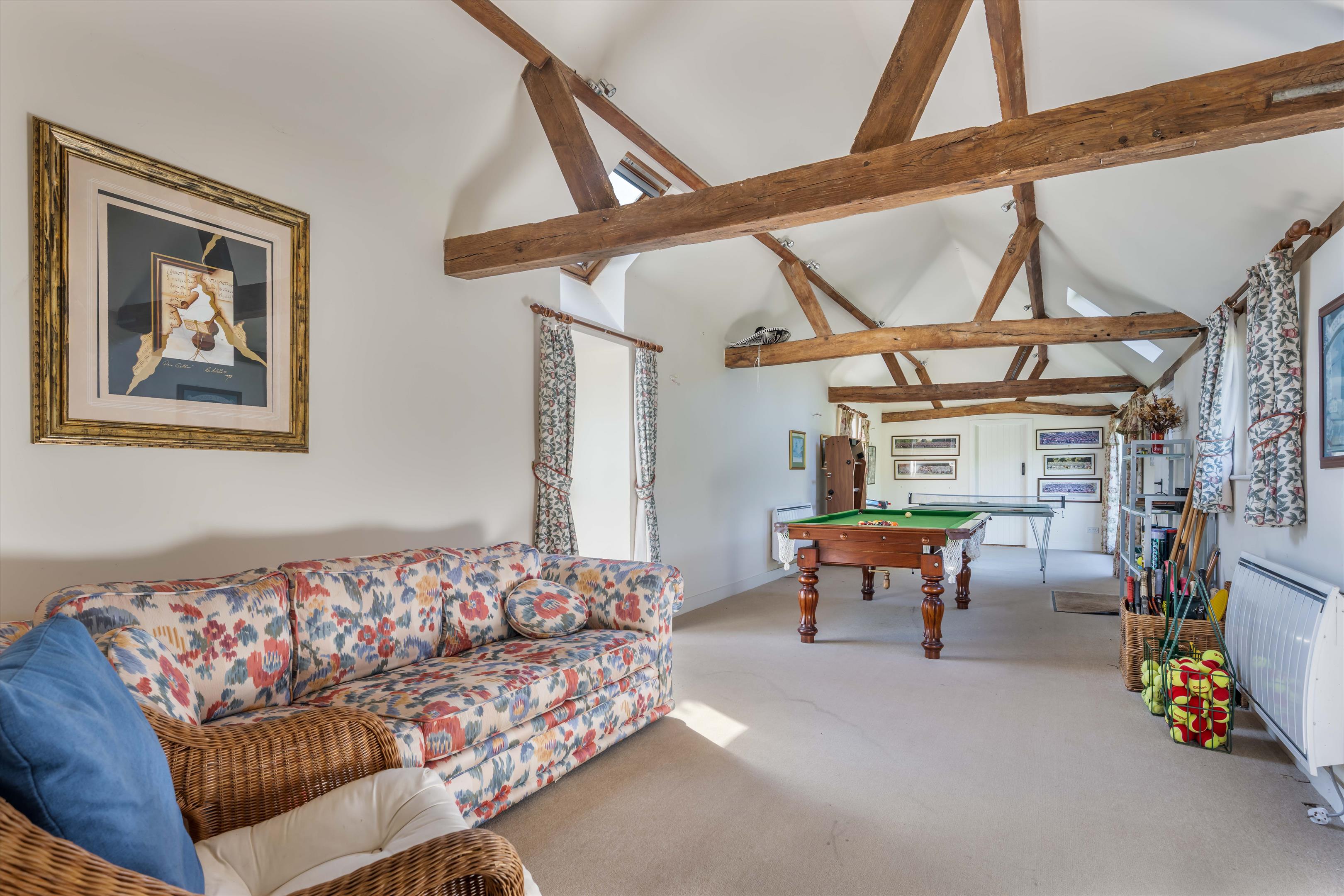 The property benefits from a significant number of outbuildings, which include The Coach House, with two bedroom suites, a reception room (and a rear terrace with the gardens beyond directly accessible), and kitchen, together with adjoining stores and a garage. Further is The Cottage, with gym, games room, shower and utility; this building is a well-located amenity in being adjacent to the tennis court and swimming pool areas. There is also a large stable block as described and an office just off the sitting room in the main house.