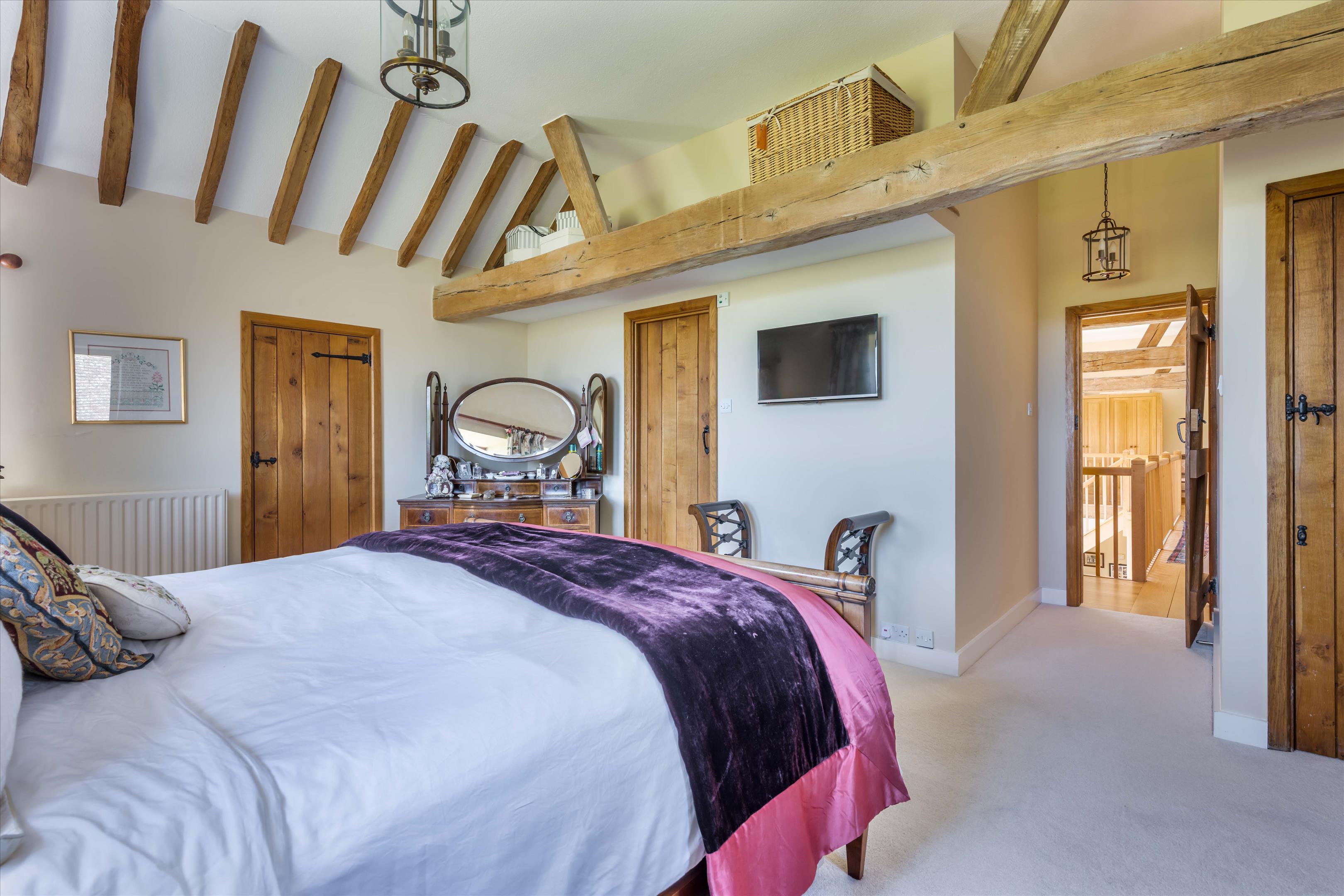 Across the principal house there are five bedrooms in all, the majority of which are well-proportioned and include plentiful storage space. The principal bedroom is a light and bright room above the gallery of the barn, and benefits from a walk-in wardrobe and separate WC from its bathroom en suite. Of note, Street Farm is well-equipped functionally for a family, providing an abundance of storage space and versatile accommodation.