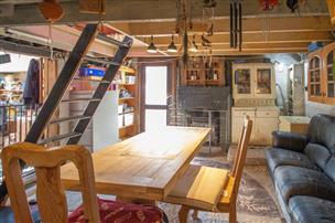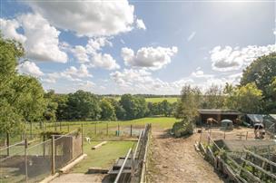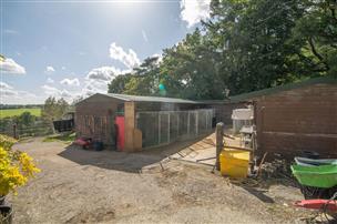 room, kitchen/dining room to the rear and bathroom, with a ladder from the sitting room up to a mezzanine level used as a bedroom. Opposite the dwelling is an attractive stable yard with hard standing currently used as kennels but comprising of ten stables with an attached pole barn and shed to the south. At the end of
