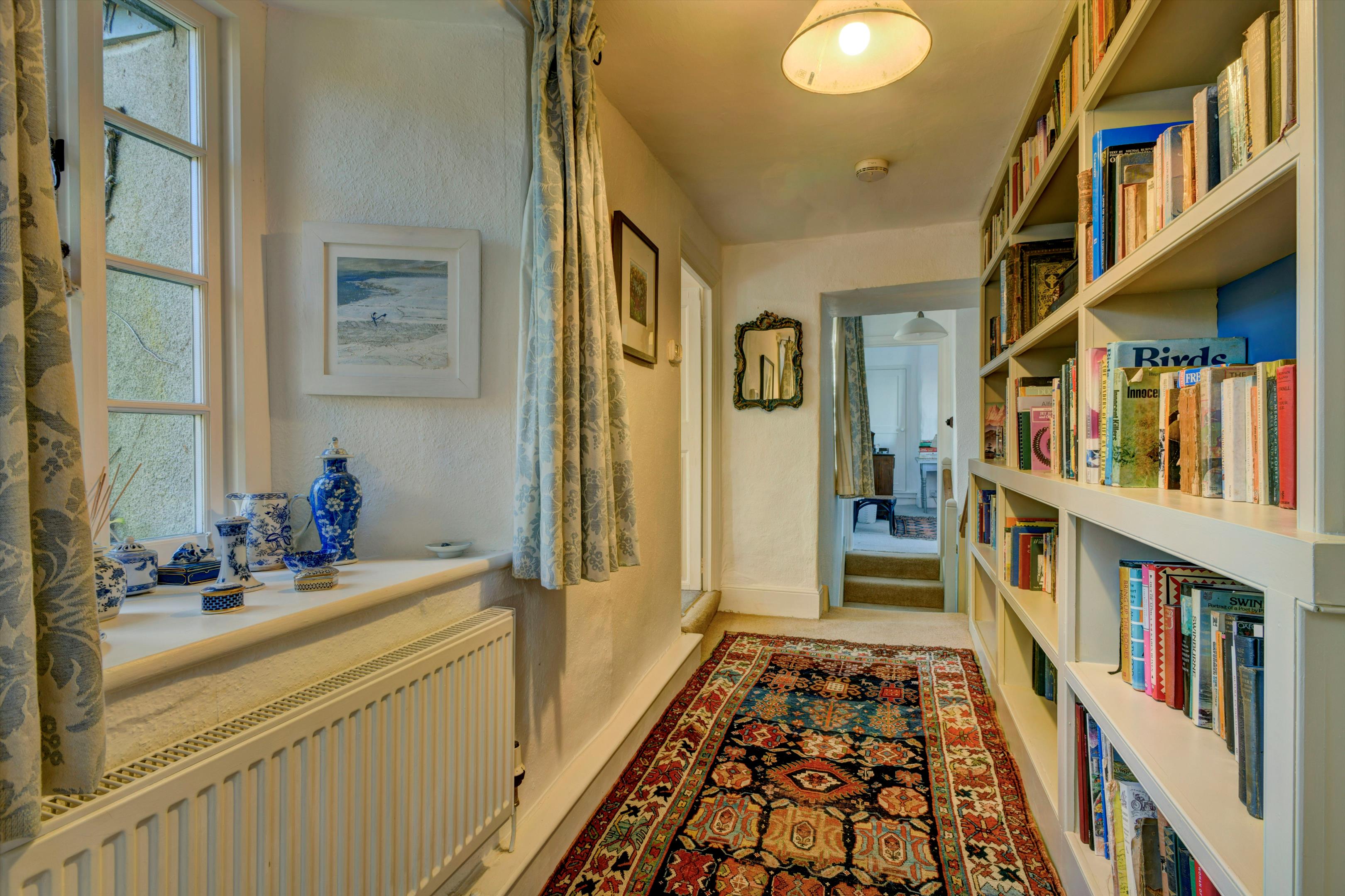 There is a bedroom/shower room suite on the ground floor and the landing with fitted bookcases and three further bedrooms and bathroom with stone mullioned window on the first floor.