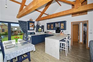 The accommodation briefly comprises; on the ground floor Sitting room; woodburner, French doors to the patio. Kitchen / dining room; vaulted ceiling with exposed oak ‘A’ framed beams, Velux windows and twin French doors to the rear opening onto the patio and lawned garden enjoying far reaching countryside views across the farm land and Tamar Valley. Solid oak fitted Kitchen, black granite worksurfaces inset Neff electric oven, dishwasher, full height pull out larder, large larder fridge with extensive drawers and cupboards with a large central island with breakfast bar, Travertine flooring, electric Aga with Aga intelligent management system (AIMS), four ovens and a dual ceramic hob to the side, woodburner. Utility, French doors to the front opening onto the patio fitted base units inset sink, space for washing machine, walk in larder cupboard, utility, cloakroom and 2 double ensuite bedrooms. On the first floor; master bedroom suite, balcony enjoying far reaching views, woodburner; dressing room, ensuite bathroom and 2 further ensuite double bedrooms.