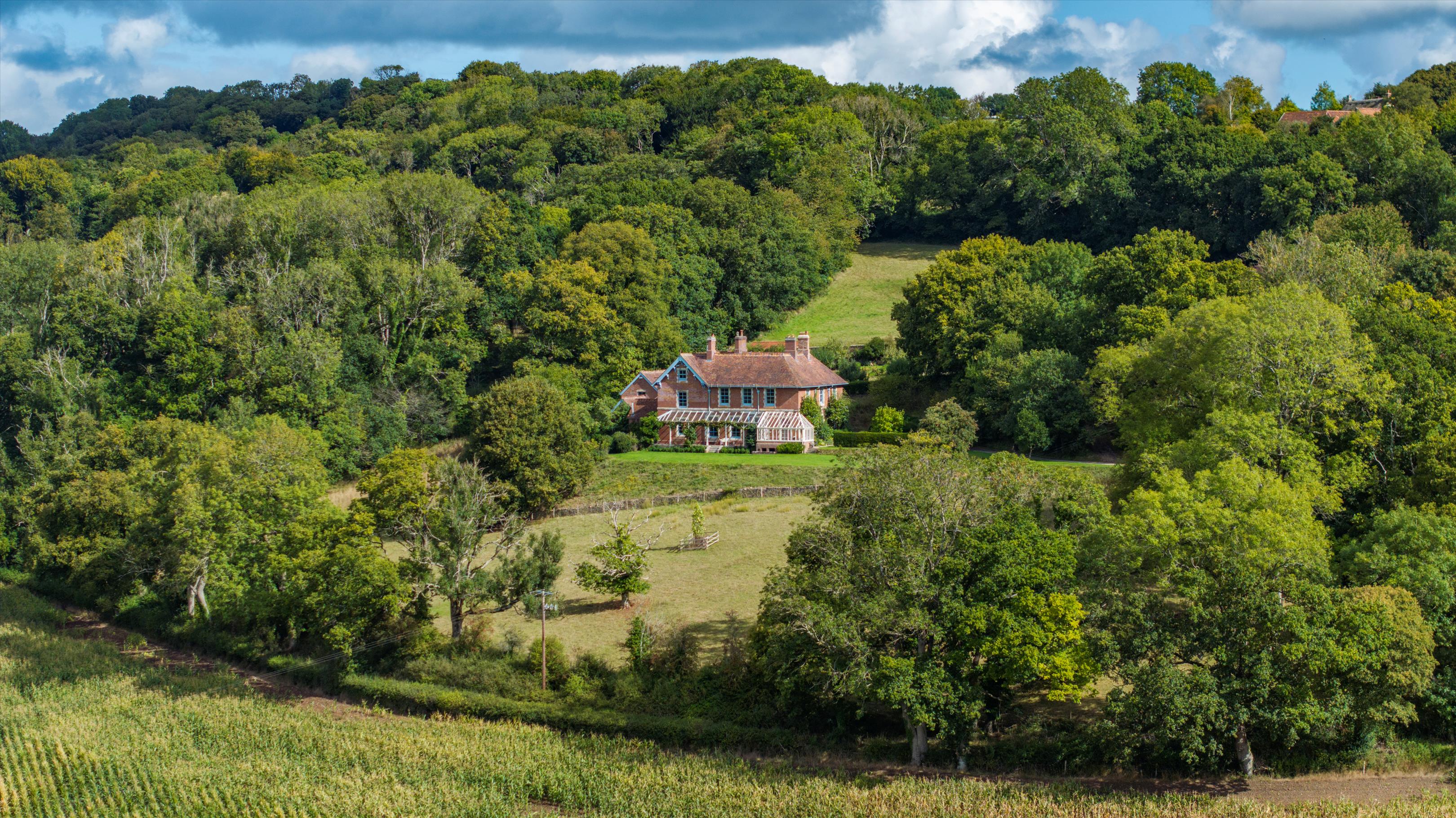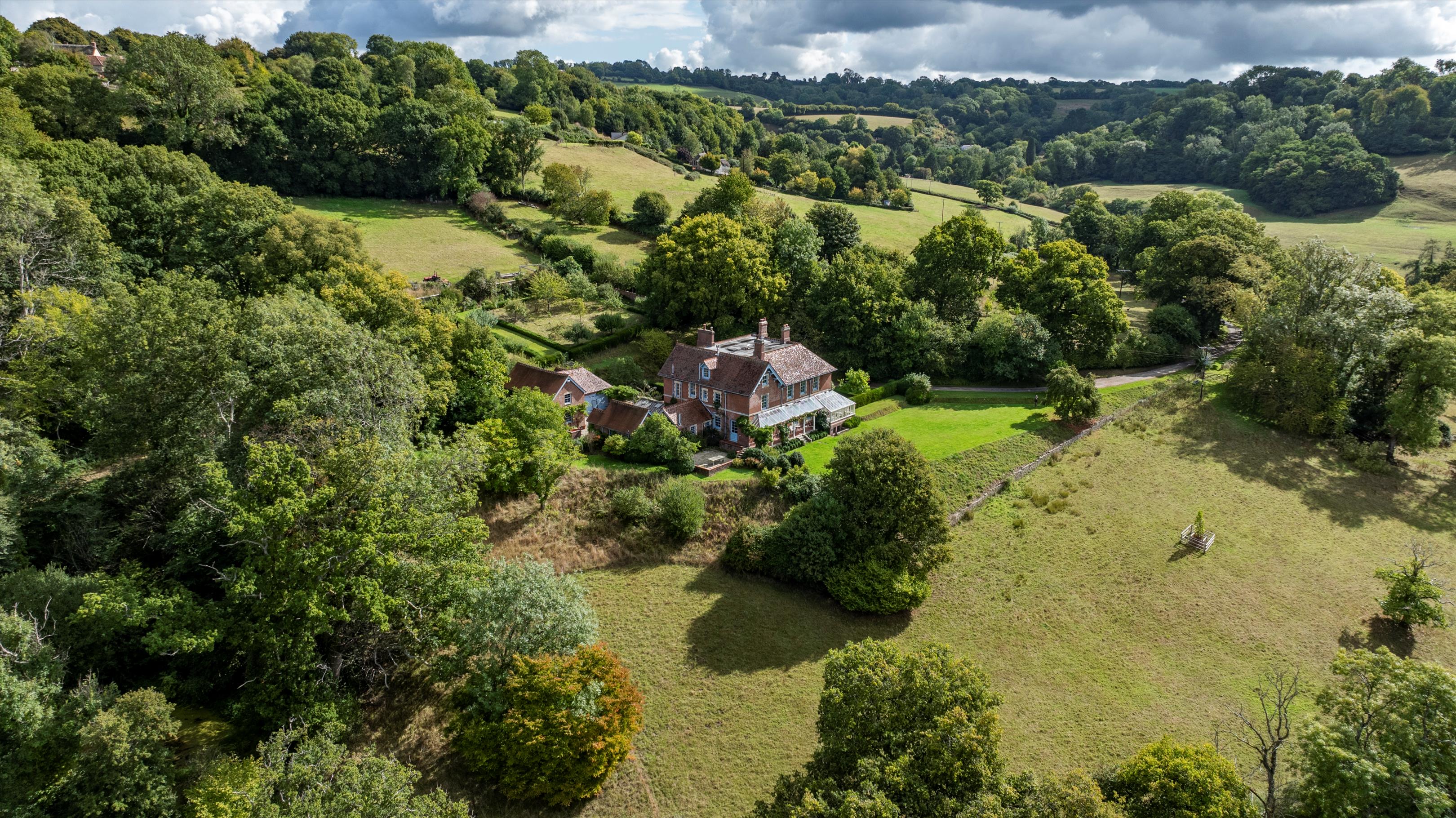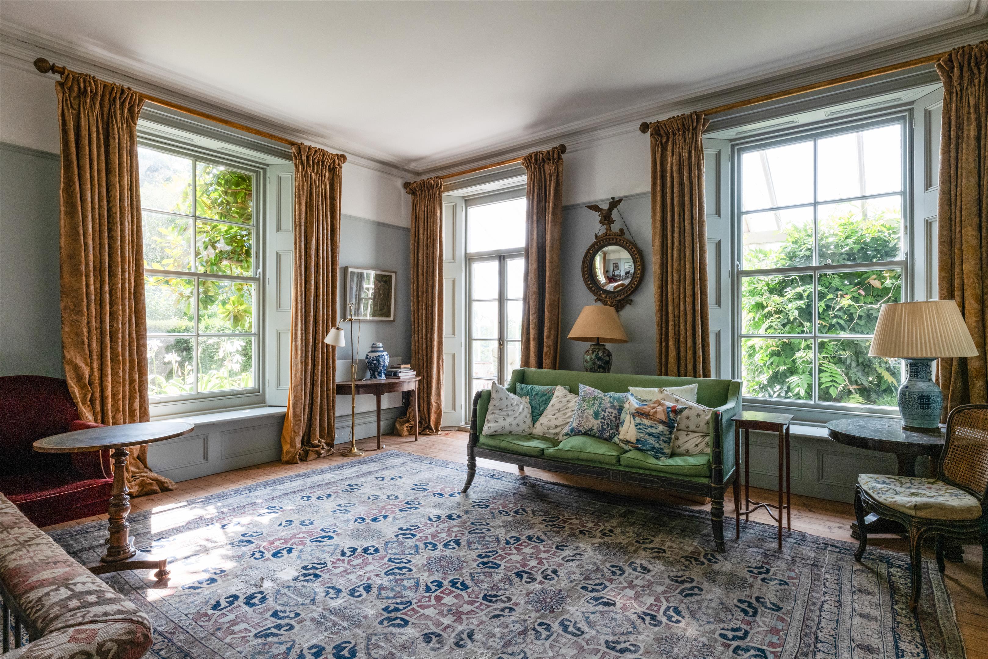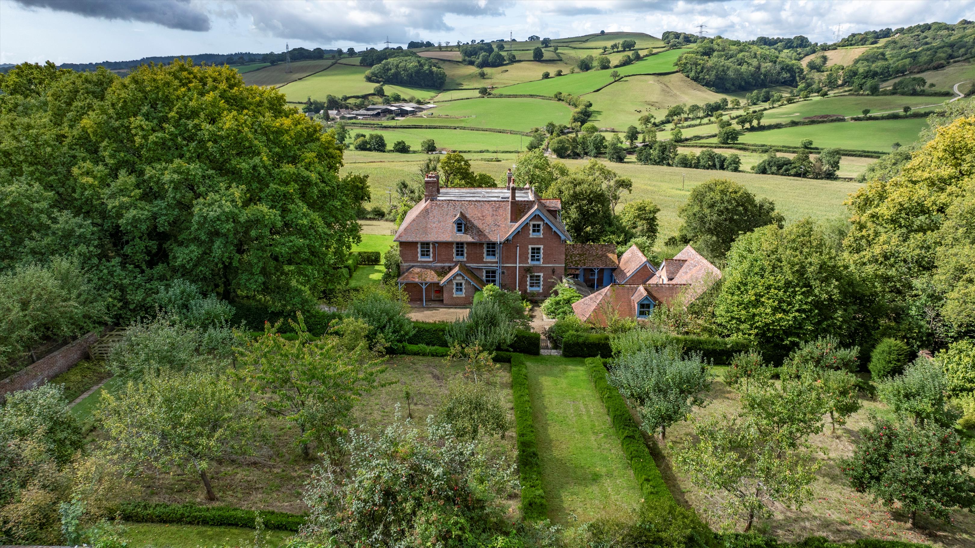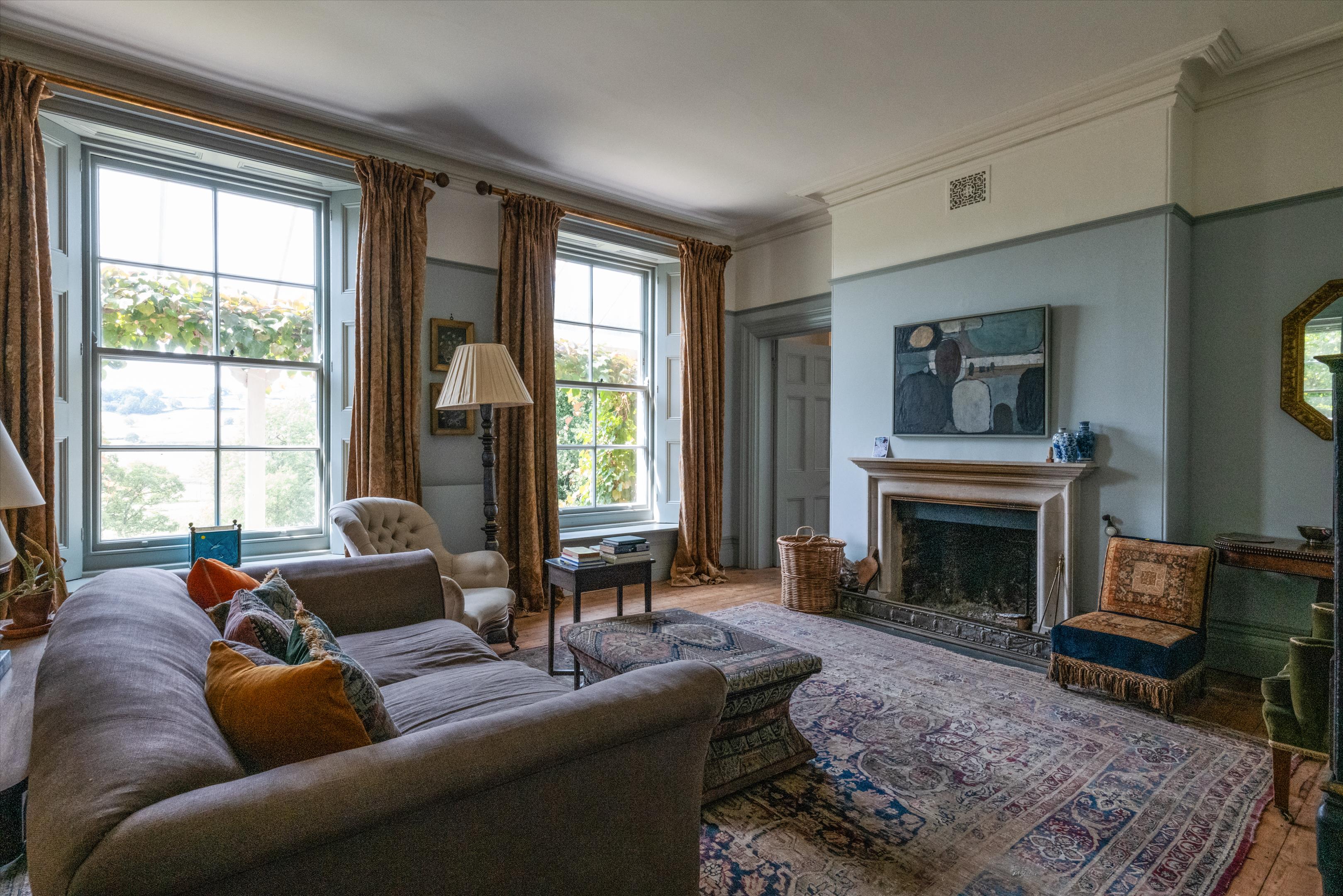 Mary Keen. Overall, the house stands centrally within its grounds, which total about 26 acres. The access driveway is lined with trees with a large paddock beyond on one side and a block of mature broadleaf woodland on the other. This extends the full length of the drive and then continues around behind the house and garden. Beyond are two further blocks of woodland, with one lying on the far side of the passing lane. Within the grounds are extensive areas of mature pastureland split into five paddocks bound by stock-proof