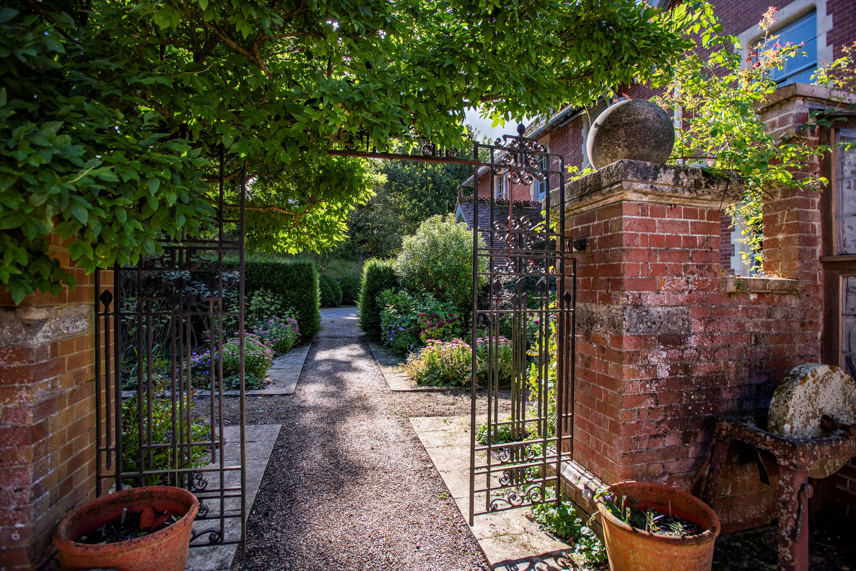 Yarty House, built on a landscaped mound, lies within an area of mature formal gardens that is partly walled and which complement the house and attendant outbuildings perfectly. They also provide a lush screen that shields the house from prying eyes and inclement weather. The major portion of the part-walled garden lies on the northwestern and northeastern sides of the house incorporating a large, level lawn. To the southeast beyond the stable yard is a mature, mixed orchard bound by mature, low hedging. The grounds also feature a tennis court and the entire garden, orchard, stable beds and lawn were beautifully designed by the renowned garden designer