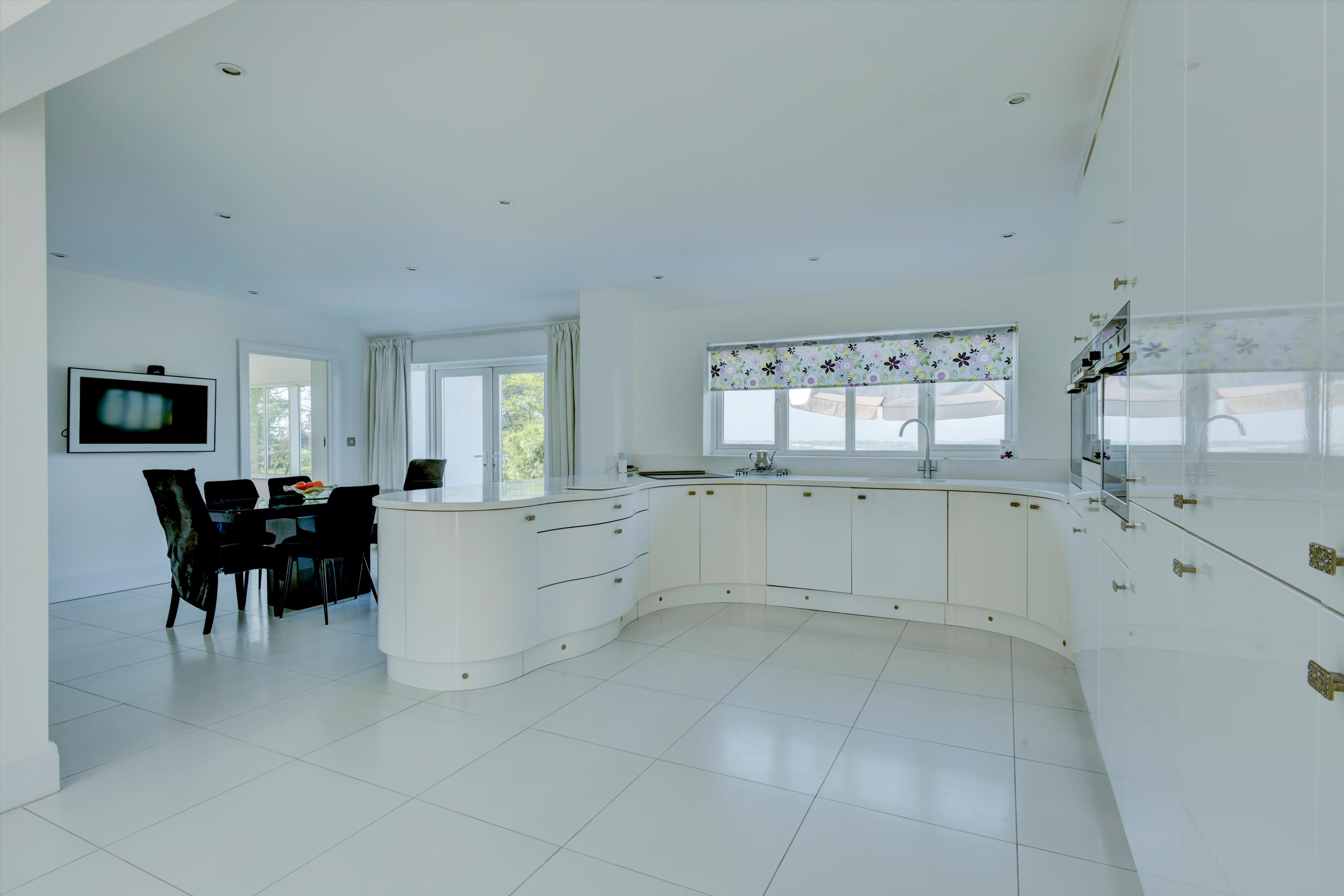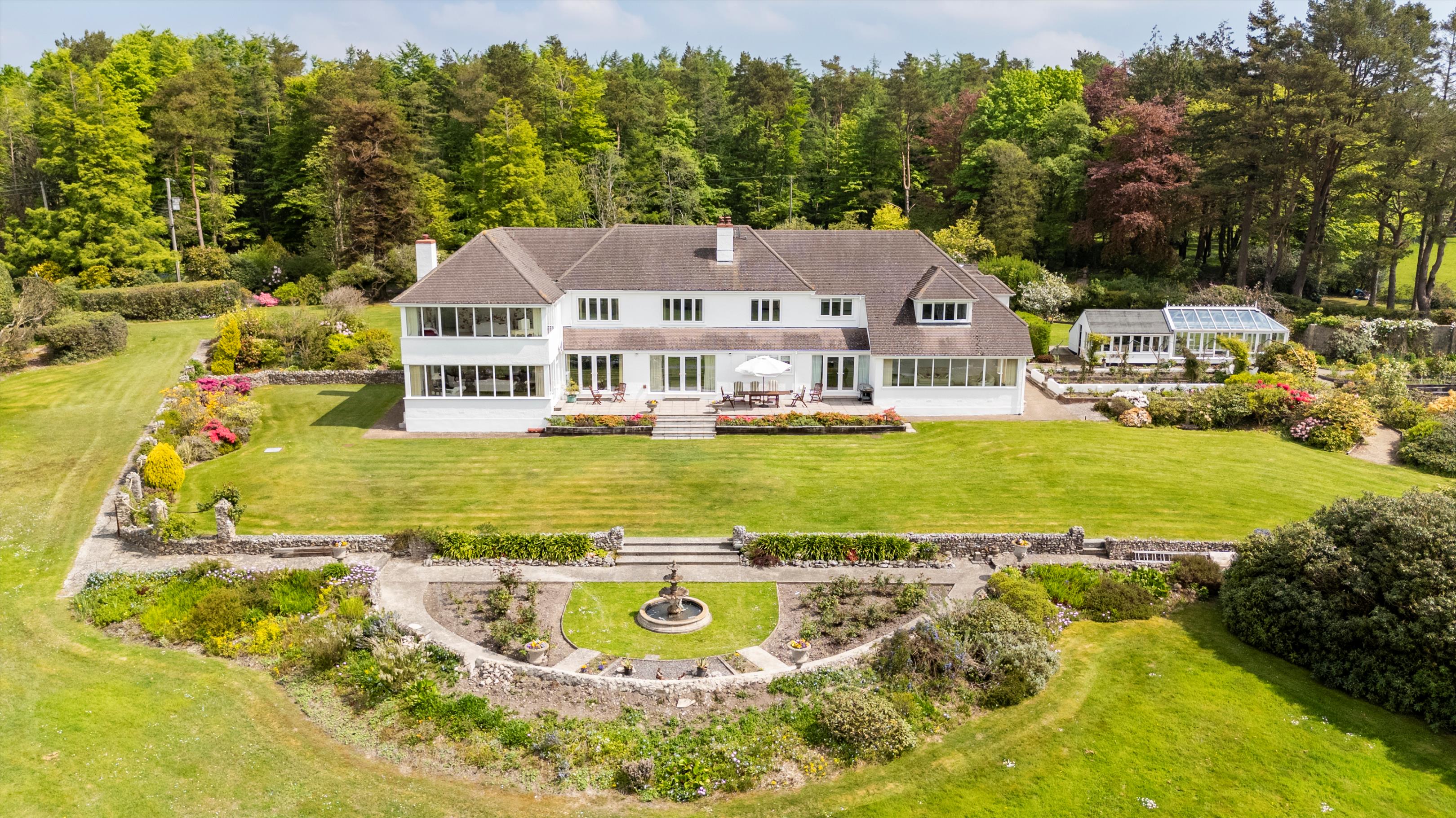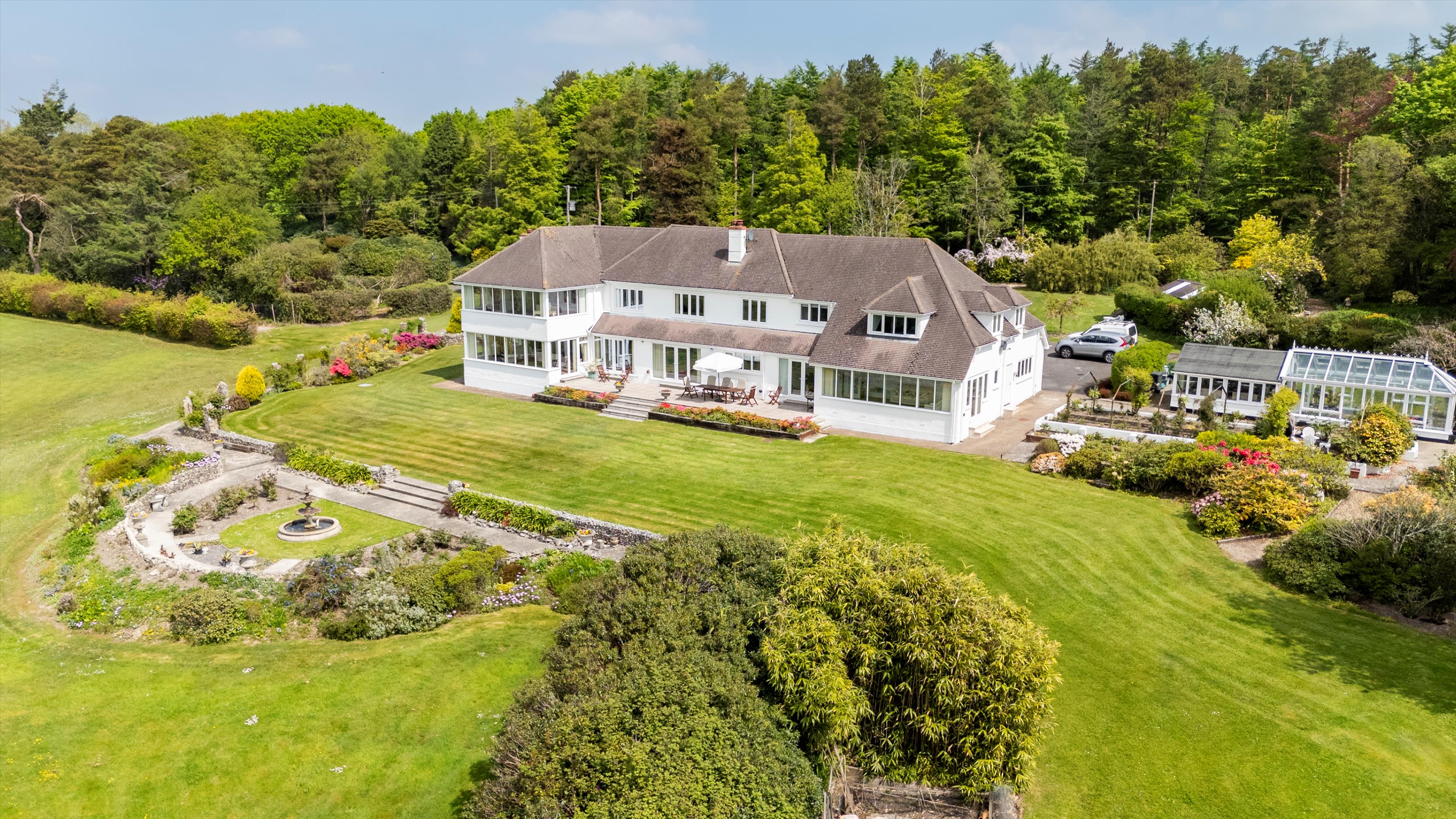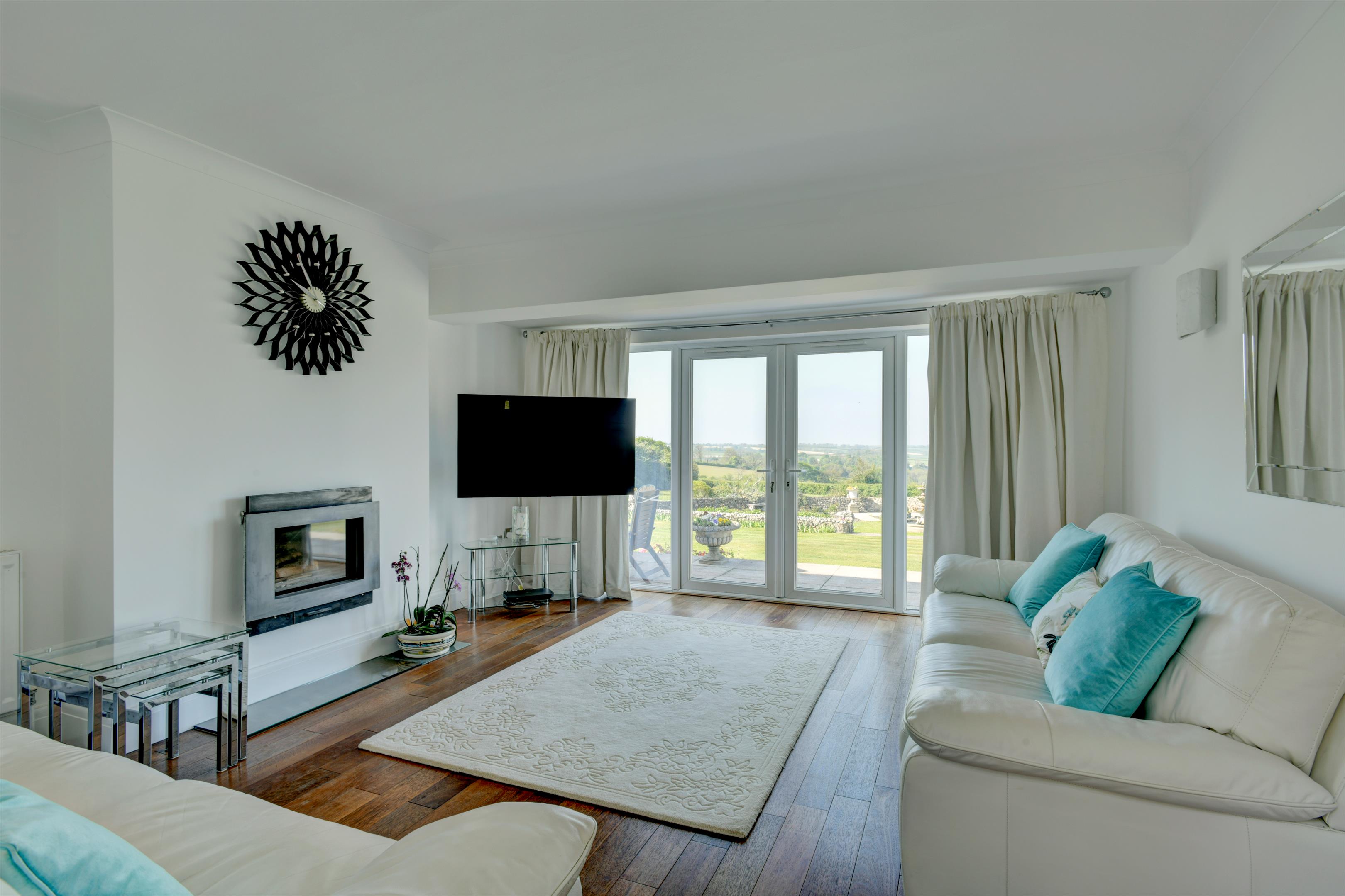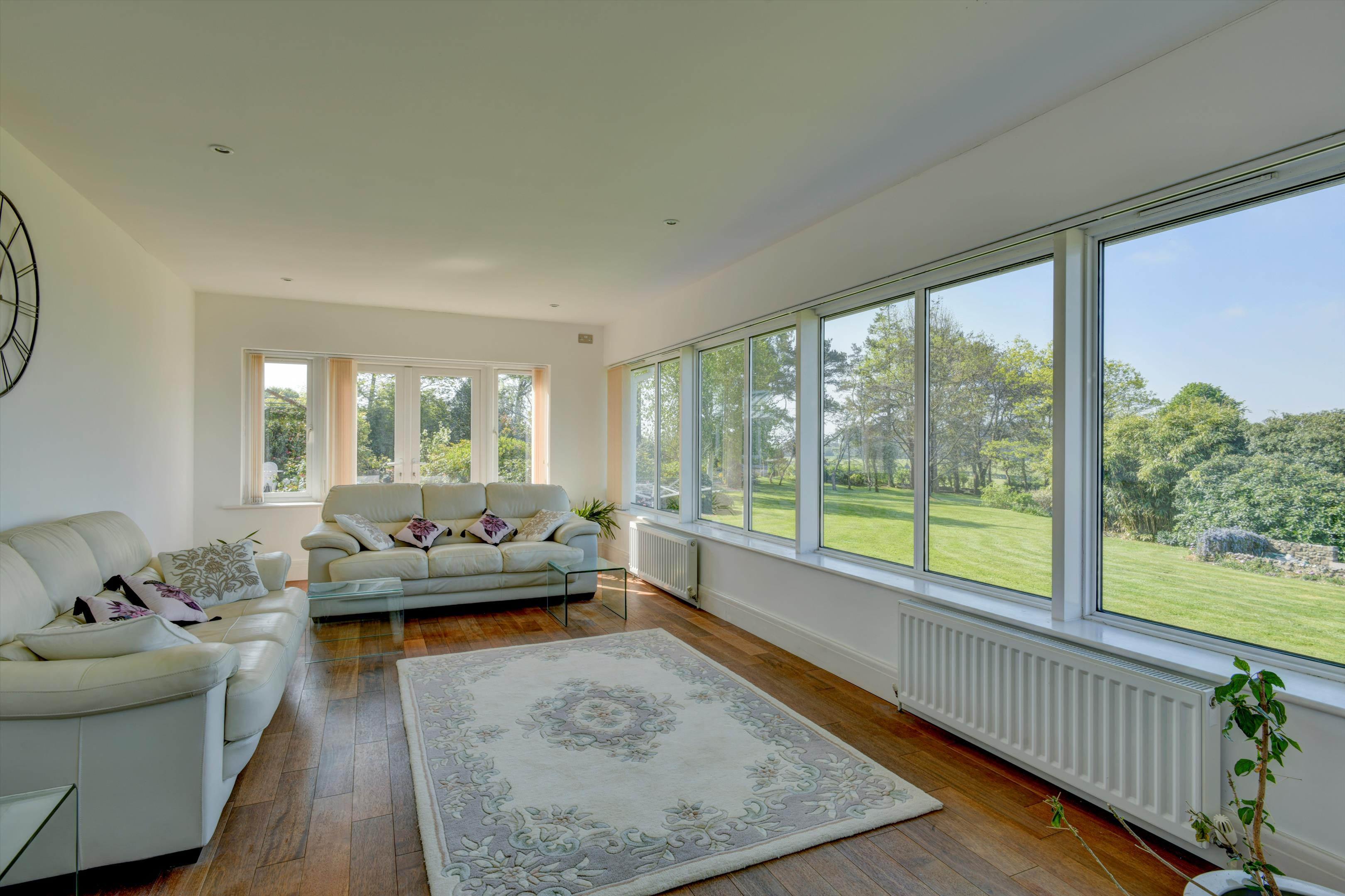 There is no doubt why the location of Hartgrove house was chosen as the spot for a significant country house. This country house enjoys an elevated position that provides unique and magnificent south westerly views across the Axe valley and unspoilt countryside. The house dates back to the 1930s and has been extended and fully renovated to a high standard by the current owners. It has been thoughtfully designed to allow a practical layout for cosy family living, as well as providing a luxurious and spacious environment for entertaining, through purposely designed, well-proportioned reception rooms. The contemporary neutral décor throughout allows for turnkey living, while also easily enabling prospective buyers to add their own personal style. The kitchen and all four reception rooms have French doors which open onto a large terrace which enjoys the south westerly views and is ideal for entertaining guests. Upstairs five bedrooms enjoy the panoramic countryside views whilst the sixth bedroom has a peaceful rural view across the front lawn towards the woodlands.