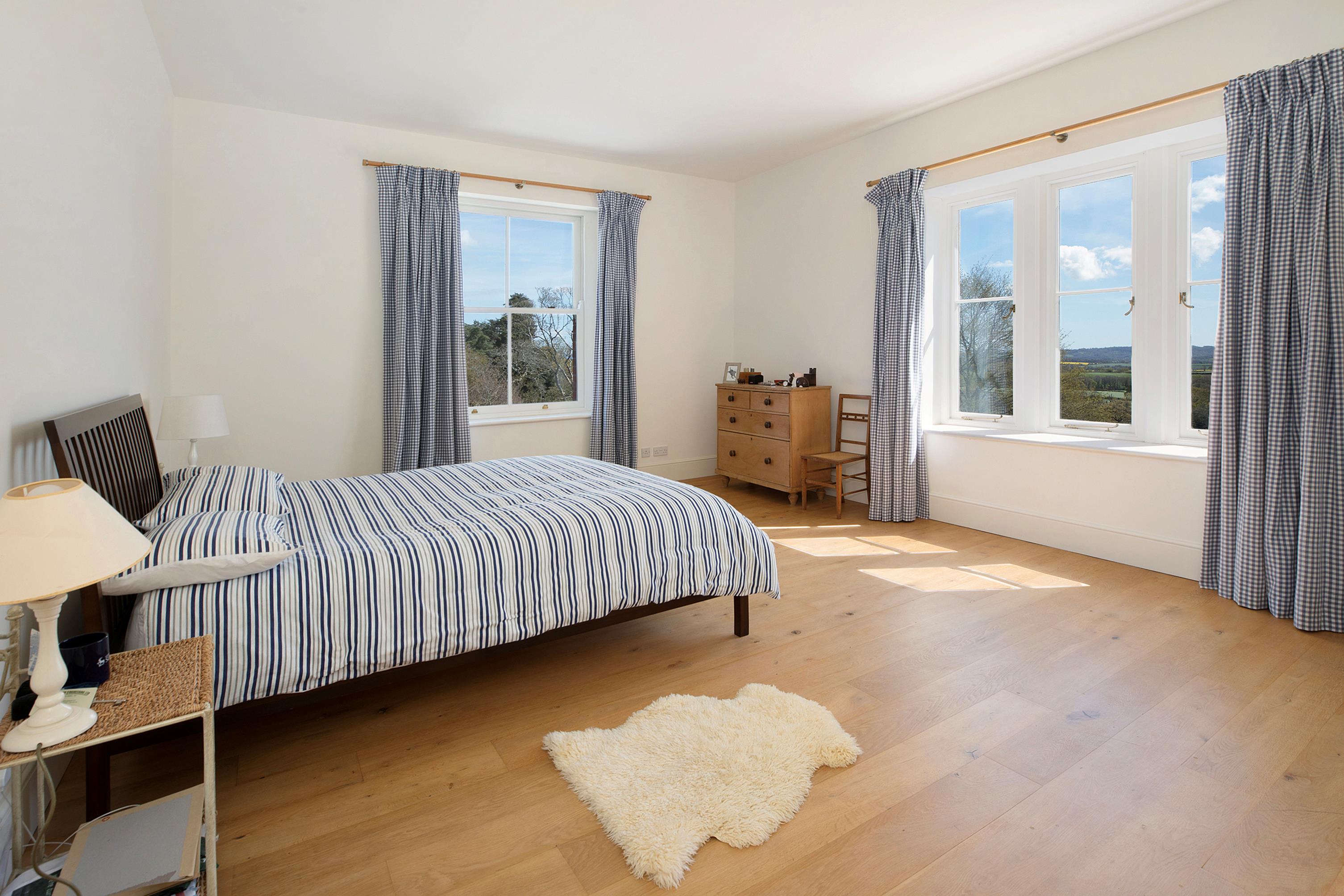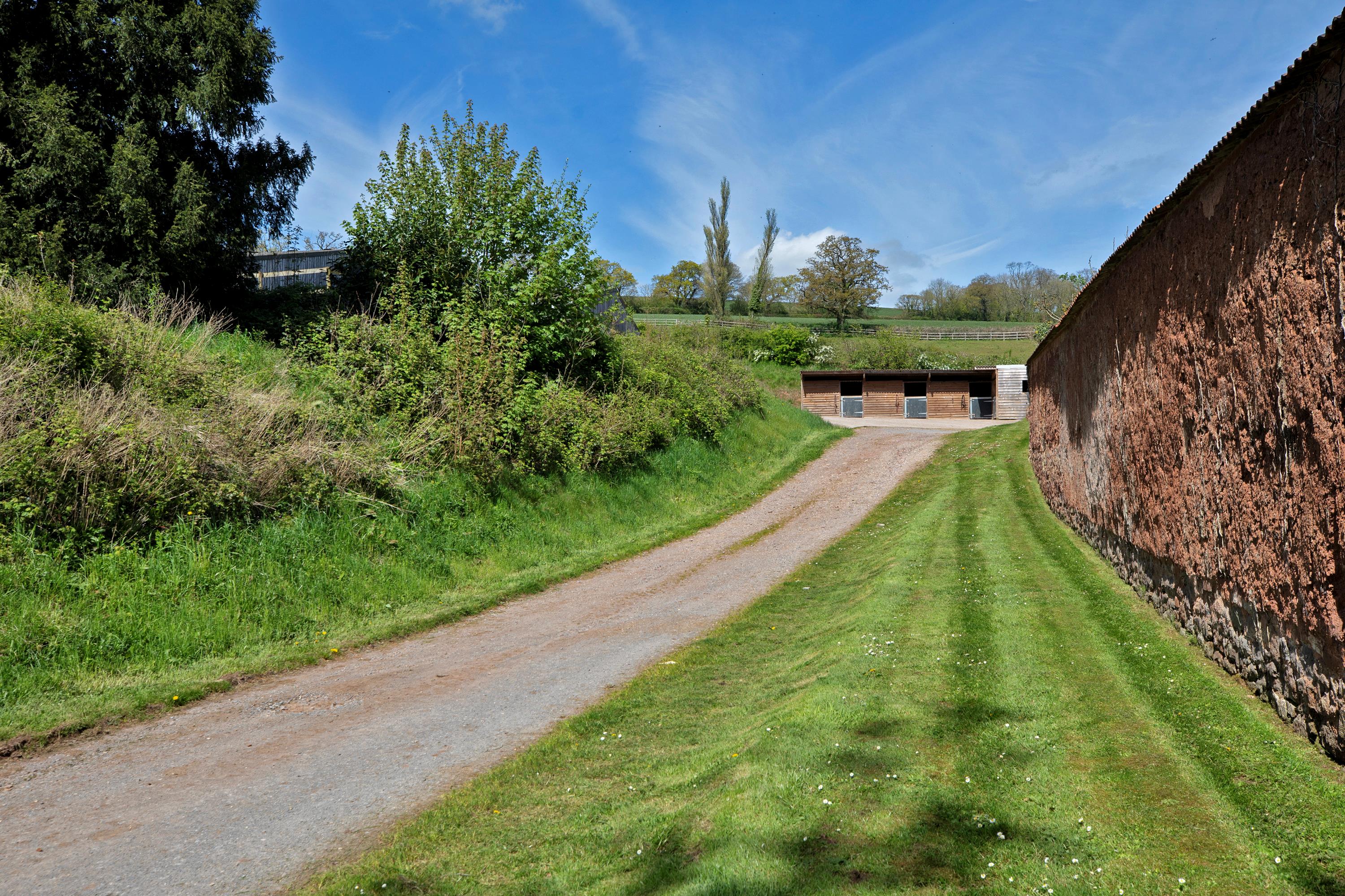 Beyond the former Victorian dairy, there is access to further pasture and a field divided into smaller grazing paddocks as well as a turnout area. To the north of the riding school, there are two further fields with access onto Raddon Hill. Flanking the pasture on the north and eastern boundary is a belt of mature woodland.