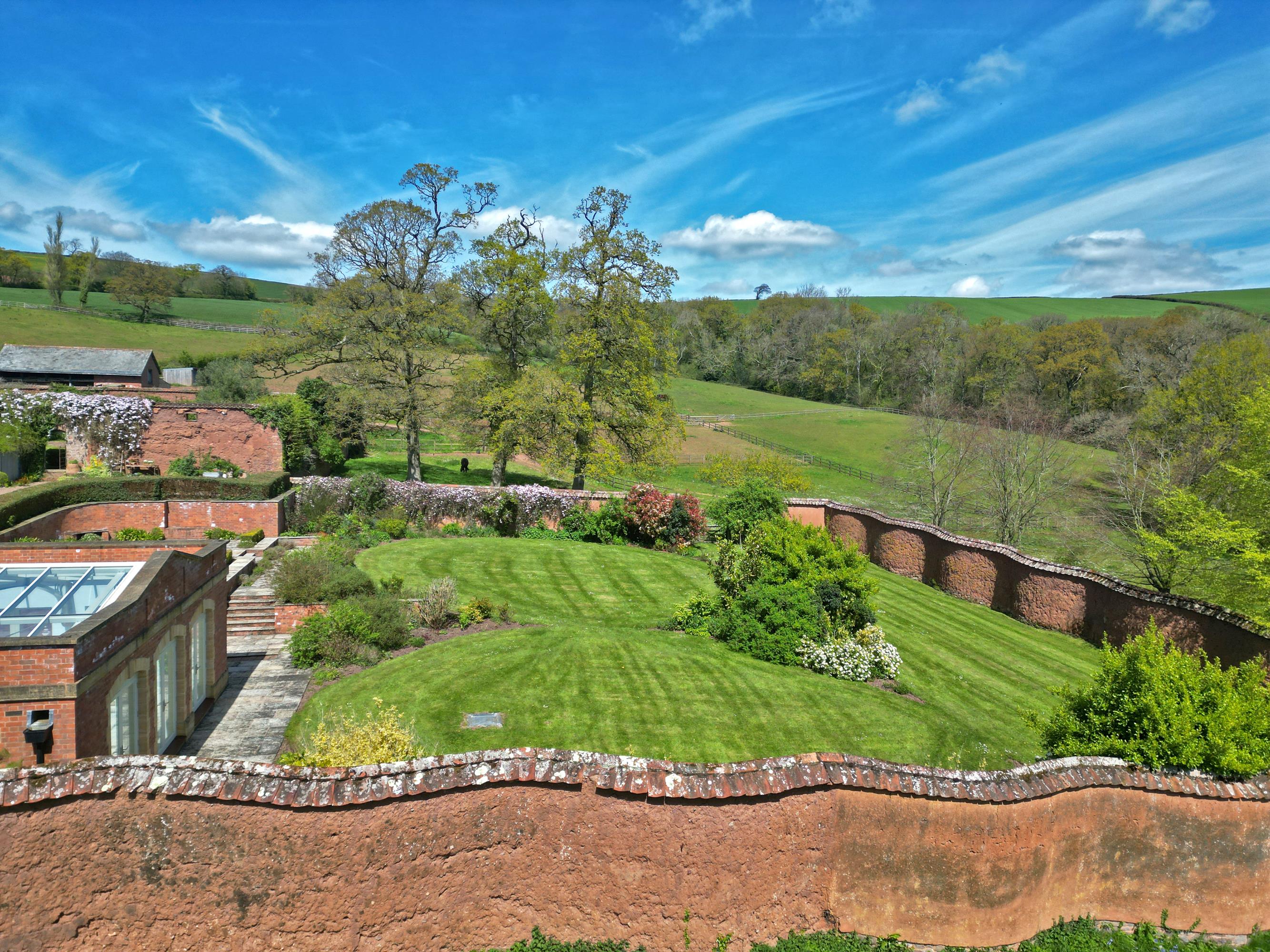 Surrounding the house are delightful lawns which can be reached from many of the rooms of the house. One of the particular features is the lower walled garden and terraces with its 'crinkle crinkle' wall overlooked by the kitchen/breakfast room and accessible from the swimming pool complex. Sitting above this garden is the walled kitchen garden with productive beds and fruit trees.