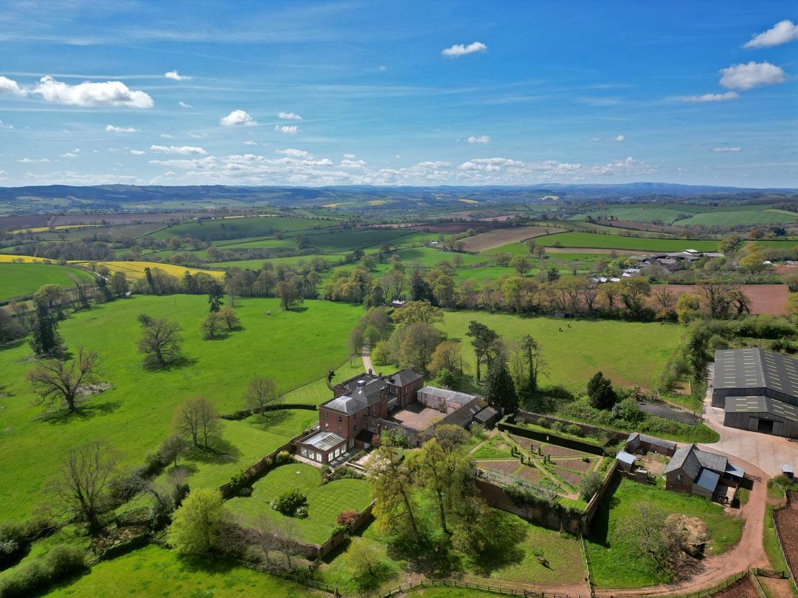 The property sits in the middle of the land with pasture surrounding the house and gardens. To the south is parkland interspersed with a number of mature trees. A further field flanks the drive to the north and located below the indoor riding school.