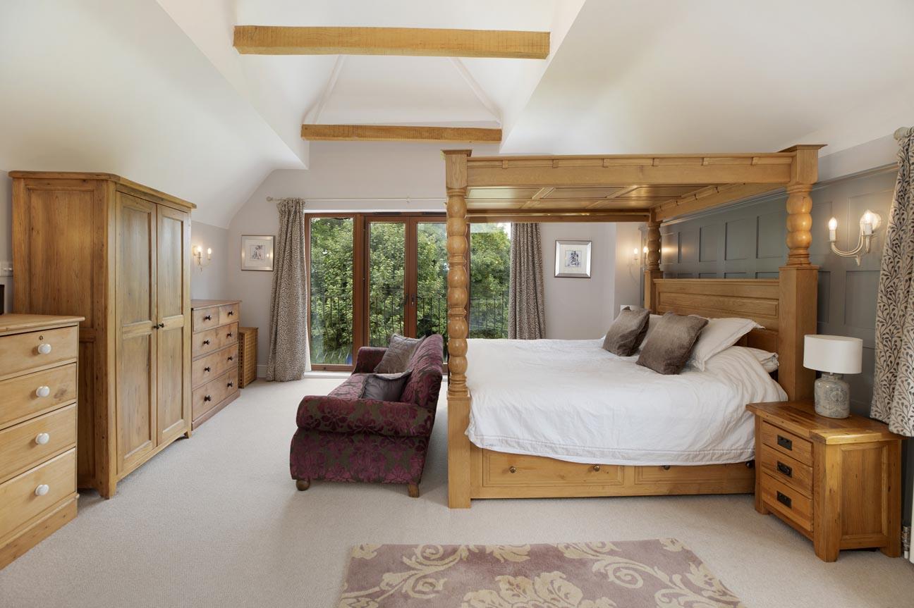 The first floor maintains the same level of quality, flow, and immaculate presentation. A galleried landing leads to the generously appointed bedroom accommodation, most offering spectacular views over the grounds. The principal bedroom stands out with its Juliet balcony, offering sublime views over the gardens towards the valley. The en suite, like all the bathrooms in the house, is finished to an exceptional standard, ensuring comfort and luxury. There are a total of five bedrooms and four bath/shower rooms in the main house.