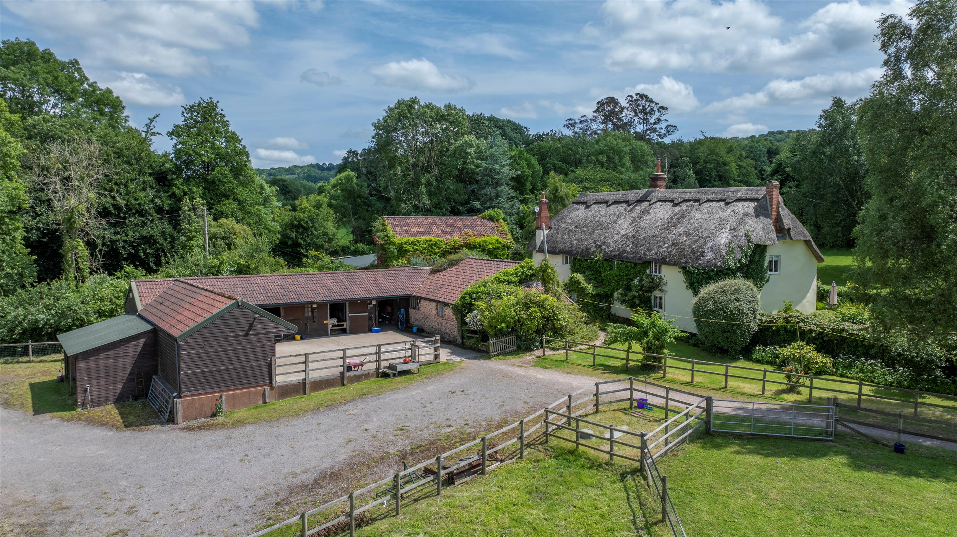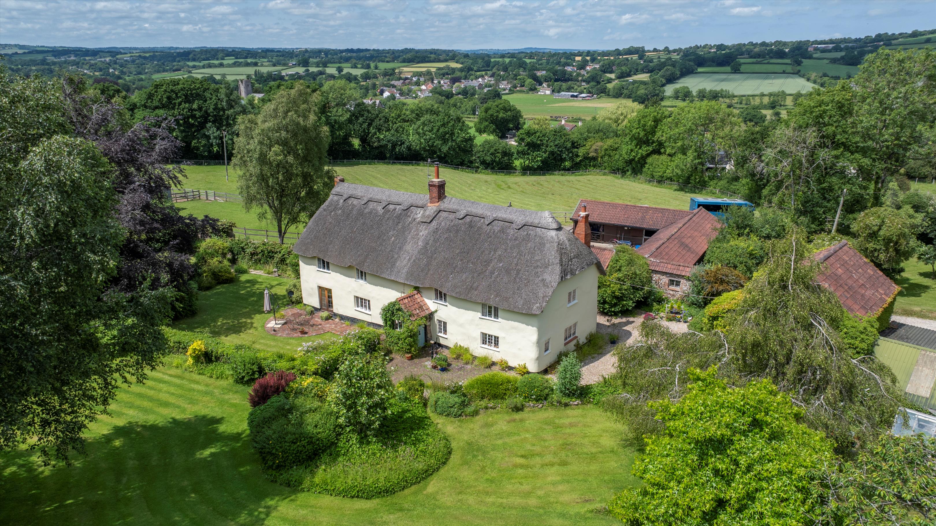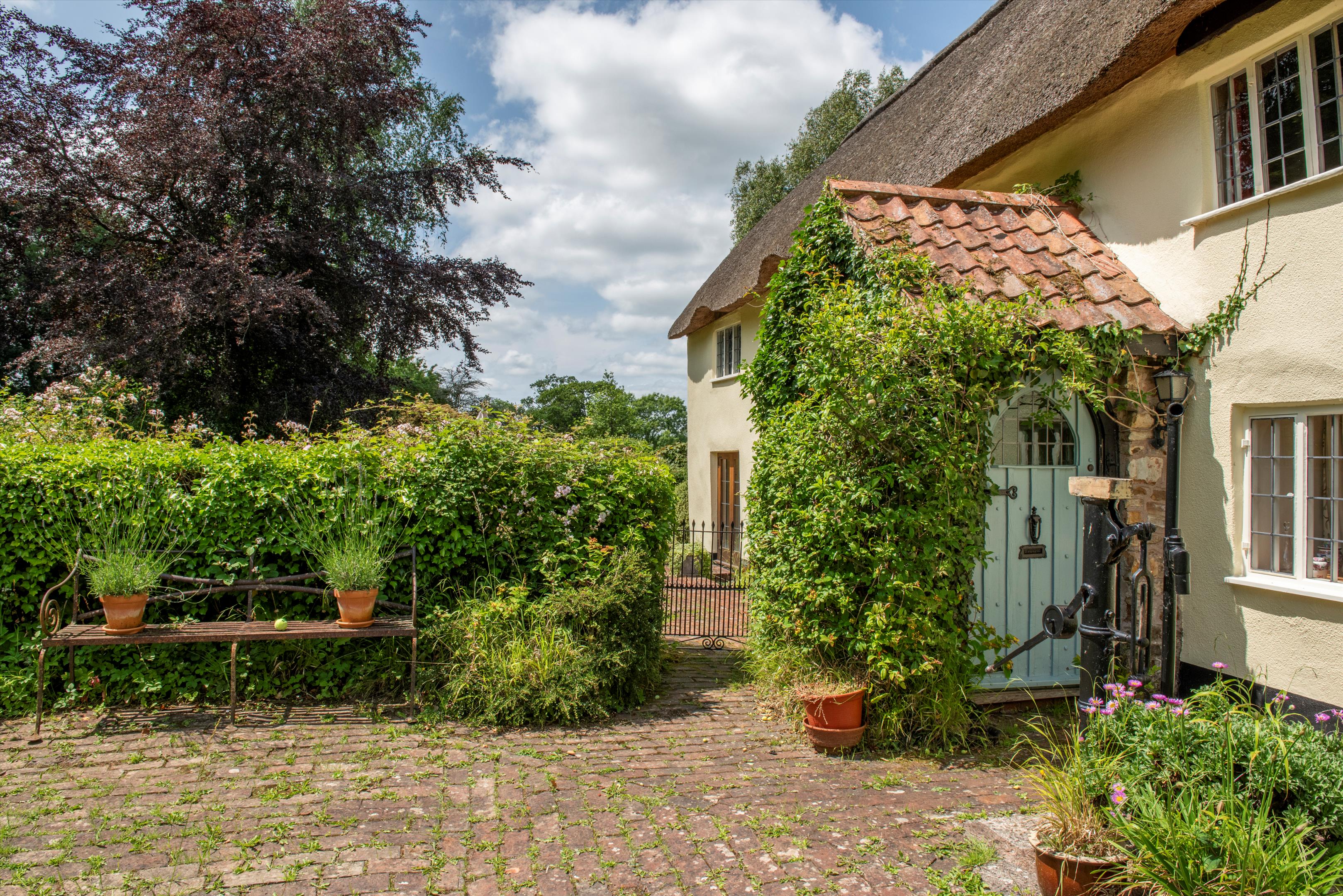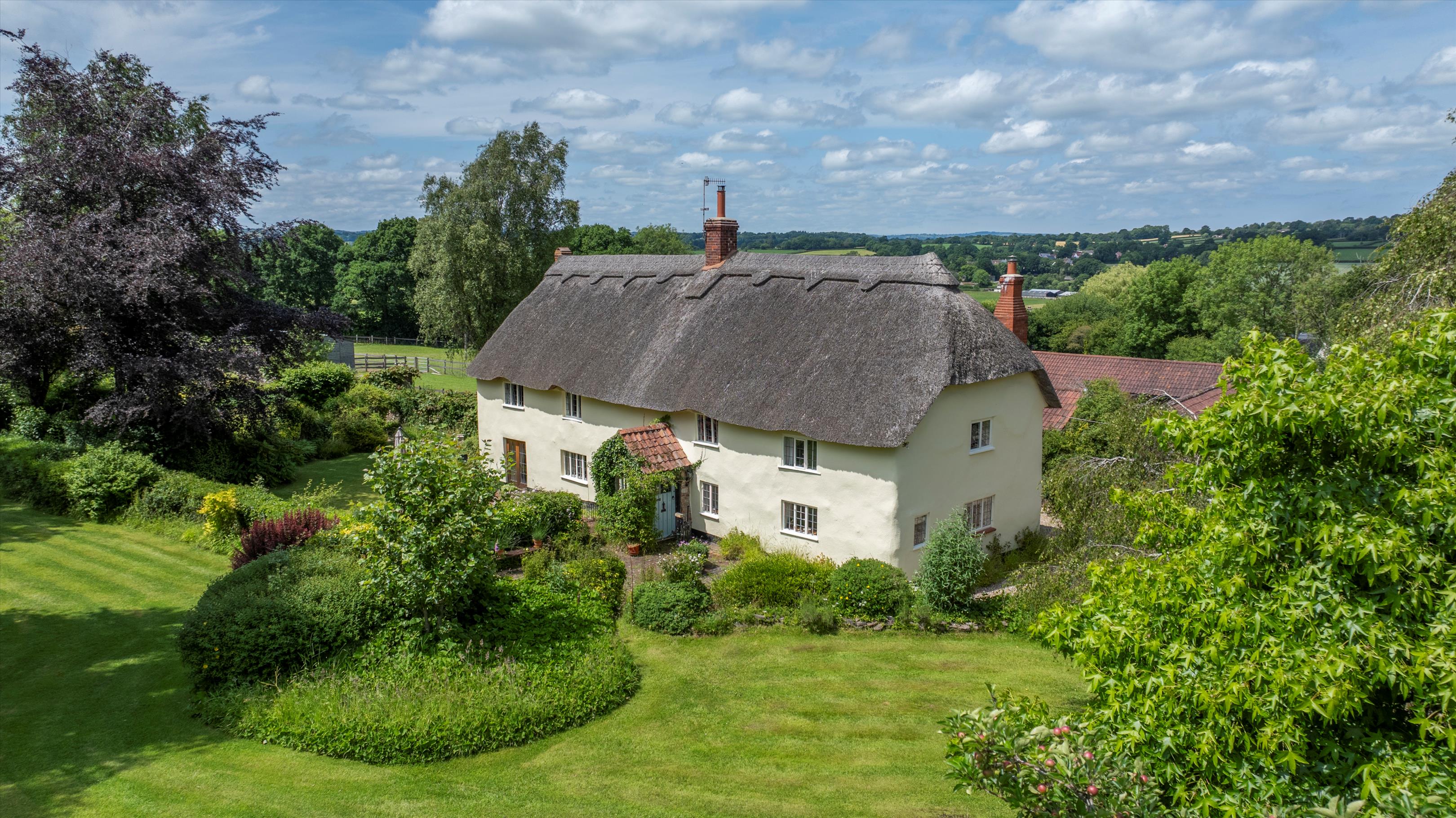 Dating from the 16th century and altered over the following centuries, Jerwoods Farm is a charming Grade II listed property, built of plastered cob under a traditional Devon reed thatched roof. It has been fully refurbished to a high standard and has retained many original architectural features including a plank and muntin wall between the sitting room and snug, Tudor arched doorways, beams, exposed roof timbers and an attractive inglenook fireplace in the sitting room. It has good ceiling height throughout and all the major rooms face south, thereby capturing the best of the natural light throughout the day and giving the interior a light and airy feel. The ground floor has the traditional three room layout along with a through-passage hallway. The kitchen/dining room is the largest of the three rooms and has a brick floor and plenty of room for a good-sized kitchen/dining table, along with a central island, an AGA and a range of built-in electric appliances. The four bedrooms on the first floor are accessed via two staircases and all have views over the garden to the surrounding countryside beyond. The principal bedroom has an en suite shower room, with the remaining bedrooms sharing the family bathroom.The four bedrooms on the first floor are accessed via two staircases and all have views over the garden to the surrounding countryside beyond. The principal bedroom has an en suite shower room, with the remaining bedrooms sharing the family bathroom.
