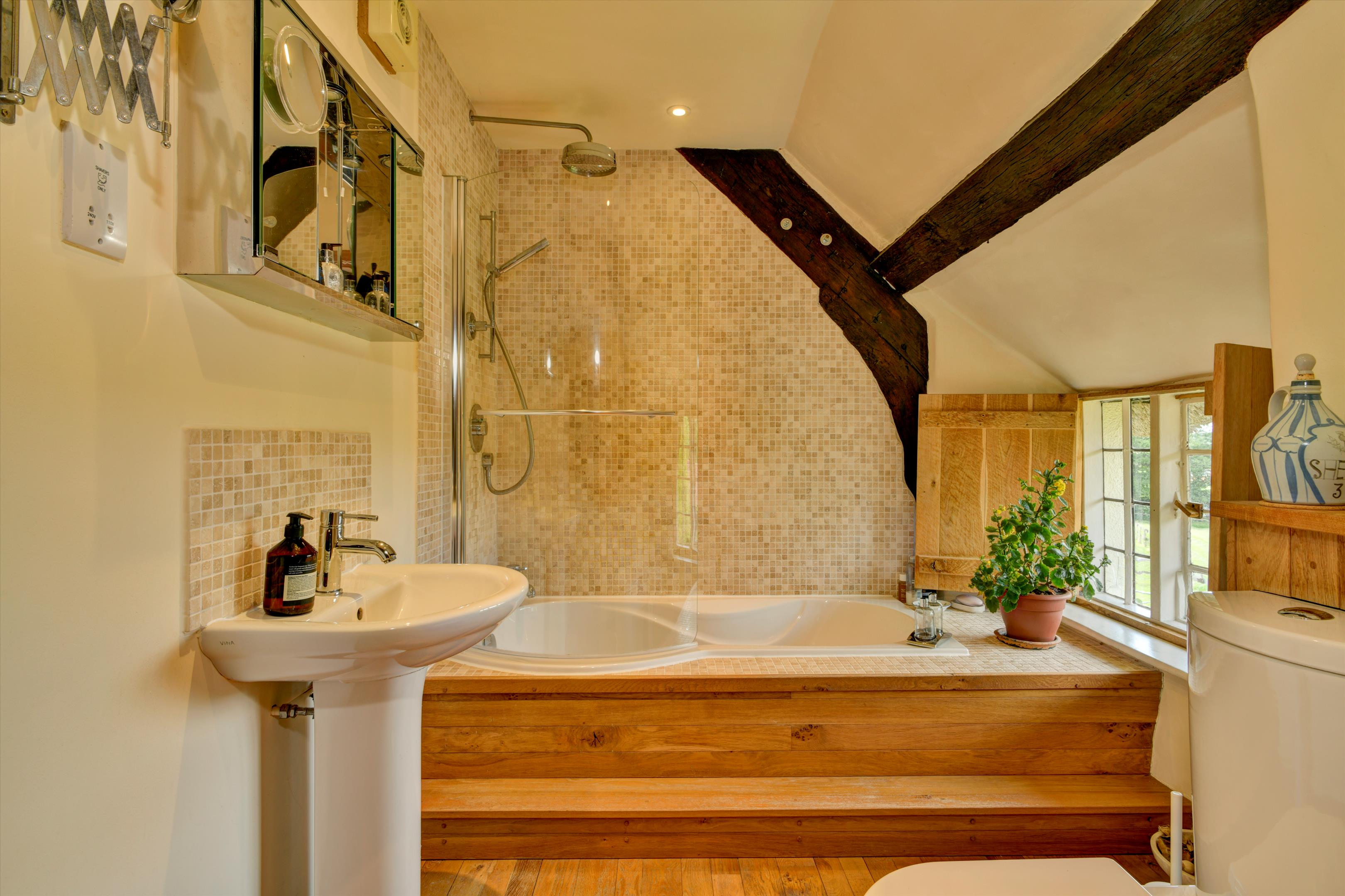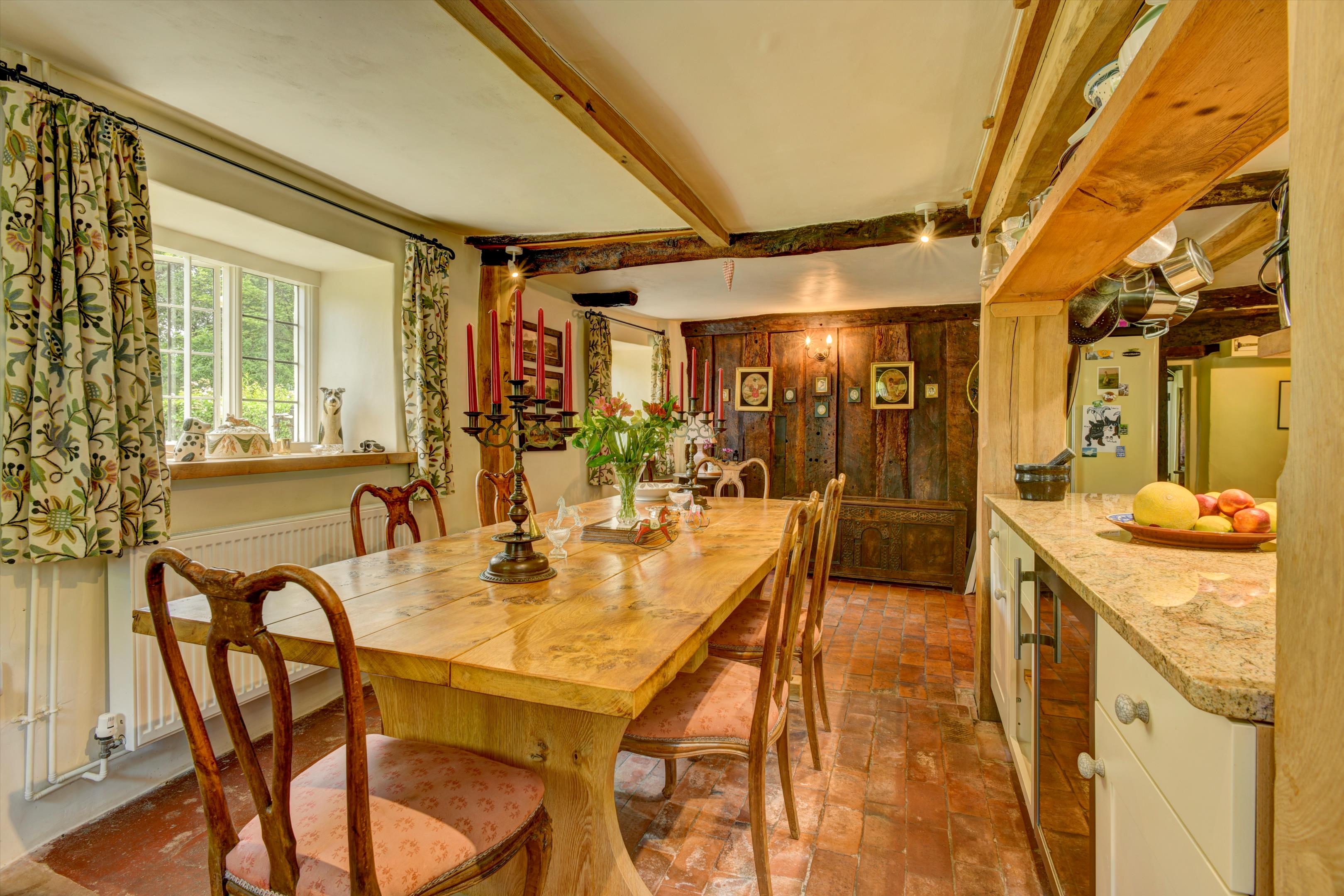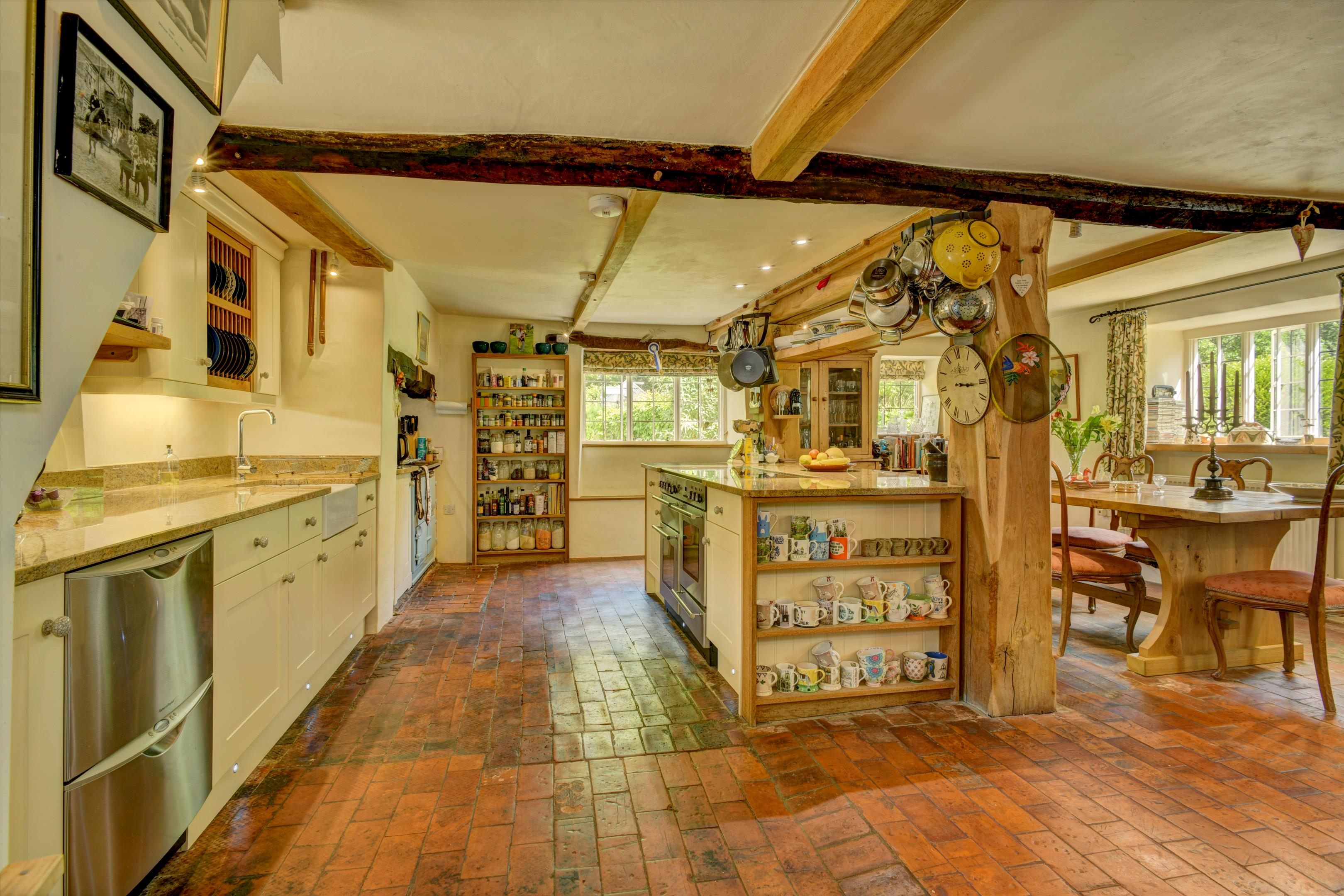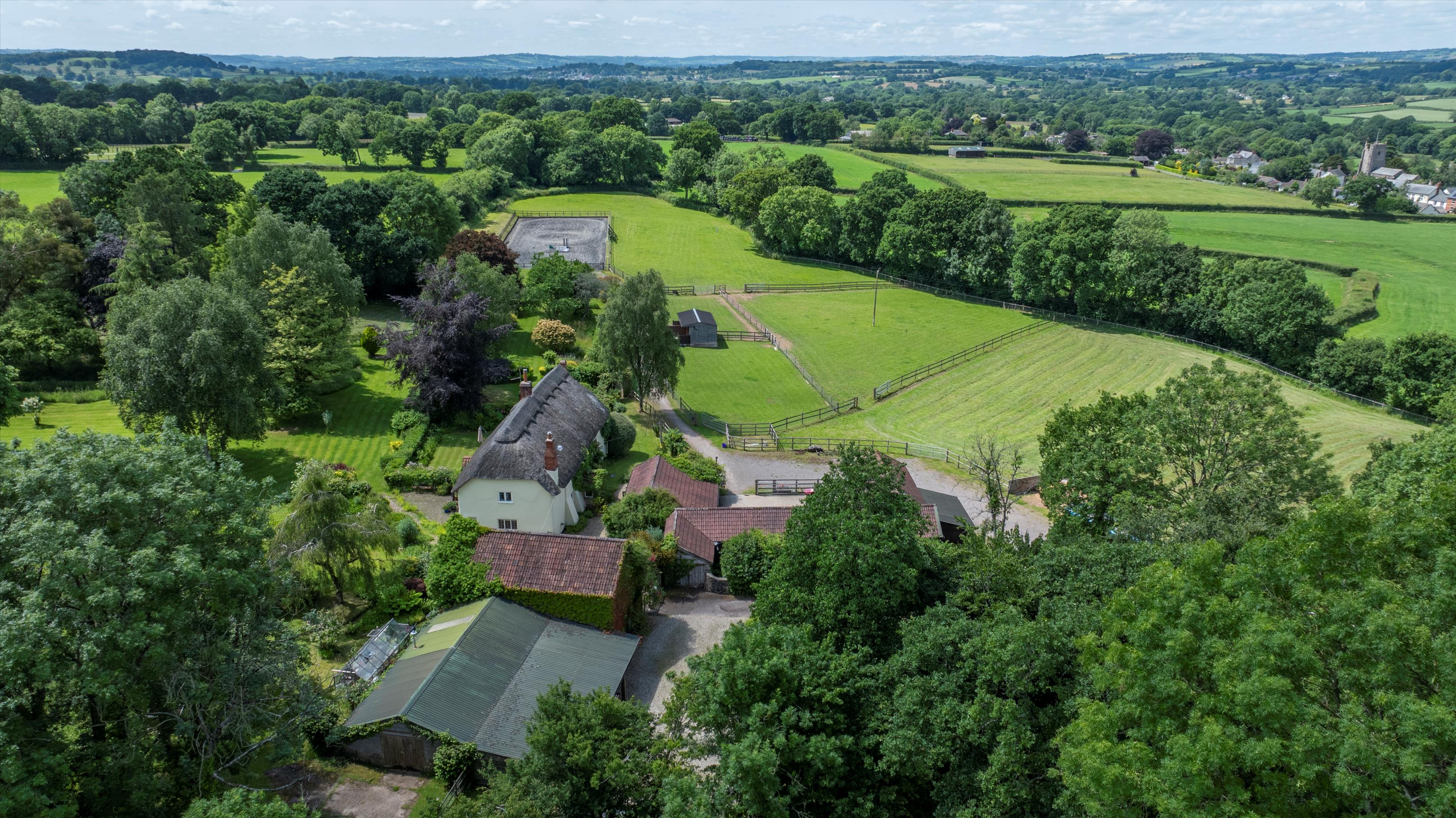 Dating from the 16th century and altered over the following centuries, Jerwoods Farm is a charming Grade II listed property, built of plastered cob under a traditional Devon reed thatched roof. It has been fully refurbished to a high standard and has retained many original architectural features including a plank and muntin wall between the sitting room and snug, Tudor arched doorways, beams, exposed roof timbers and an attractive inglenook fireplace in the sitting room. It has good ceiling height throughout and all the major rooms face south, thereby capturing the best of the natural light throughout the day and giving the interior a light and airy feel. The ground floor has the traditional three room layout along with a through-passage hallway. The kitchen/dining room is the largest of the three rooms and has a brick floor and plenty of room for a good-sized kitchen/dining table, along with a central island, an AGA and a range of built-in electric appliances. The four bedrooms on the first floor are accessed via two staircases and all have views over the garden to the surrounding countryside beyond. The principal bedroom has an en suite shower room, with the remaining bedrooms sharing the family bathroom.The four bedrooms on the first floor are accessed via two staircases and all have views over the garden to the surrounding countryside beyond. The principal bedroom has an en suite shower room, with the remaining bedrooms sharing the family bathroom.