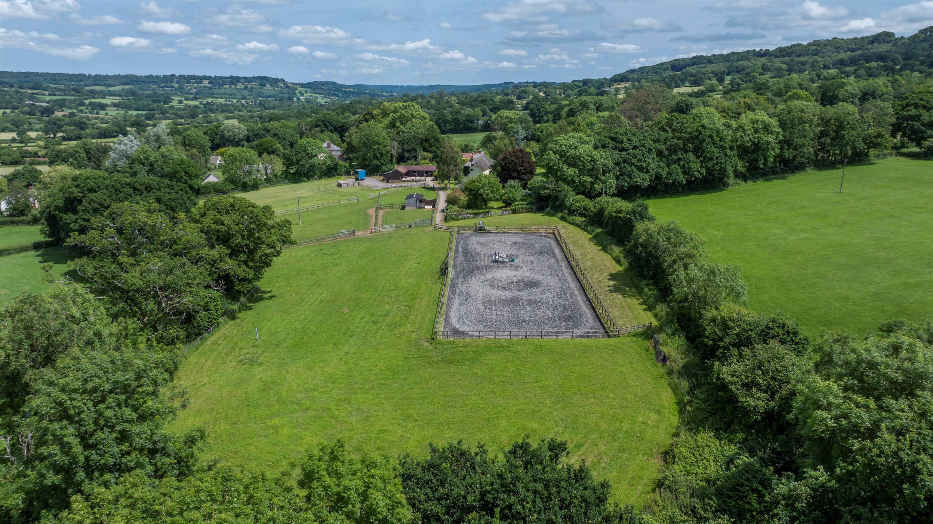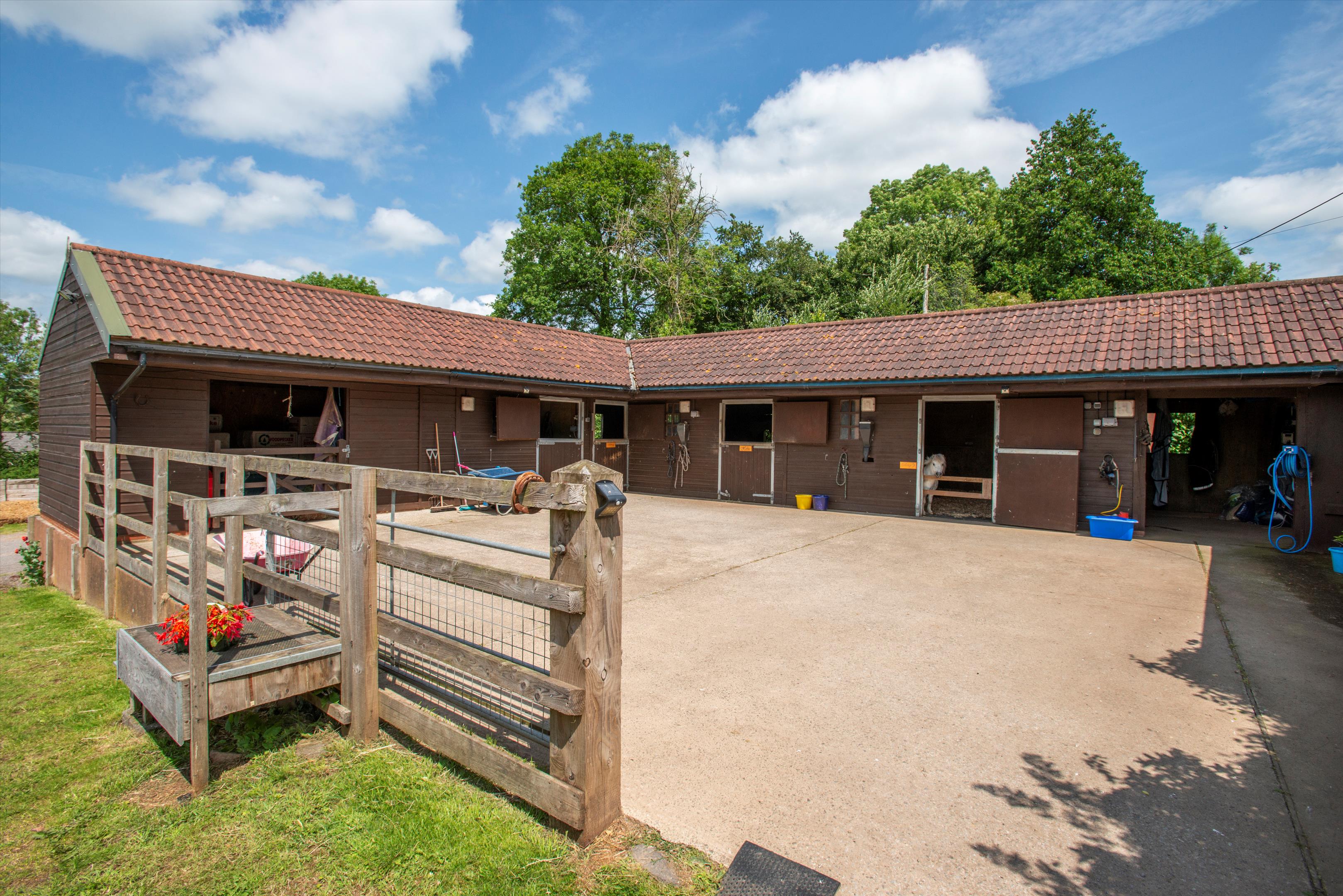 The gardens and grounds at Jerwoods Farm are fantastic and stand in about 12.6 acres, set back about 30 yards from a seldom-used country lane. There is further driveway providing access to ample parking for horseboxes etc. The large garden extends out from the house on two sides. On one side is a colourful, partly walled garden, with an extensive lawn at the rear extending to an arboretum and orchard. Beyond is an area of native, broadleaf woodland. Close to the house is a stone-built studio, which currently serves as a home office. The property's equestrian facilities are sited separately from the house and incorporate a concrete stable yard fringed on three sides by a block of four stables along with storage plus connected washing facilities. Beyond are seven individual paddocks equipped with water troughs and stud fencing. Two of the paddocks are equipped with field shelters on concrete bases.