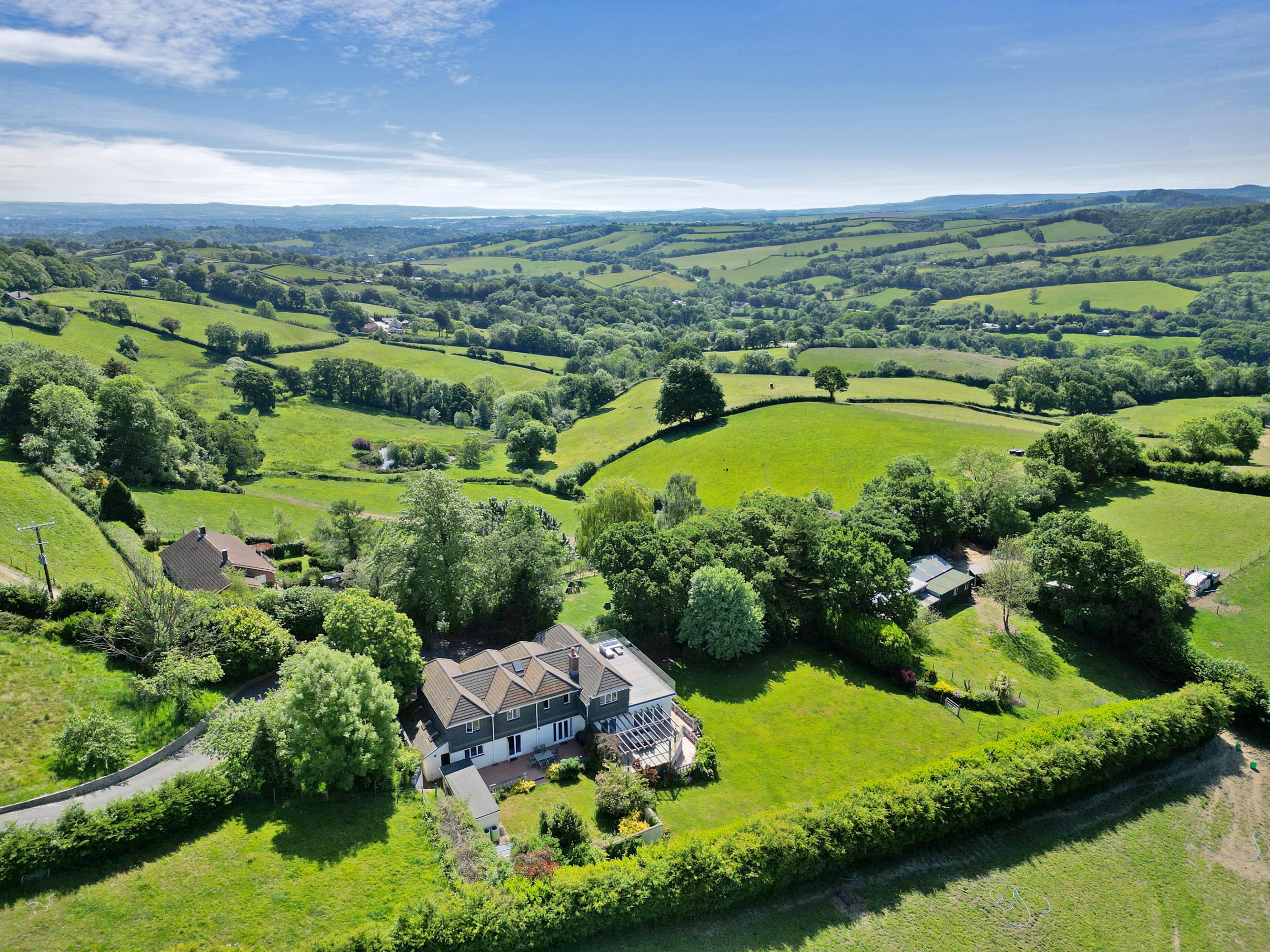 Surrounding the property the land extends to approximately 20.85 acres in total. There is a block of land enjoying extensive road frontage at the northern side with three smaller fields below. The fields are mainly gently or more steeply sloping, primarily surrounded by traditional Devon hedge banks. On the western side is delightful broadleaved woodland of around 7 acres with a small stream.