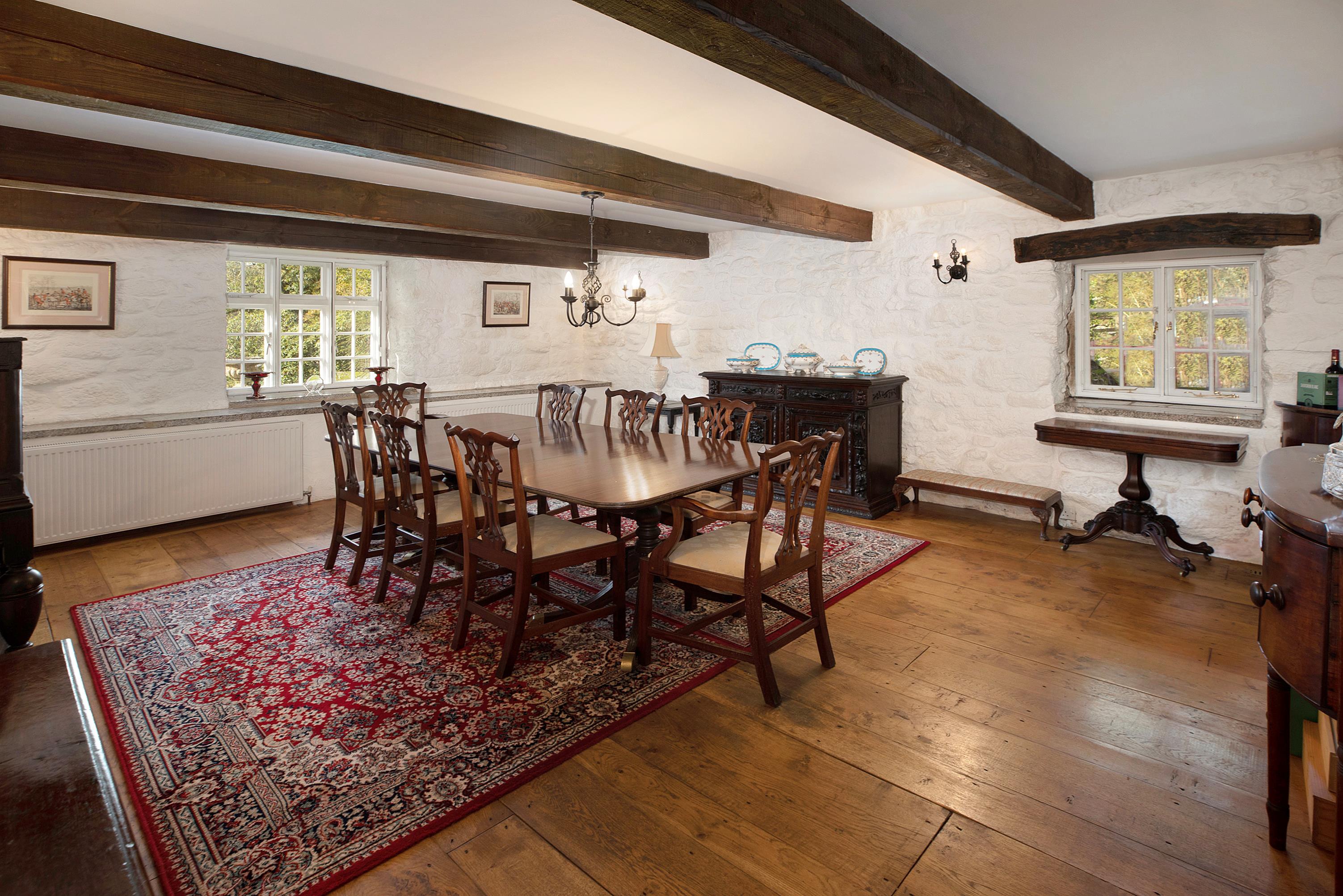 barn bordering the west lawn and incorporating a studio and hayloft, a shippon (cattle byre) and finally a small stone barn incorporating two loose boxes. This latter barn is accessible from the property's three gently sloping paddocks, which are also enclosed by a mix of dry-stone walling, post and rail fencing and mature field hedging. Two of the five barns could be used as a garage due to easy accessibility. In all about 3.31 acres.