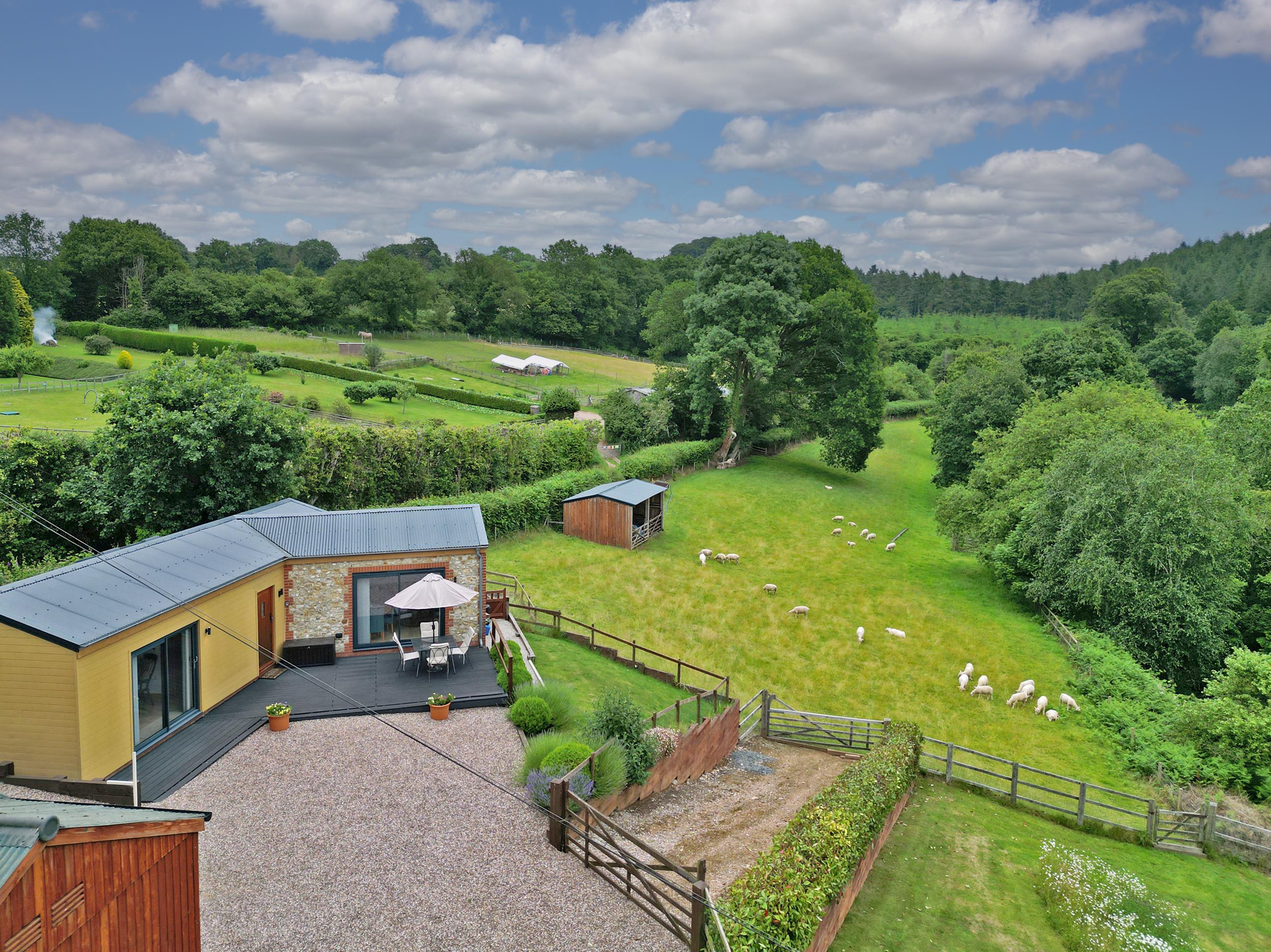 Set within the grounds-far enough from the main house to be discreet, yet close enough for convenience-is The Cider Barn, a recently constructed detached two-bedroom holiday cottage. It is not an annexe in the traditional sense but a fully independent property with its own private access, parking and garden.